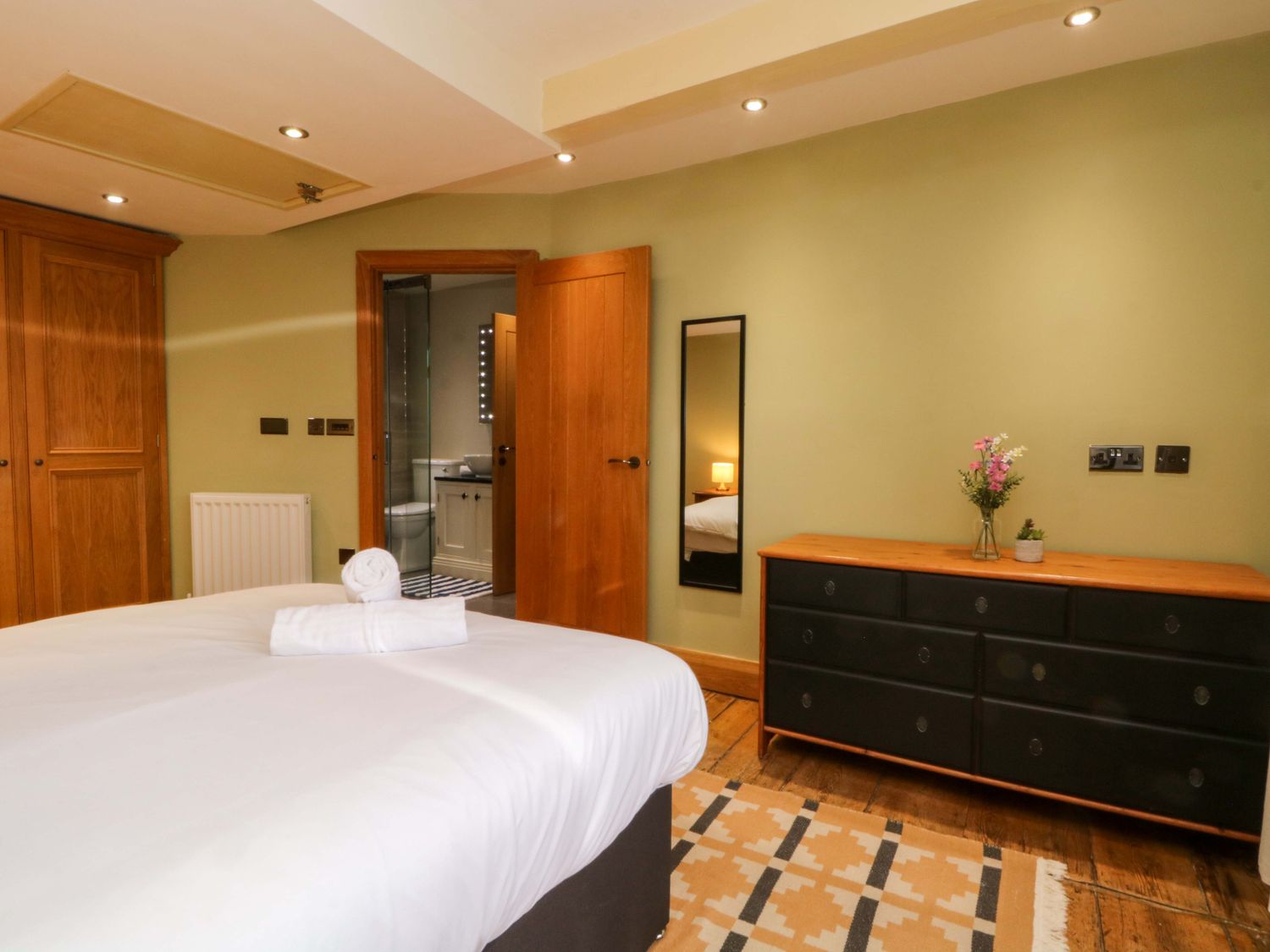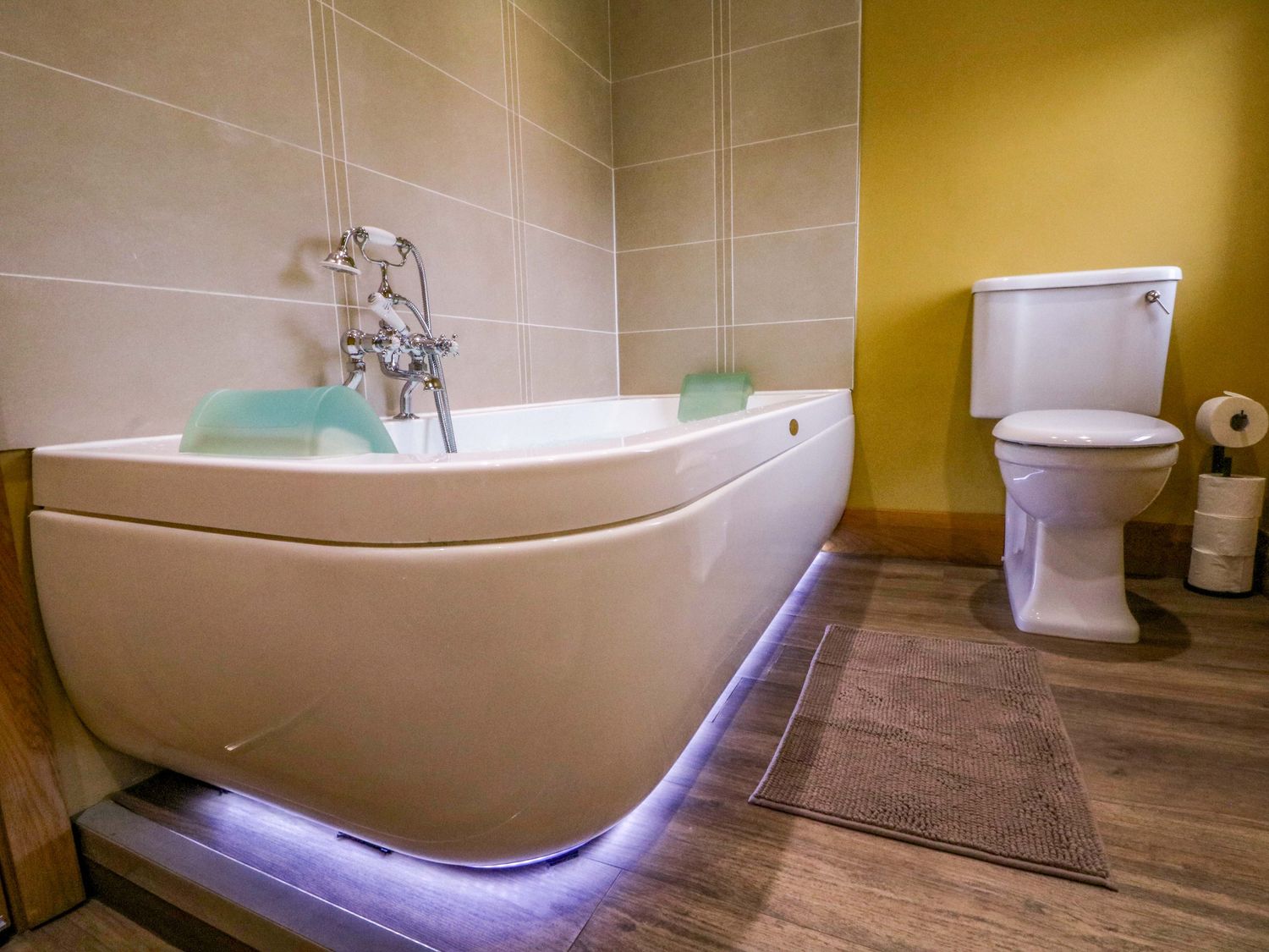 "Four bedrooms: 1 x king with en-suite wet room with walk-in shower, basin and WC, 1 x double, 1 x single, 1x adjustable king size (zip and link available to split into two singles). Bathroom with jacuzzi bath, shower over, basin and WC. Kitchen/diner. Sitting room with woodburning stove. Second sitting room"