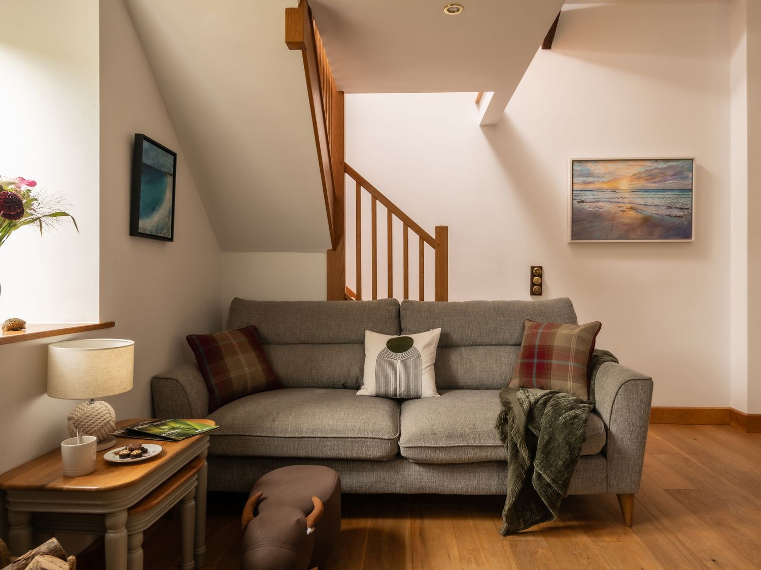 "This holiday home hosts three bedrooms with TVs on the ground floor including a king-size with en-suite shower room, a twin which can be a super-king-size on request with zip/link, and another twin, along with a bathroom. On the first floor there is an open-plan living space with a kitchen, dining area and sitting area with a woodburning stove, and a mezzanine snug resting over the sitting area. Appliances include, an electric oven, induction hob, fridge, freezer, microwave, washing machine, dishwasher. And for entertainment there is a Smart TV and WiFi. Two well-behaved pets are welcome. Outside, there is a garden with a lawn, patio and seating, as well as off-road parking for two cars. Hoppers Barn is a fabulous rural retreat with a stylish interior, perfect for a stay in this diverse part of the region. Note: Check-in from 4pm and check-out by 10am. Note: There is a EV charging point available for overnight use (after 7pm), free of charge."