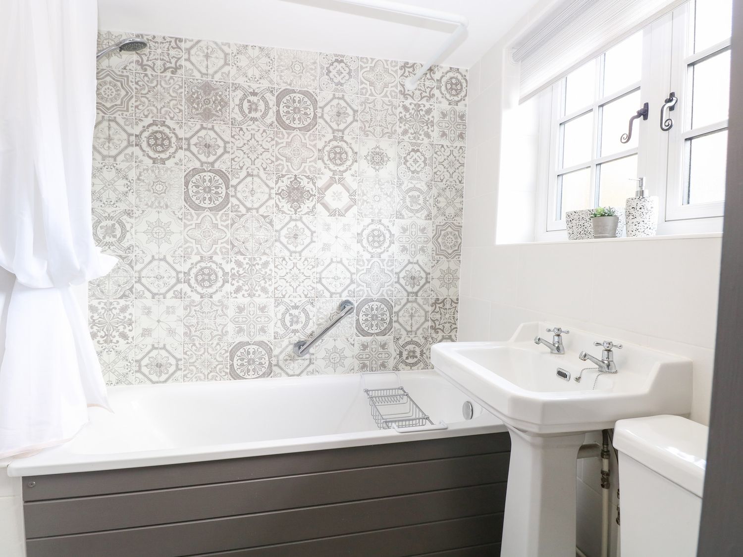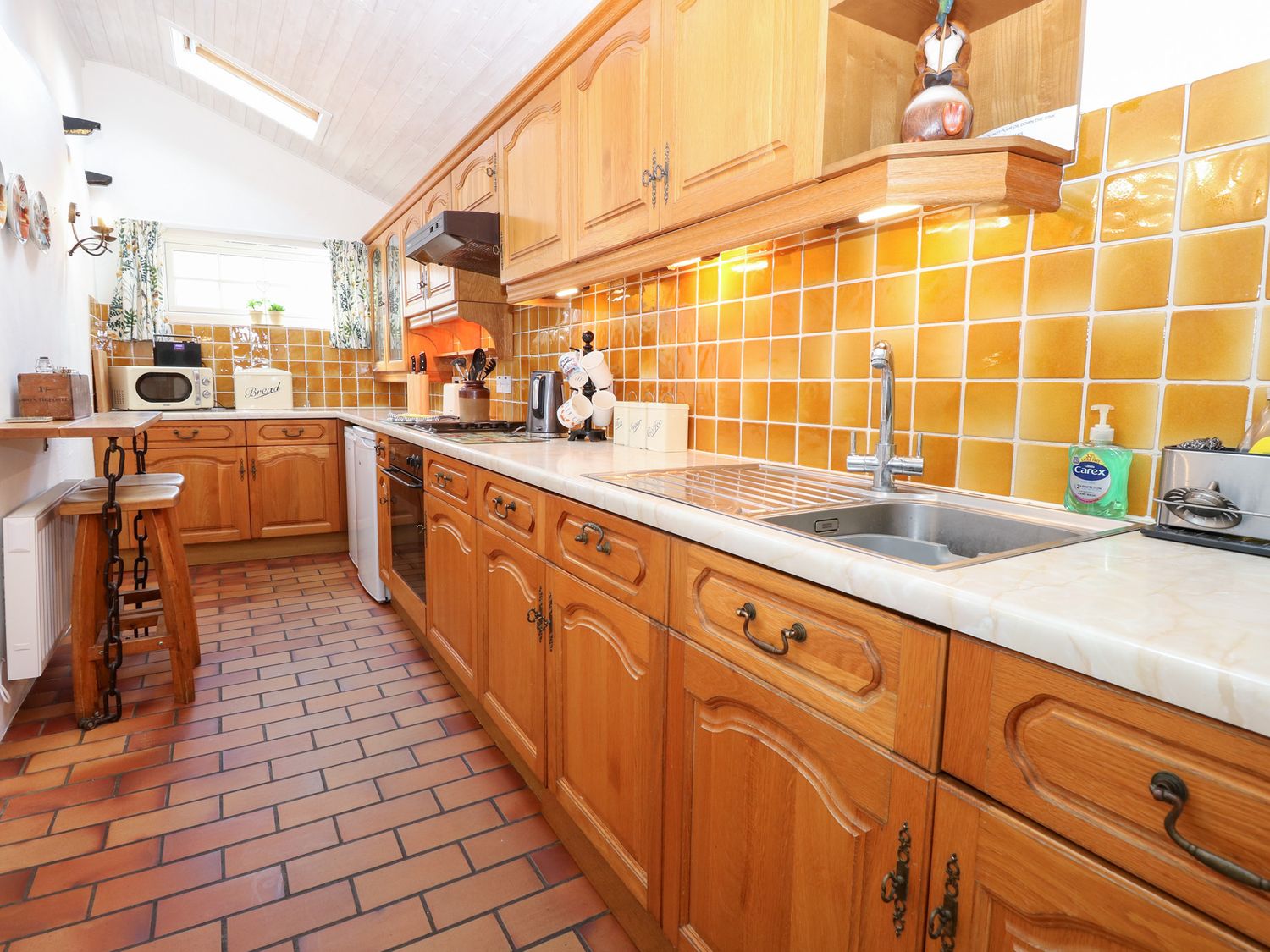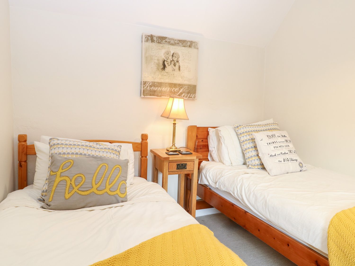 "Three bedrooms: 1 x double (does not have a bedroom door), 1 x twin (accessed via double bedroom), 1 x ground-floor single. Ground-floor bathroom with bath, shower over, basin and WC. Kitchen. Living/dining room with open fire"