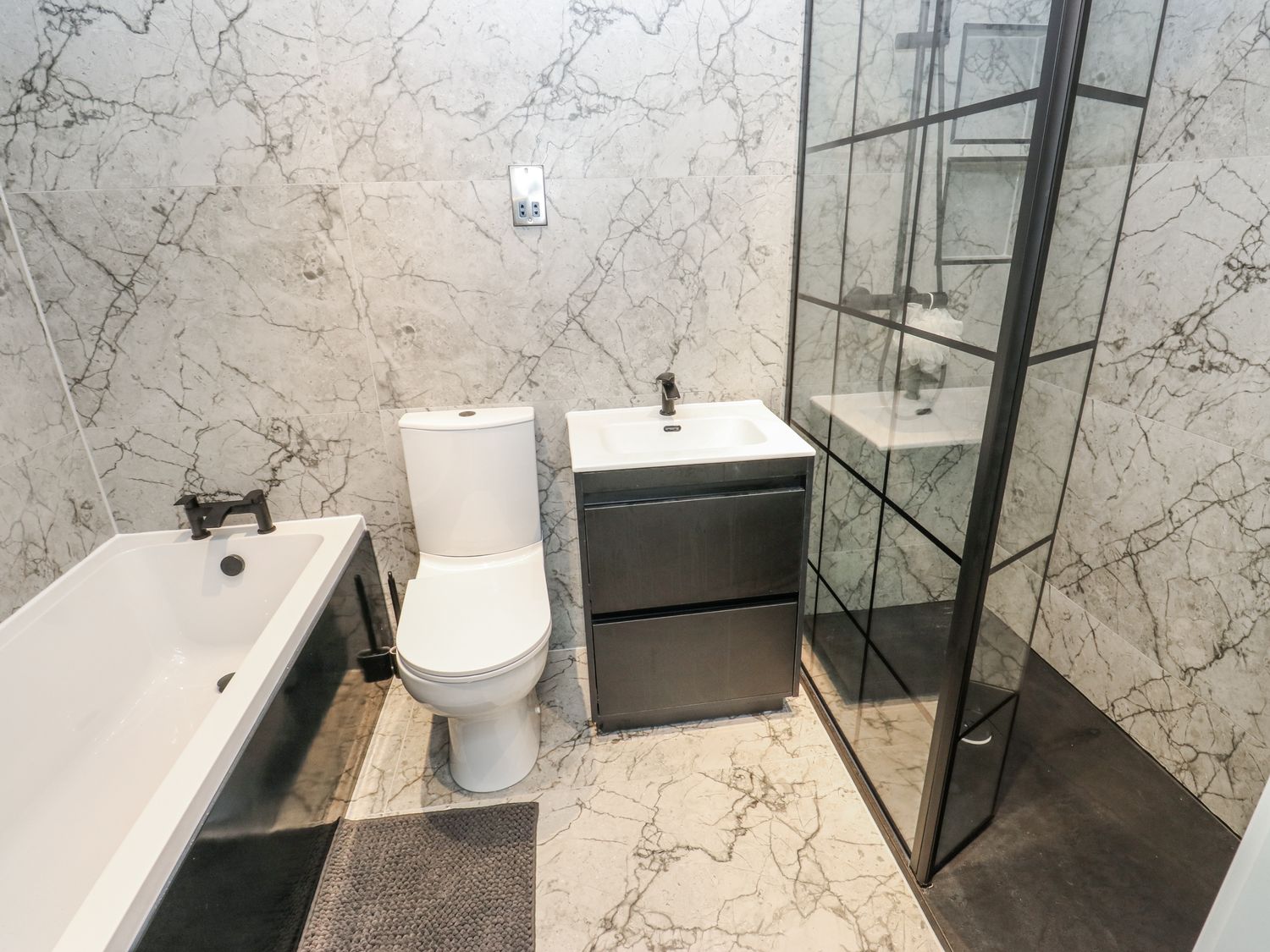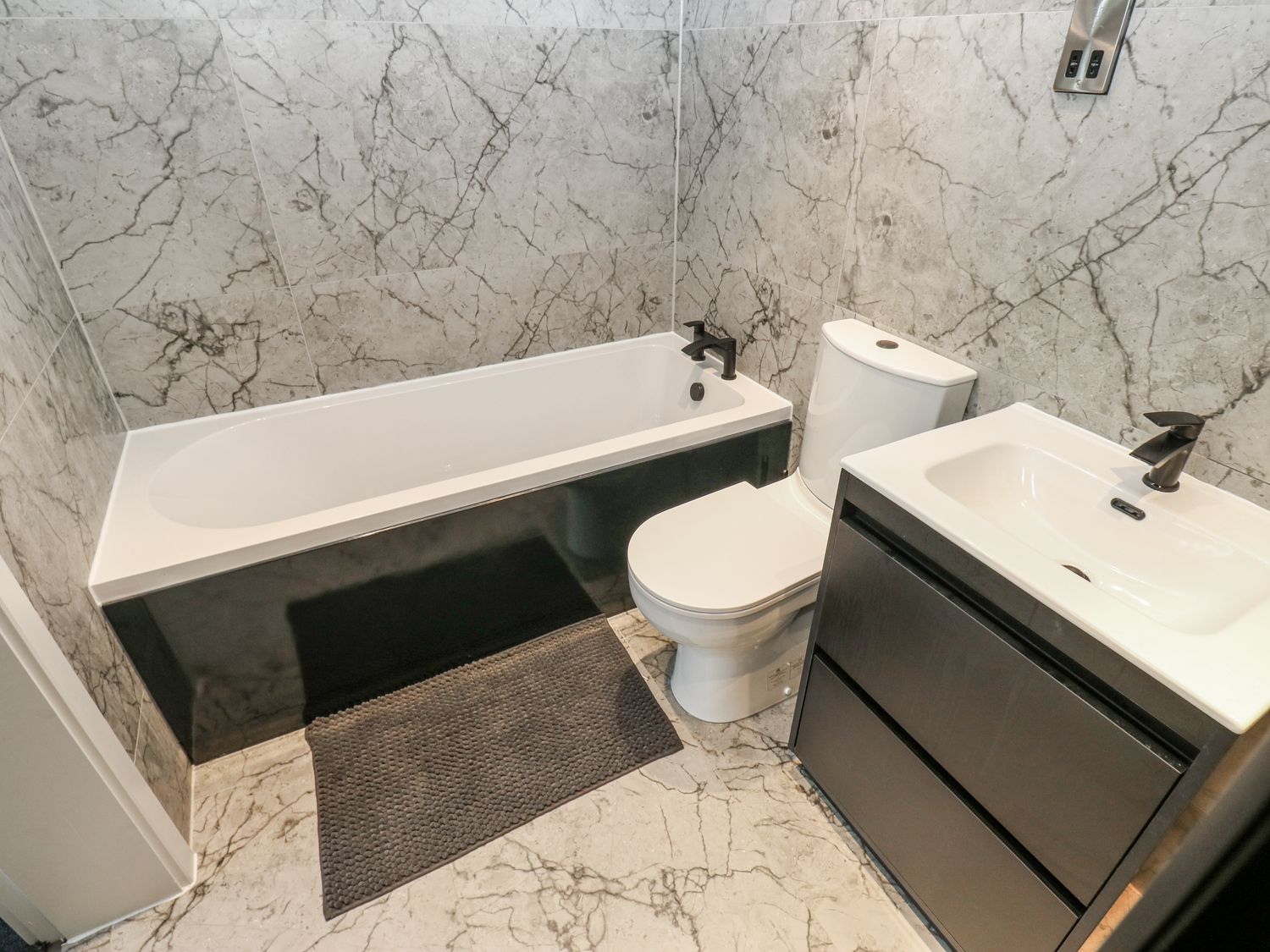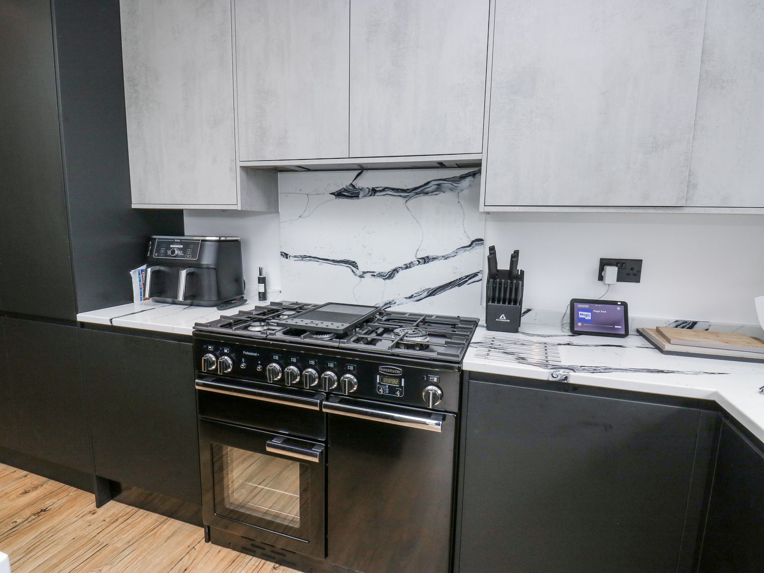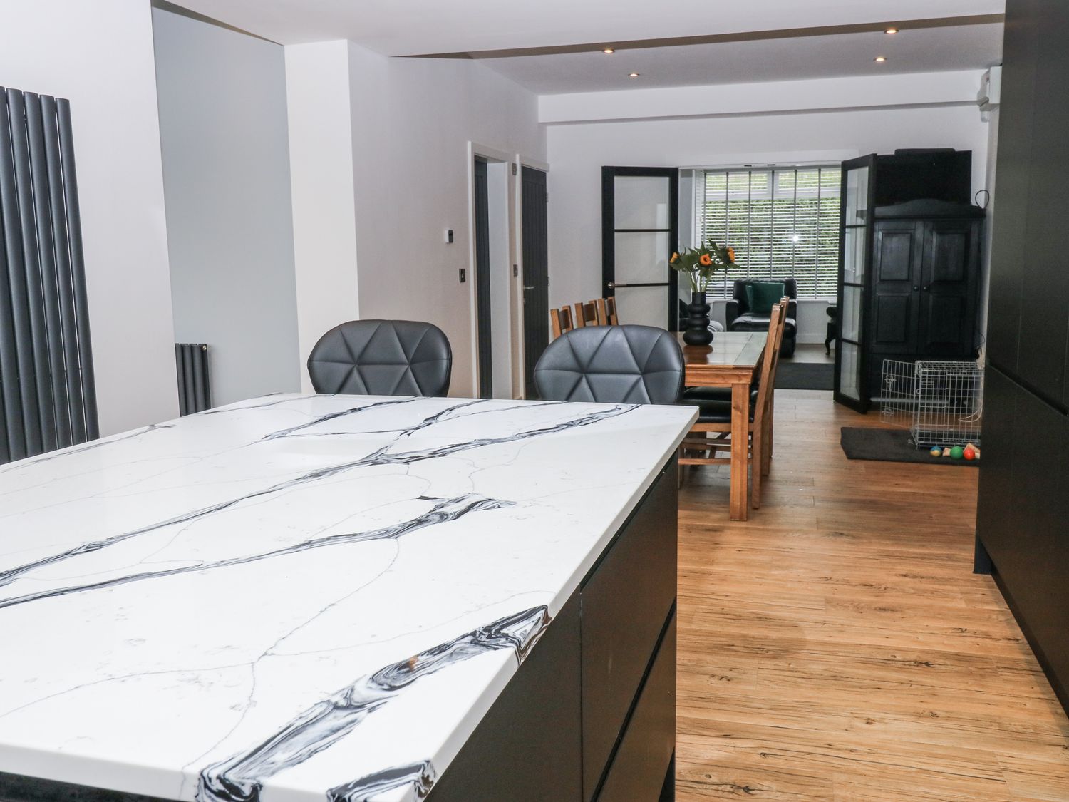 "489 New Hey Road, a delightful holiday cottage, consists of a kitchen/diner with dining seating, dishwasher, range cooker, American-style fridge/freezer, and microwave, a utility with washing machine, and tumble dryer, alongside a sitting room with TV. The bedrooms consist of one ground-floor king-size with en-suite and two first-floor super-king-size (zip/link) bedrooms, serviced by a shower room and cloakroom. WiFi, fuel, power, bed linen, and towels are included in the rent. Outside, there is a patio and hot tub, and off-road parking for 4 cars. Sorry, no smoking. Experience the best of Huddersfield and its surrounding areas with a holiday at 489 New Hey Road. Please note: This property only accepts a minimum of 7 night stays."