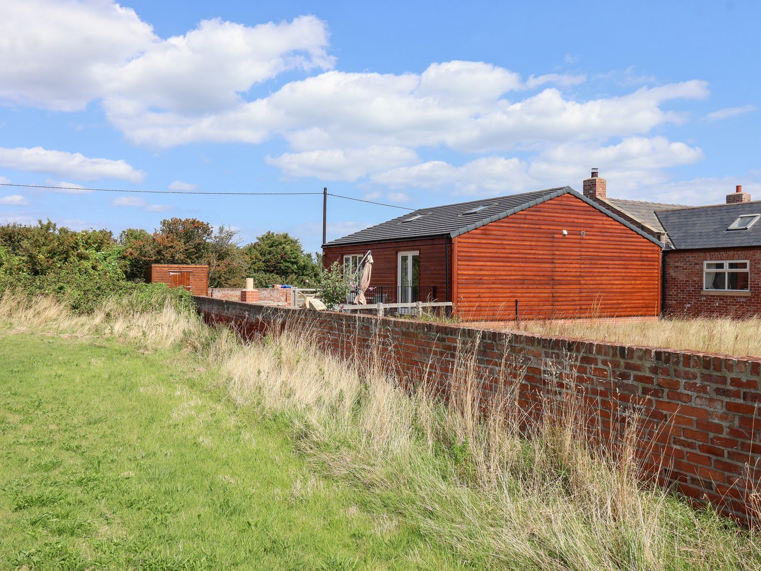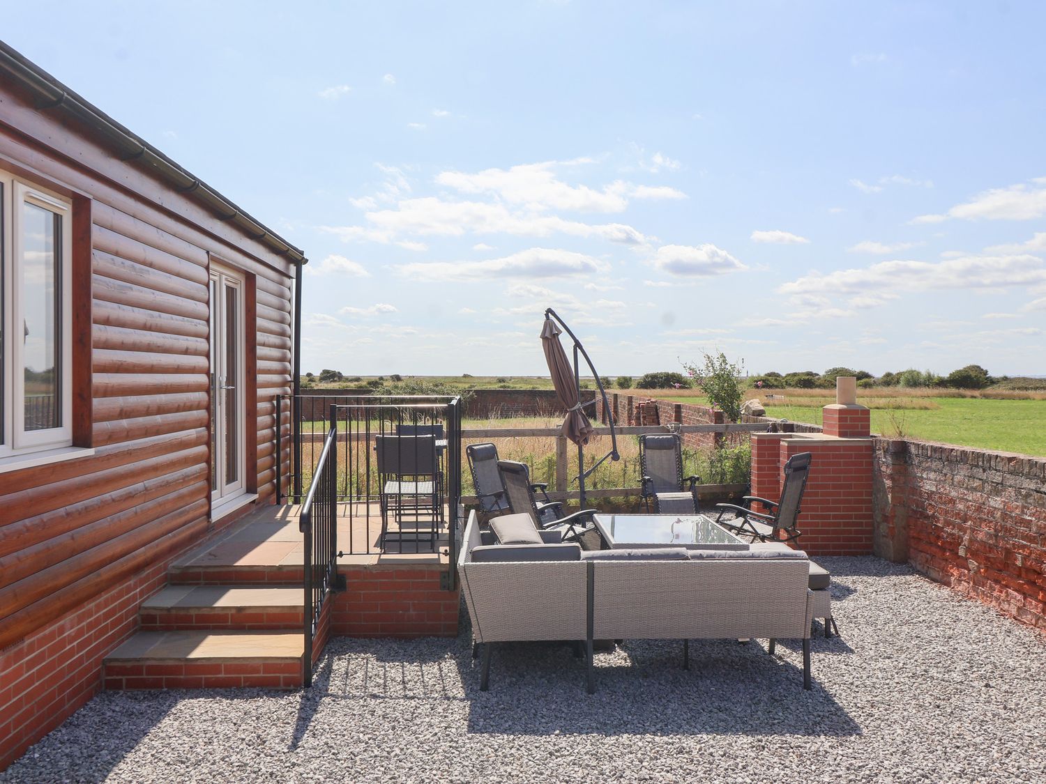 "Single-storey. Two bedrooms: 1 x king-size with access to Jack-and-Jill bathroom, 1 x twin with en-suite walk-in shower, basin, heated towel rail, and WC. Jack-and-Jill bathroom with bath, walk-in shower, basin, heated towel rail, and WC. Open-plan living space with kitchen, dining area and sitting area