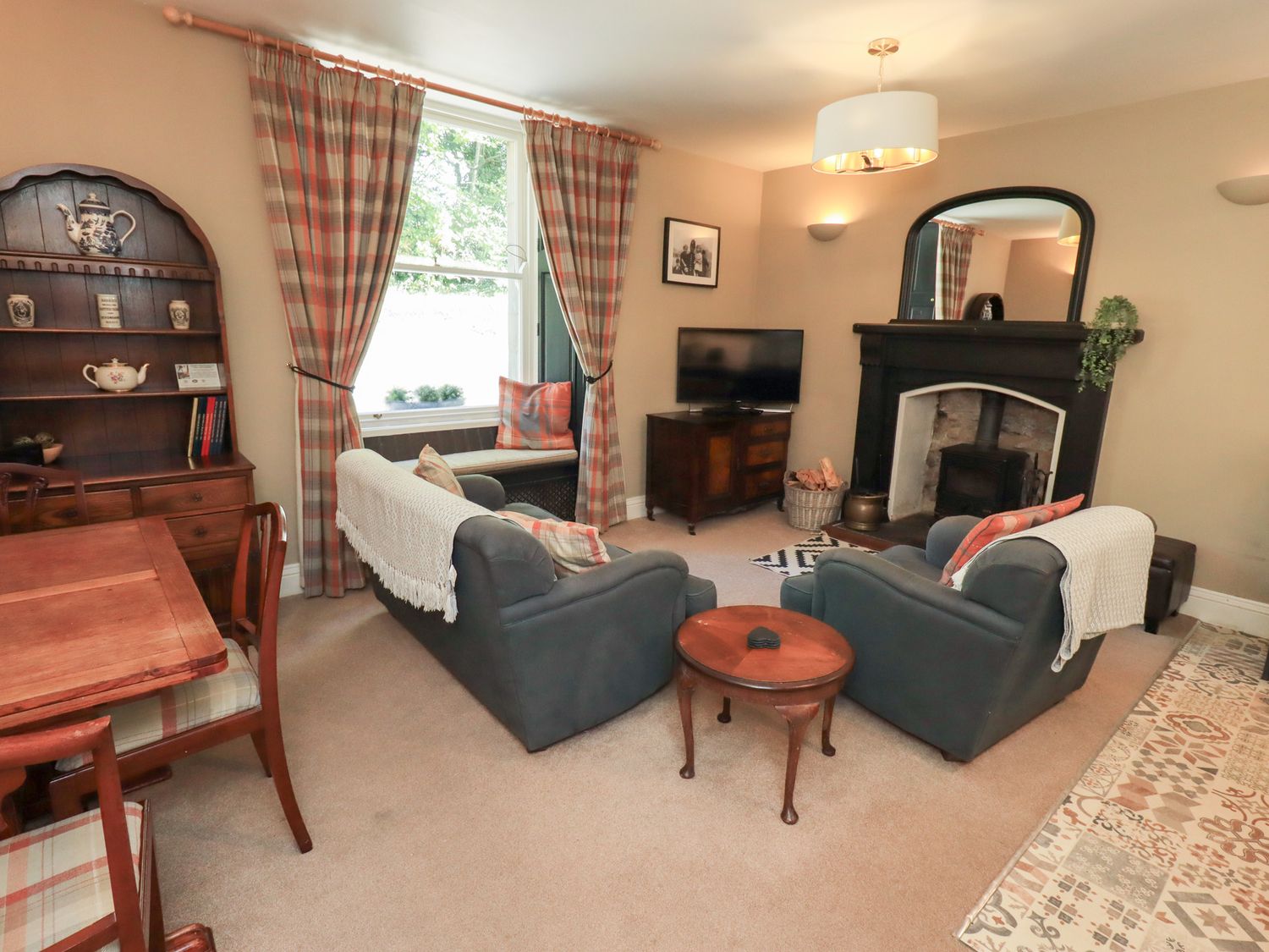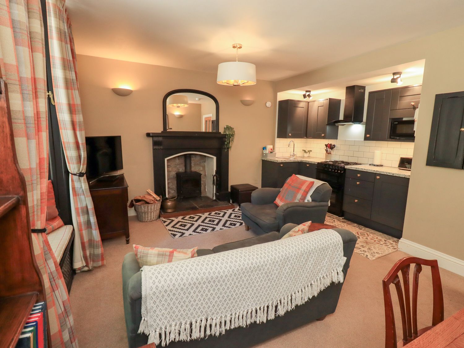 "The Cells is an excellent ground floor wing in the village of Ingleton in Yorkshire. The property can sleep three people in two bedrooms which are made up of a king-size double and a single as well as a separate shower room. The rest of the property is made up of an open plan living room with kitchen and dining area and an entrance hallway. To the outside is off road parking for one car and a small shared patio area with furniture. Set in a great place, The Cells can be enjoyed at any time of the year.