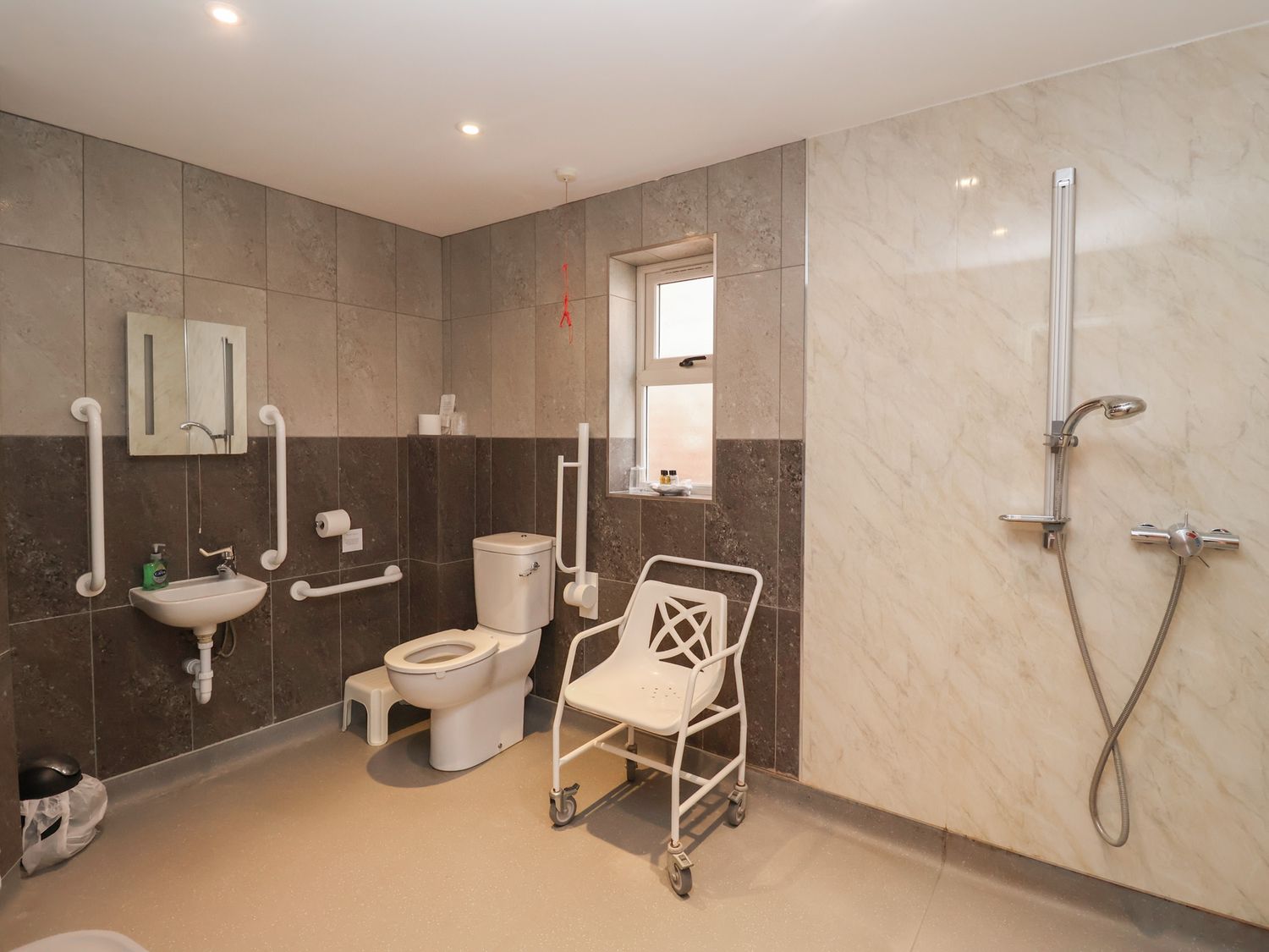 "Single-storey. Two bedrooms: 1 x double with en-suite with walk-in shower and basin and WC, 1 x twin with TV and en-suite with walk-in shower, wet room, and basin and WC. Open-plan living space with kitchen/diner and sitting area. Communal games room. External laundry room"