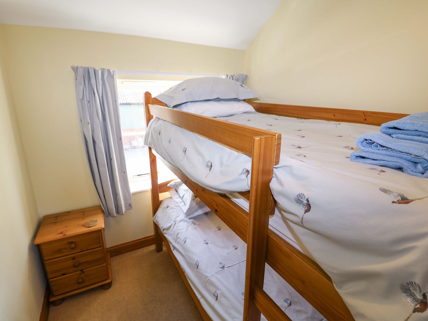 "Churn House consists of a kitchen with an electric oven, electric hob, microwave, fridge/freezer, dishwasher, kettle and toaster, a dining area with seating for six people, a sitting area with a TV, DVD player and WiFi, a utility with a washing machine and tumble dryer, and a communal games room with books, games and a pool table. The bedrooms consist of a king-size, a ground-floor twin, and a childÔÇÖs bunk bed, along with a ground-floor bathroom with bath, shower over, basin and WC. Outside, there is a front enclosed patio with furniture, a shared lawn with childrenÔÇÖs play area and furniture, off-road parking for one car and EV charging. Within 2.7 miles, you will find a shop, and within 2.6 miles, a pub, and please note that this is a non-smoking property. WiFi, fuel, power, bed linen and towels are all included in the price, however there is an additional charge for pets. Churn House is a delightful countryside retreat, perfect for families and friends alike. Note: Horses, Shetland pony, geese, chickens, cat, dogs and sheep are on-site. Note: Churn House is connected by a lockable interconnecting door to WheelwrightÔÇÖs Cottage. Note: This is a small working farm so some machinery movement at certain times of the year, dogs must be kept on a lead. Note: Cot and Highchair available on request."