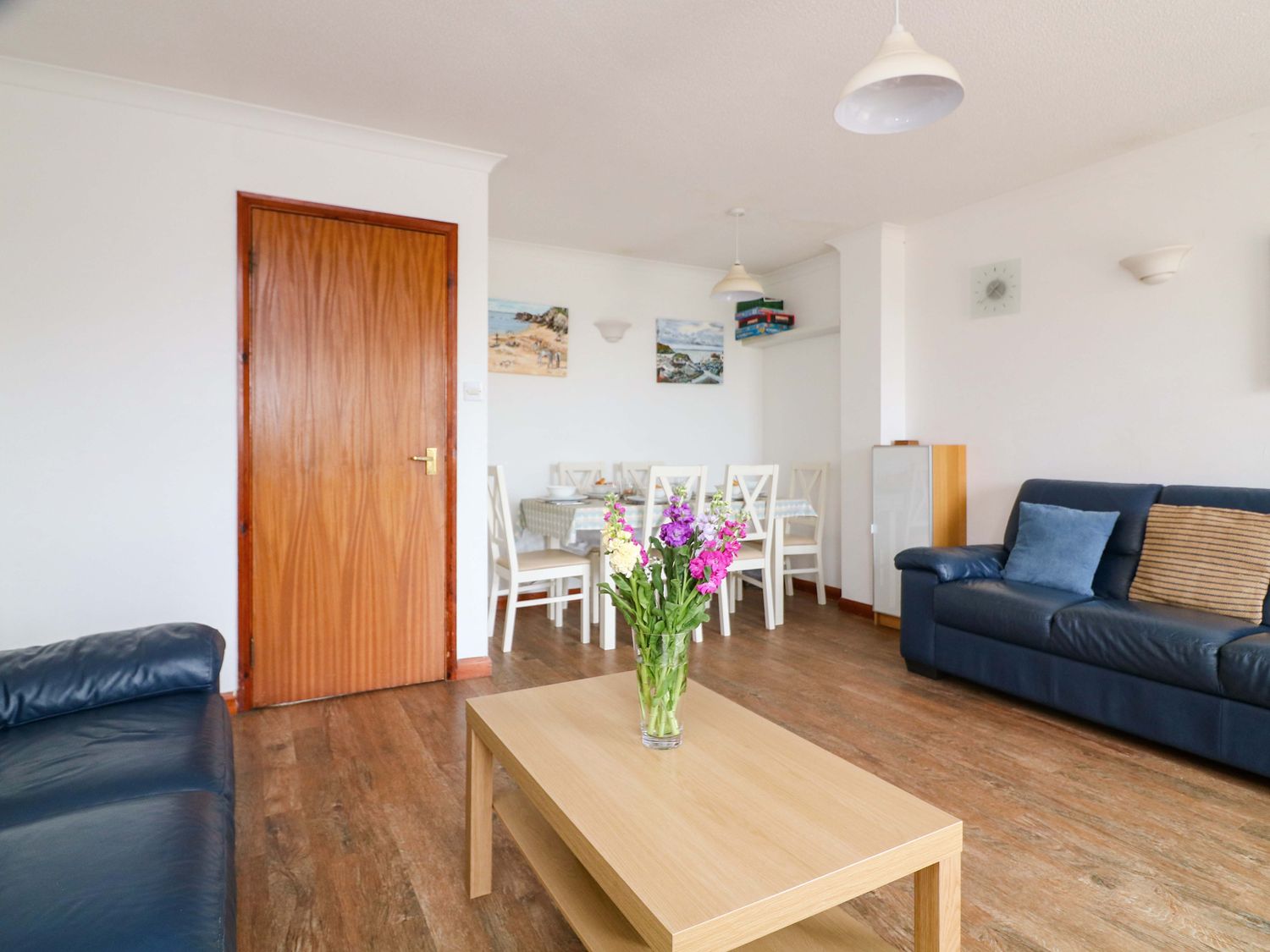 "Surf View, a house over three floors, consists of a kitchen with oven, induction hob, microwave, fridge/freezer, dishwasher, and washing machine, and a living/dining room with dining seating for six people, a Smart TV and a clock radio with iPod dock. The bedrooms consist of a double, second-floor double with en-suite shower room, and twin, serviced by a bathroom and cloakroom. You'll find a shop in 0.2 miles, pub in 0.1 miles, and beach in 0.2 miles. WiFi, fuel, power, bed linen, and towels are included in the rent. Outside, there is off-road parking for one car with additional roadside parking available on a first-come, first-served basis and a garden with patio and furniture. Two well-behaved dogs are welcome. Sorry, no smoking. Find your perfect escape at Surf View. Note: Barbecue is not in use, but guests are welcome to bring their own. Note: Pet charge of 30 GBP per pet per week."