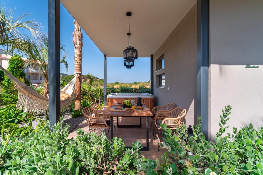 Palmeral Luxury Suites are 4 stunning suites with private Jacuzzis and an impressive sharing swimming pool. They are found at Kremasti village where the nearest incredible beach is found at less than 5-minute drive. Kremasti beach is known as the paradise of surfers which is something you should try! The airport of Rhodes is found at a distance of 3 minutes, making your transfer really quick. Airplane enthusiasts will love the location, as they will have the chance to observe landings and take off’s all day! Also, at sunset hours you’ll have the chance to admire the most idyllic and romantic atmosphere. The center of Rhodes is really close to the suites. The modern suites feature a contemporary decoration style and an exotic sense that will bring you in the mood for vacation. Each suite accommodates up to 3 or 4 guests and is designed to offer you endless comfort and luxury. Sterlizia Suite is found on the ground floor and accommodates up to 3 guests. This suite has a fantastic view of the road and the garden. This exquisite suite has one incredible bedroom with a double bed. Also, there is a single sofa in the atmospherically decorated living area. Guests will find a bathroom with a shower. There is a fully equipped kitchen, suitable for any meal preparation, and a seating area to enjoy your meal. In the living room, there is a smart TV with Netflix. All areas are fully air-conditioned. Also, there is free Wi-Fi throughout the property. Outdoors, this suite has a private patio with BBQ facilities and a seating area as well as a private heated Jacuzzi for relaxing moments. All the suites share an impressive swimming pool with sunbeds, where you can relax under the Aegean sun. The palm garden is an oasis, ideal for relaxation and activities. Beautiful Palm trees were planted for an extra exotic sense offering an impressive effect. These incredible suites are found at Kremasti village where the nearest incredible beach, as well as the airport, are found within a driving distance of 3 minutes. Kremasti has everything you might need during your stay such as supermarkets, restaurants, bars, pharmacies, etc. Public Transportation to Rhodes Town and other areas of the island is located just around the corner. Kremasti beach is quite popular amongst those who fancy water sports and activities. You’ll find suitable facilities to try them with your friends and have really great and unique moments. You’ll find plenty of activities such as kite surfing, kite boarding, wind surfing, etc. You shouldn’t lose the chance of this great experience! You should visit, Ixia beach, only 10 minutes by car. At kremasti beach, you’ll have the chance to admire an idyllic sunset and take a romantic walk. This unique golden hour will steal your heart! Also, really close to the suites is Filerimos, only a 12-minute drive. You shouldn’t miss visiting the old town of Rhodes, which is found within 20 minutes of driving distance. Kameiros is located only a 35-minute drive away, and offers a unique archaeological site. in the old town of Rhodes, it’s said to be the oldest inhabited medieval town in Europe and forms a part of the UNESCO World Cultural Heritage. Butterflies Valley is found at a driving distance of fewer than 20 minutes. It features an incredible setting with rare species and amazing nature. Of course, the south part of Rhodes hides many precious gems such as Lindos and its ancient Acropolis. Lindos is for most visitors, the most impressive archaeological site on the island of Rhodes. Enjoy a swim at Saint Paul’s Bay, at the back of the Acropolis. You’ll find yourself facing the most breathtaking landscape on the island. https://goo.gl/maps/QDqzfG1XSKyBH7XZ8