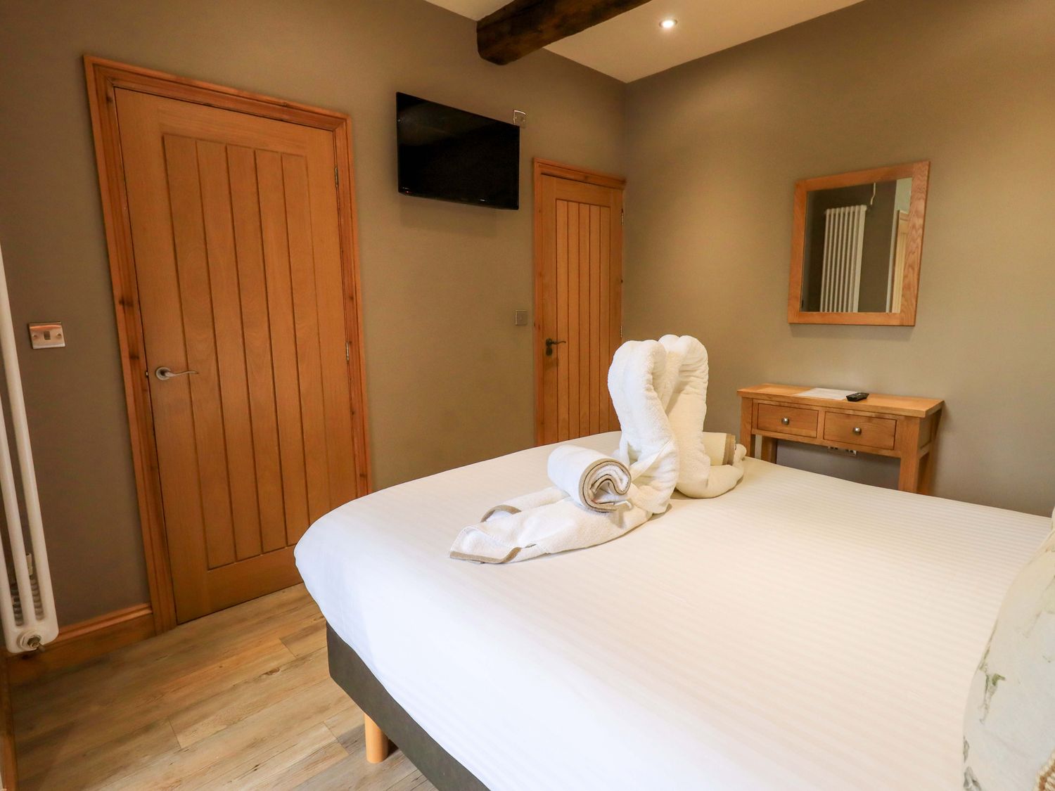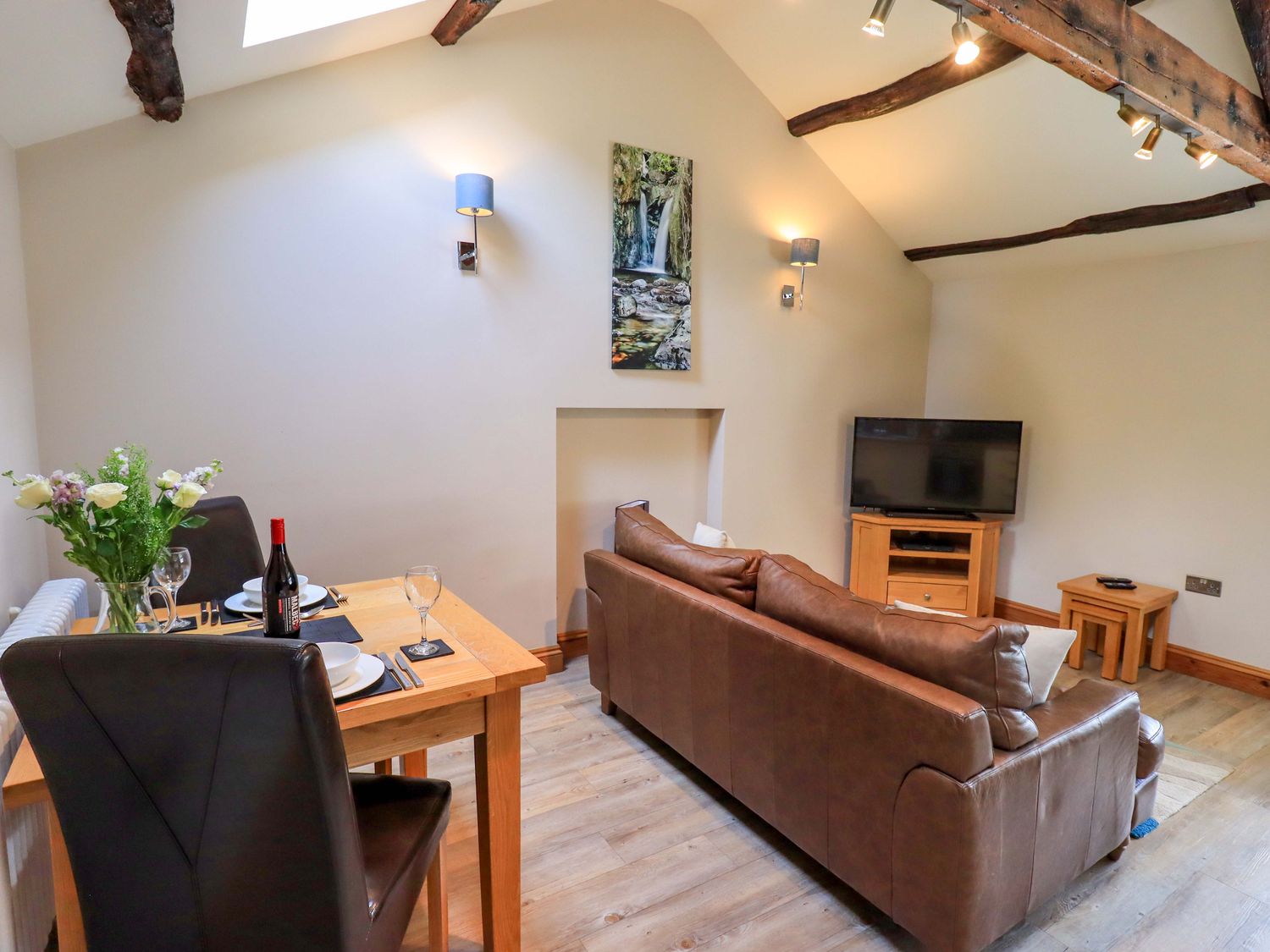 "Abbots Reading Mews 2 consists of an open-plan living space including a kitchen with an electric oven, halogen hob, microwave, fridge with freezer compartment, a dining area, and sitting area with TV. The bedroom consists of a double with en-suite bath. Outside, there is a garden with furnished patio, plus private parking available. WiFi, fuel, power, bed linen, and towels are all included in the price. Two well-behaved dogs welcome, but sorry, no smoking. Escape to the serene countryside with a stay at Abbots Reading Mews 2. Note: Property not suitable for Infants.