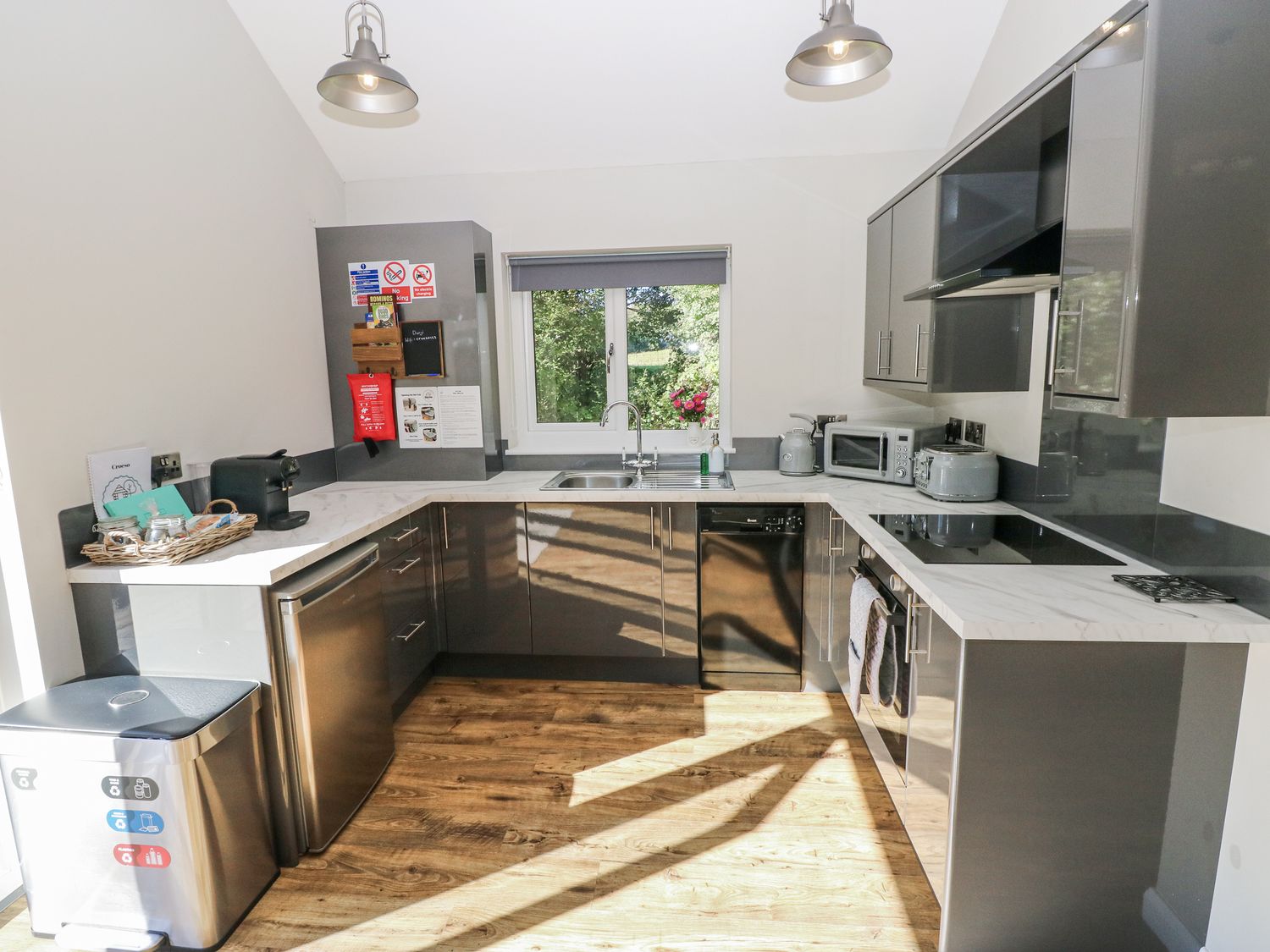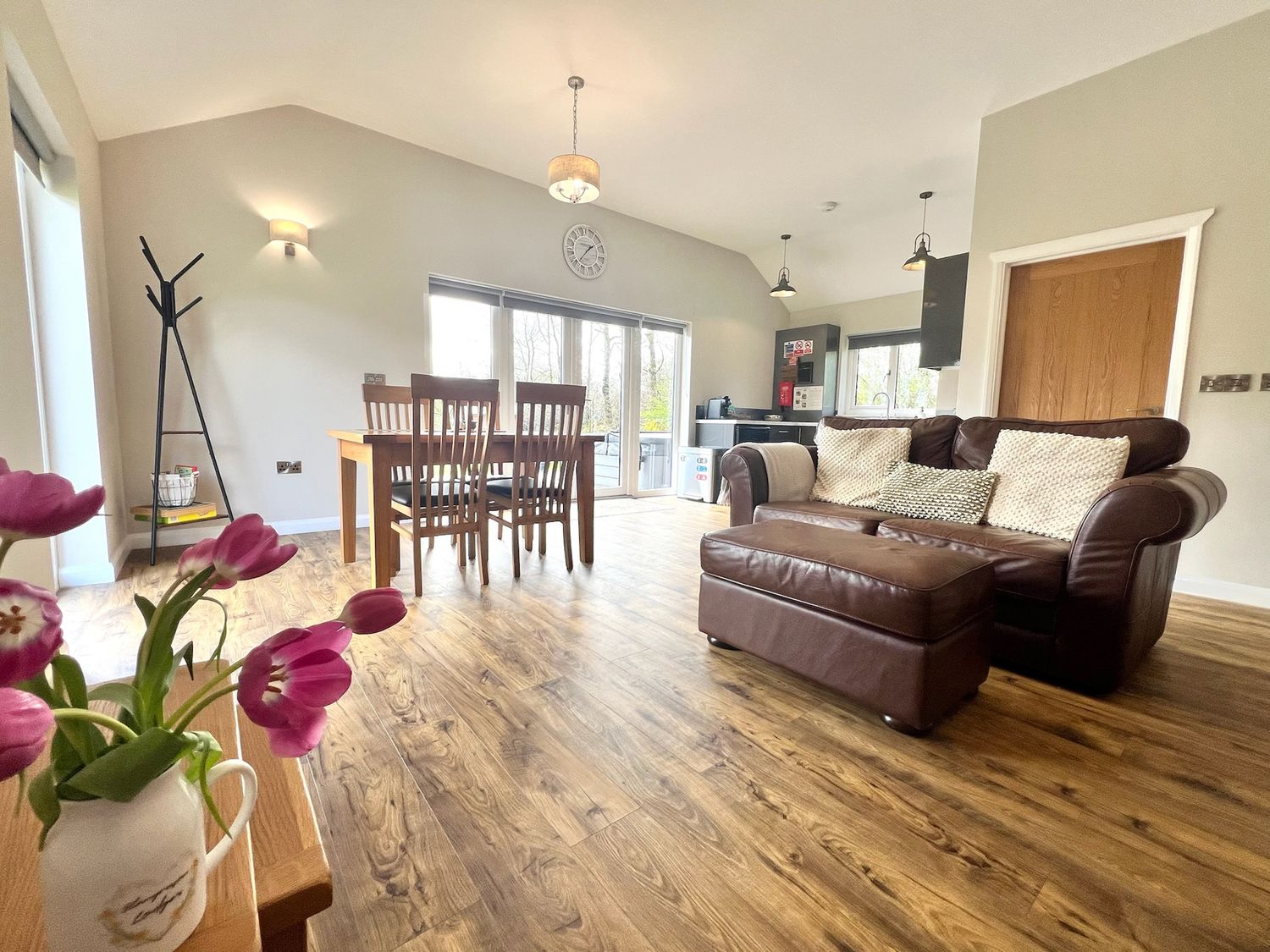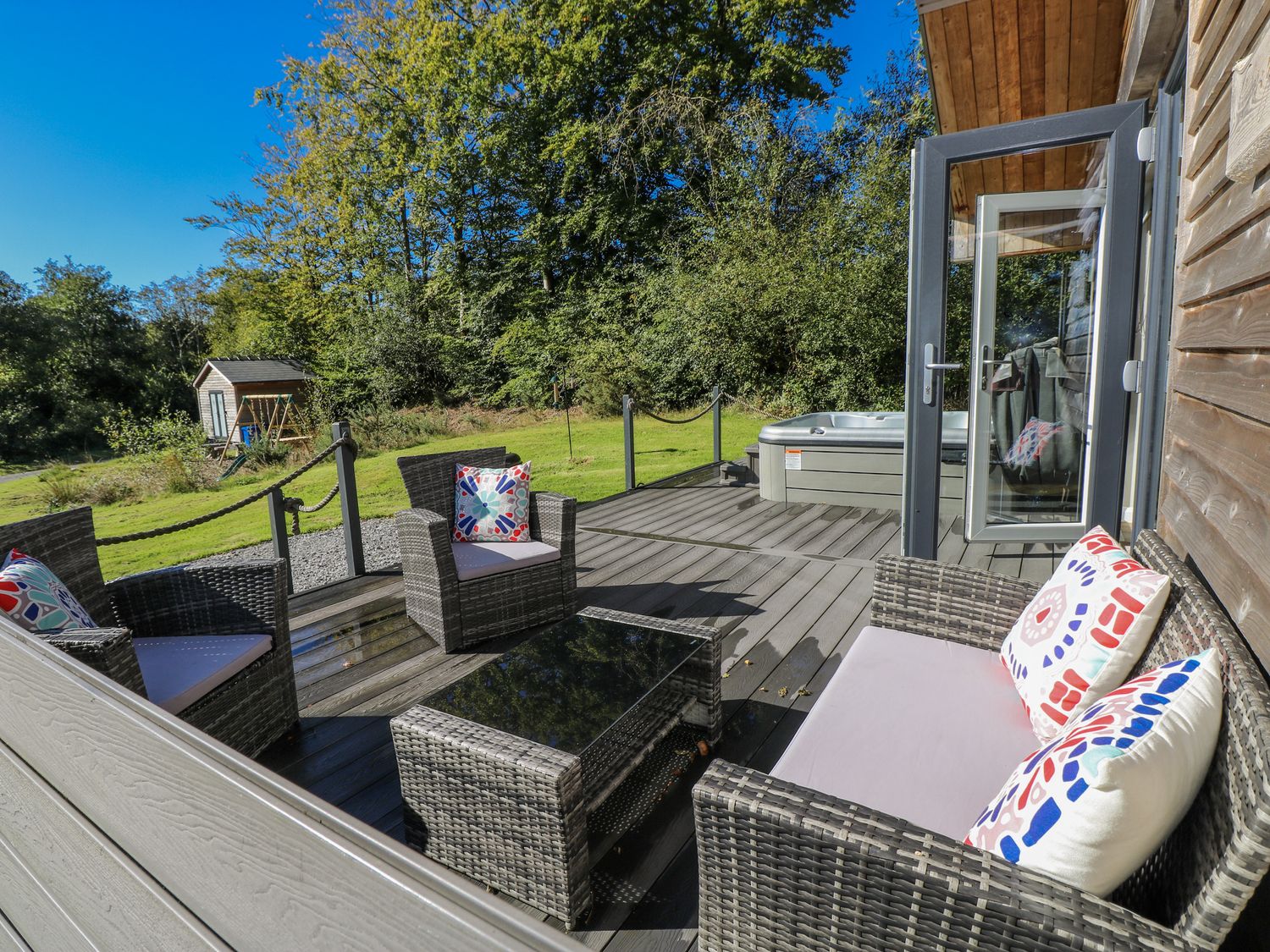 "Dwrgi is a holiday lodge near Llanybydder, Ceredigion. Hosting two bedrooms, including a king-size with TV and a twin (zip/link, can be super-king-size on request), along with an open-plan living space with kitchen, dining area and sitting area, and a shower room, this property sleeps up to four guests. Outside, there is a front decking area with furniture and hot tub, and off-road parking for three cars. Sorry, no pets and no smoking. Shop 5.5 miles; pub 4.6 miles. Note: there is a Good Housekeeping Bond of 200GBP"