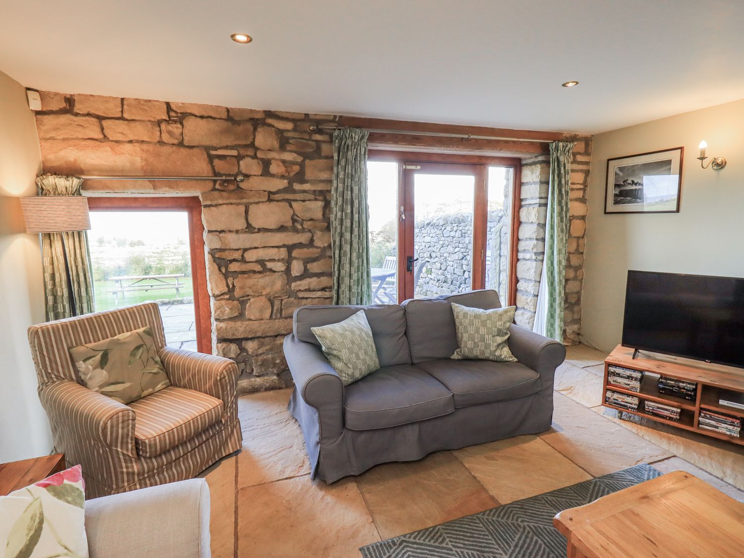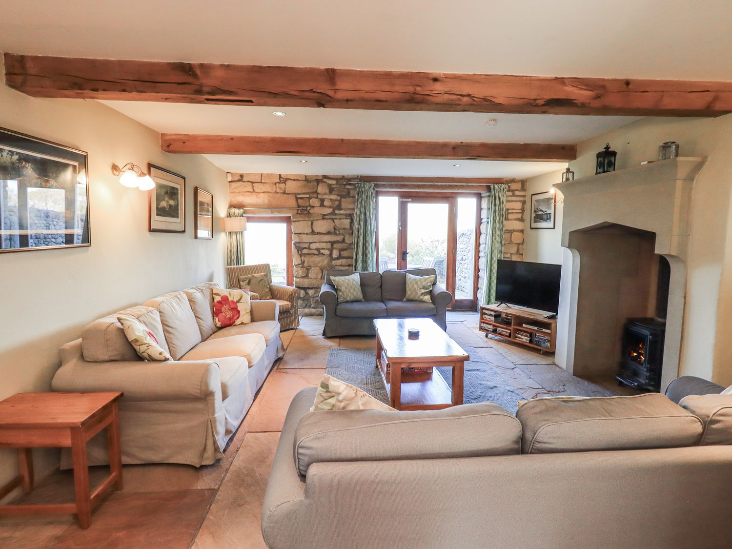 "Usherwoods Dairy is a stunning, semi-detached barn conversion resting on the rural outskirts of Bentham in the small hamlet of Tatham, Lancashire. Hosting five bedrooms, including a ground-floor king-size, a double with en-suite wet room, a double and a two singles, along with a bathroom and a ground-floor shower room, this property can sleep up to eight guests. There is also a kitchen/diner, utility, and a sitting room with woodburning stove. Outside there is a large enclosed garden with patio and furniture and off-road parking for six cars. Usherwoods Dairy makes a wondrous location for your next family holiday to Lancashire. "