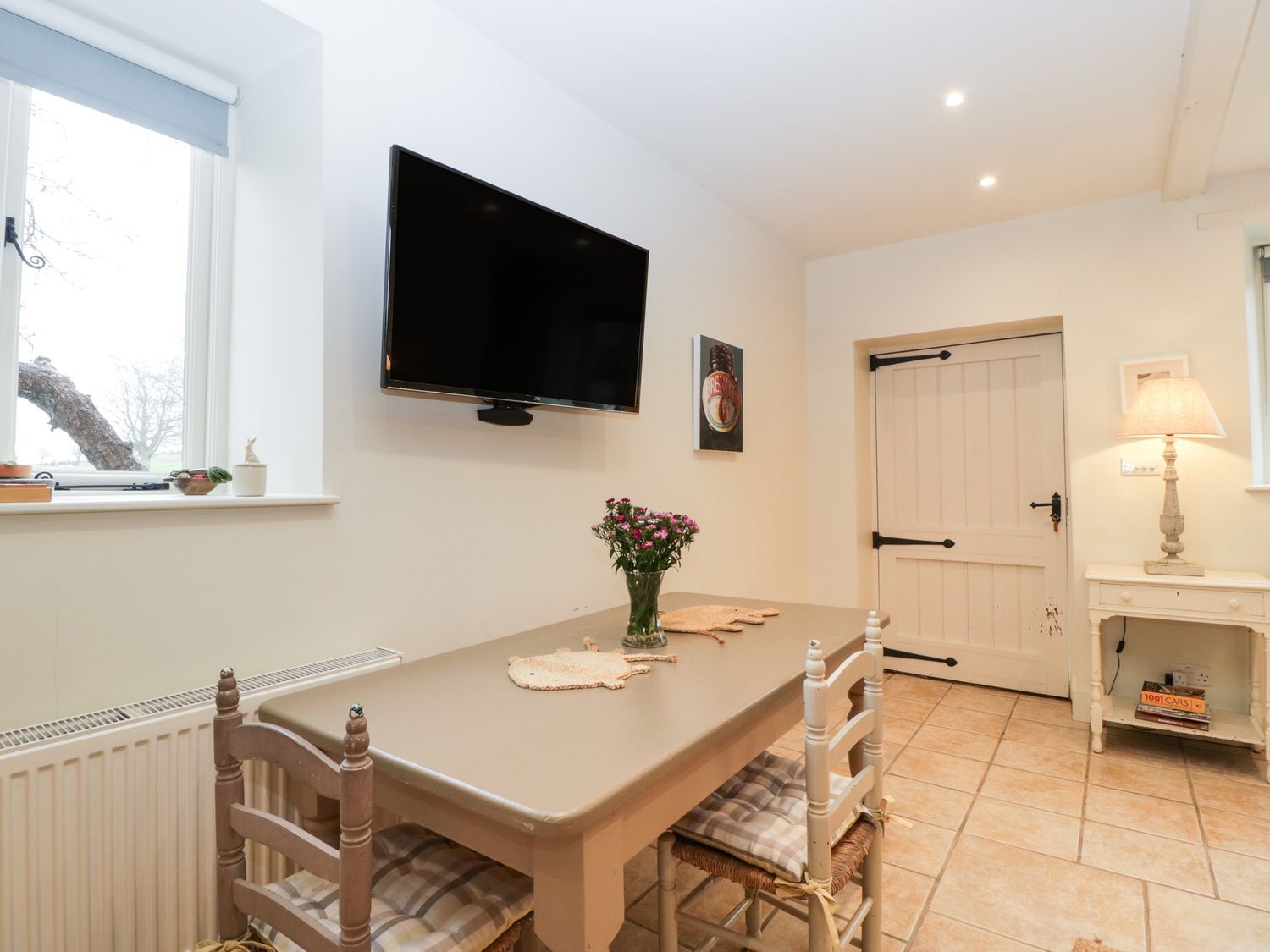 "The living areas in the property consist of an open-plan living area with a kitchen with electric oven and hob, microwave, fridge/freezer washer/dryer and dishwasher, dining seating and a sitting area with TV. The bedroom hosts a king-size bedroom with an en-suite bathroom. Outside, there is a private patio with furniture and a shared garden, along with private parking. WiFi, fuel, power, bed linen and towels are all included in the price. Please be mindful that this is a working farm with horses and the owner lives on the grounds. Guests can explore the grounds must be respectful at all times. for a rural retreat escape to The End. Pets welcome on request only, 25GBP supplement per pet."