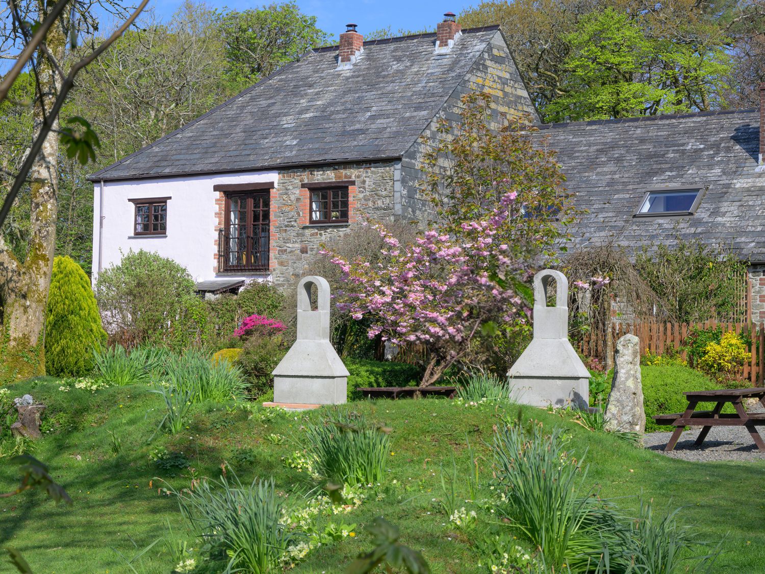 "Ash Cottage is a pretty, stone fronted barn in Warbstow, close to the North Cornwall coast. Hosting two bedrooms; a double, and a twin room, this property can sleep up to four people. Ground floor bathroom. Inside you will find a neat living area with a kitchen, dining area and sitting area with woodburning stove. Outside you are welcome to explore the farm and can meet the animals, and friendly Alpacas. Located in a quiet rural setting but within easy driving distance of both the coast and the moors, Ash Cottage is an excellent retreat in a beautiful part of Cornwall. Off-street parking for 2 cars, with EV Charger on site. Additional public parking nearby. Note: Cot and High Chair available."