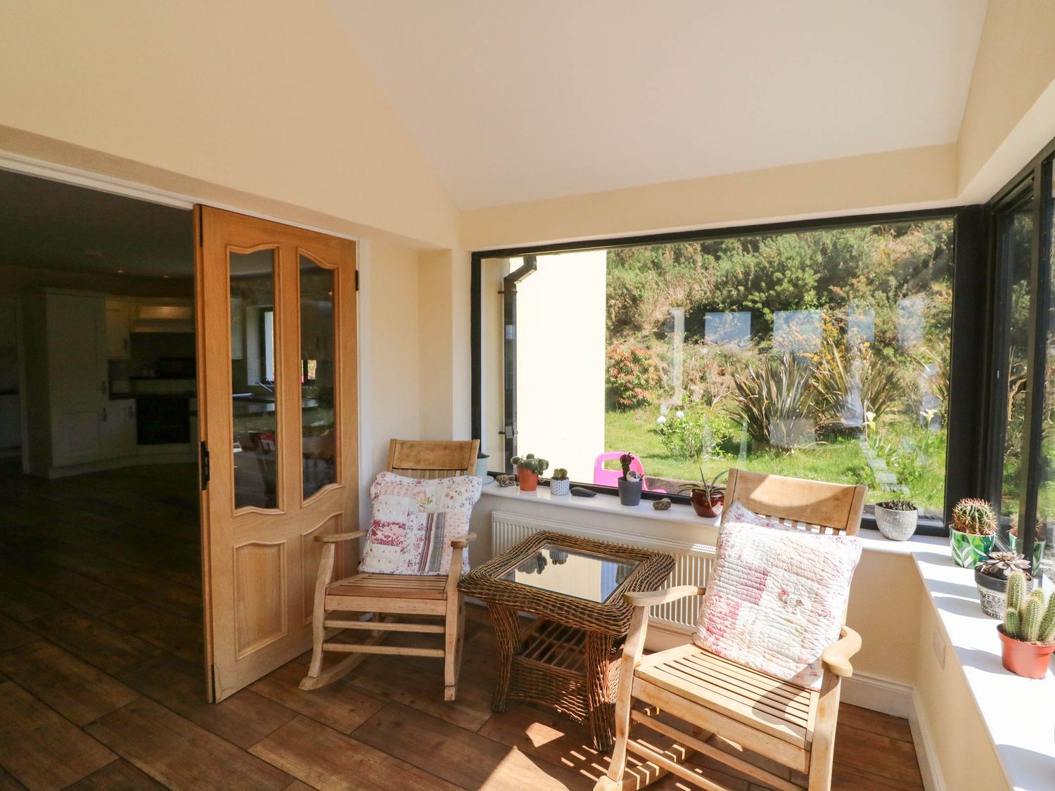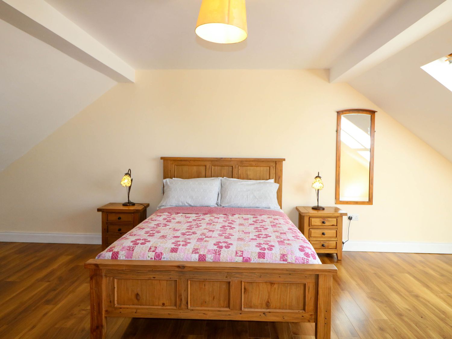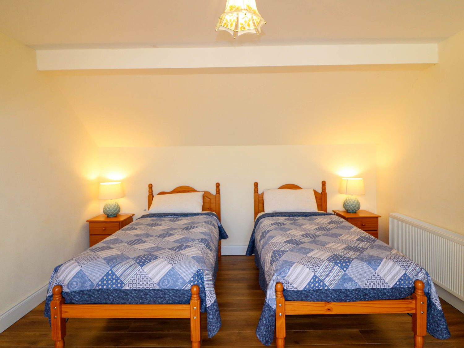 "Three bedrooms: 1 x king-size double, 1 x ground floor double, 1 x twin. Ground floor wet room with walk in shower, basin and WC. Shower room with shower, basin and WC. Open plan living area with kitchen, dining area (seats 6) and sitting area (seats 5) with solid fuel stove. Utility. Conservatory with sitting area."