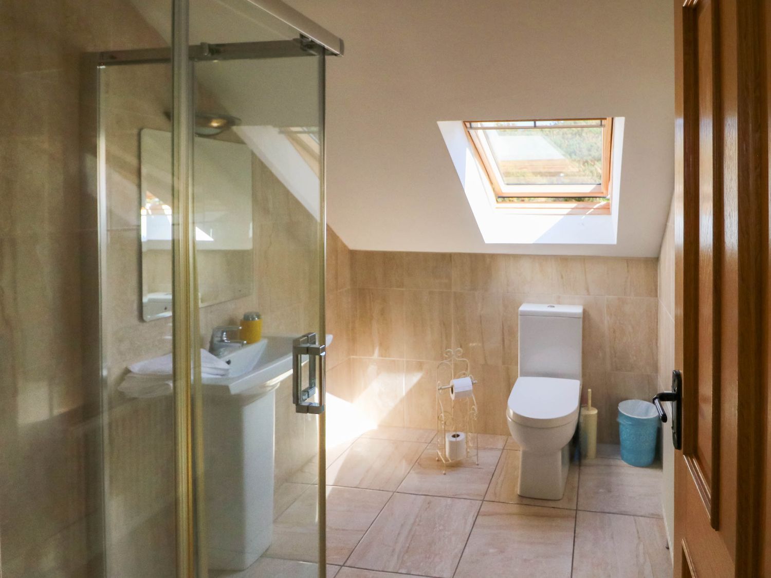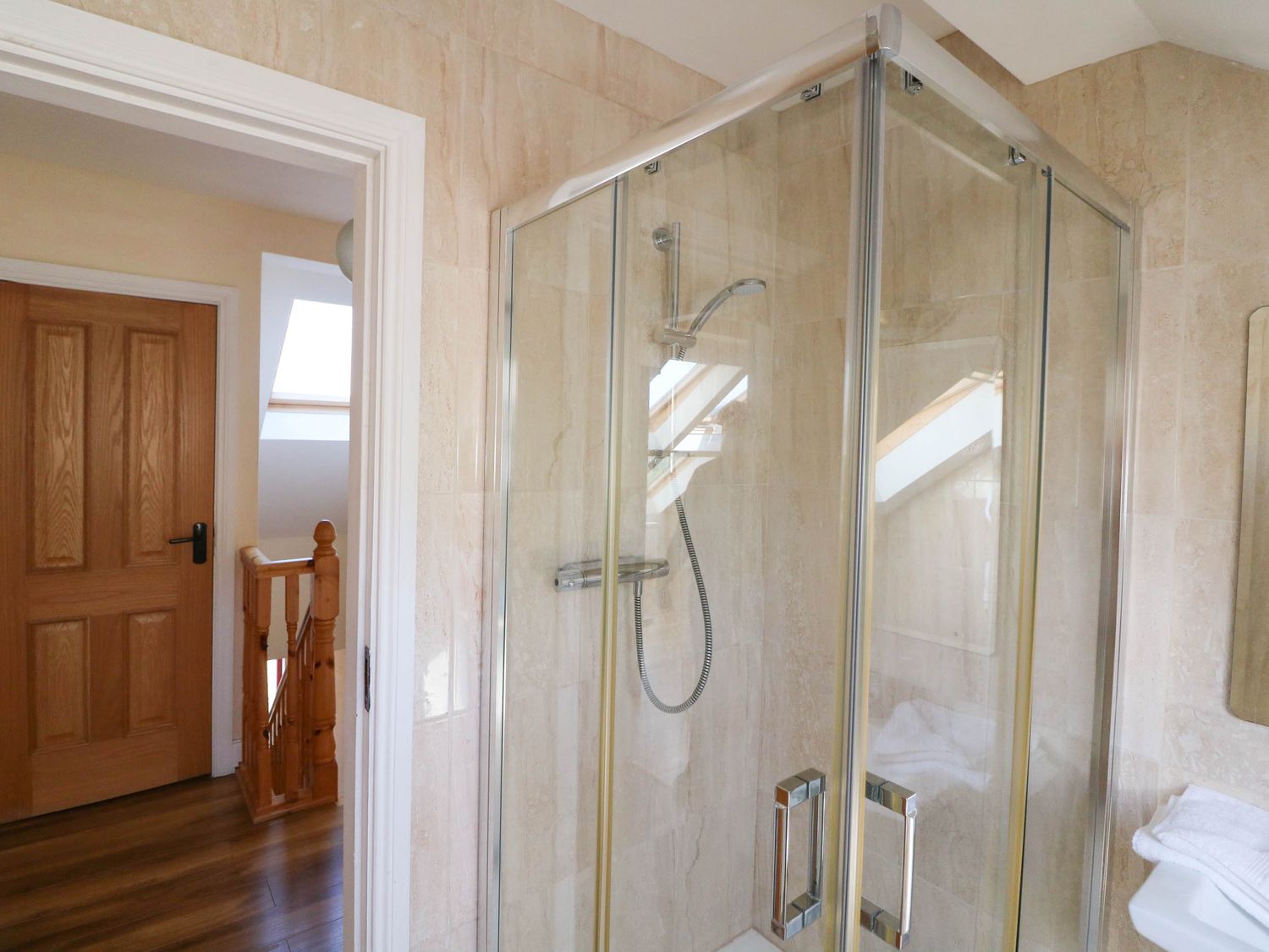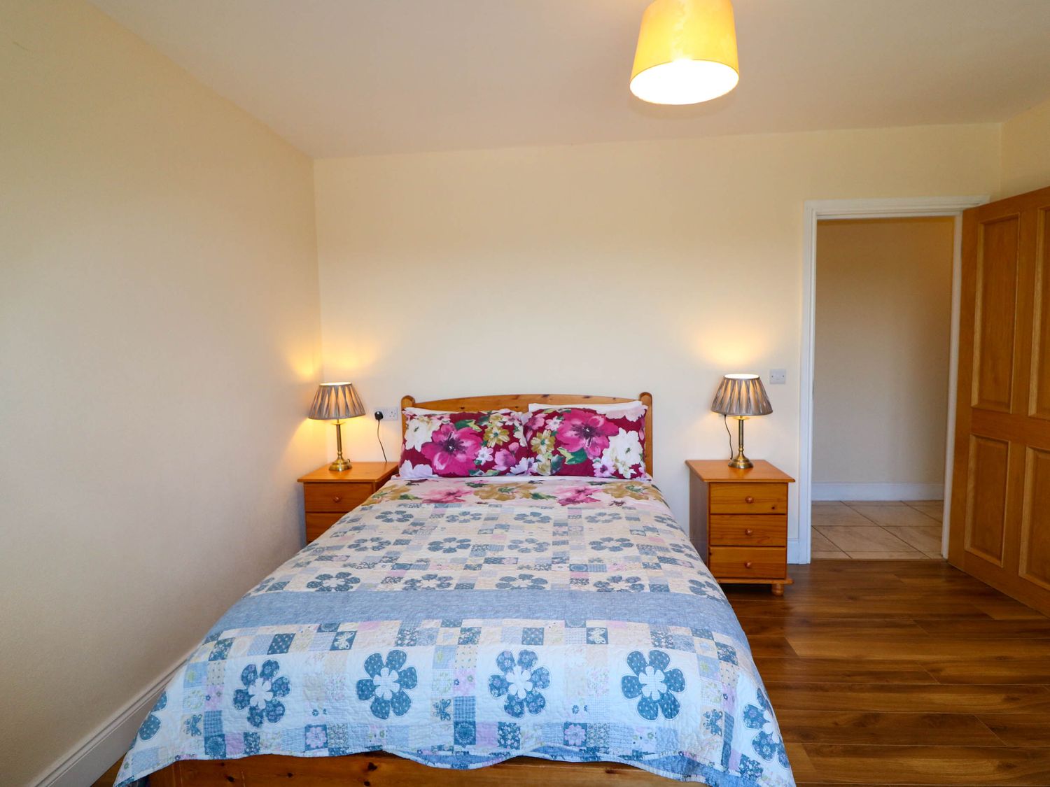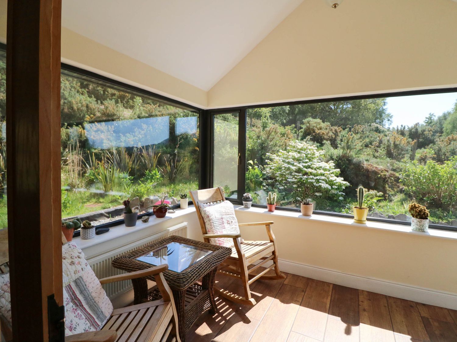 "Three bedrooms: 1 x king-size double, 1 x ground floor double, 1 x twin. Ground floor wet room with walk in shower, basin and WC. Shower room with shower, basin and WC. Open plan living area with kitchen, dining area (seats 6) and sitting area (seats 5) with solid fuel stove. Utility. Conservatory with sitting area."