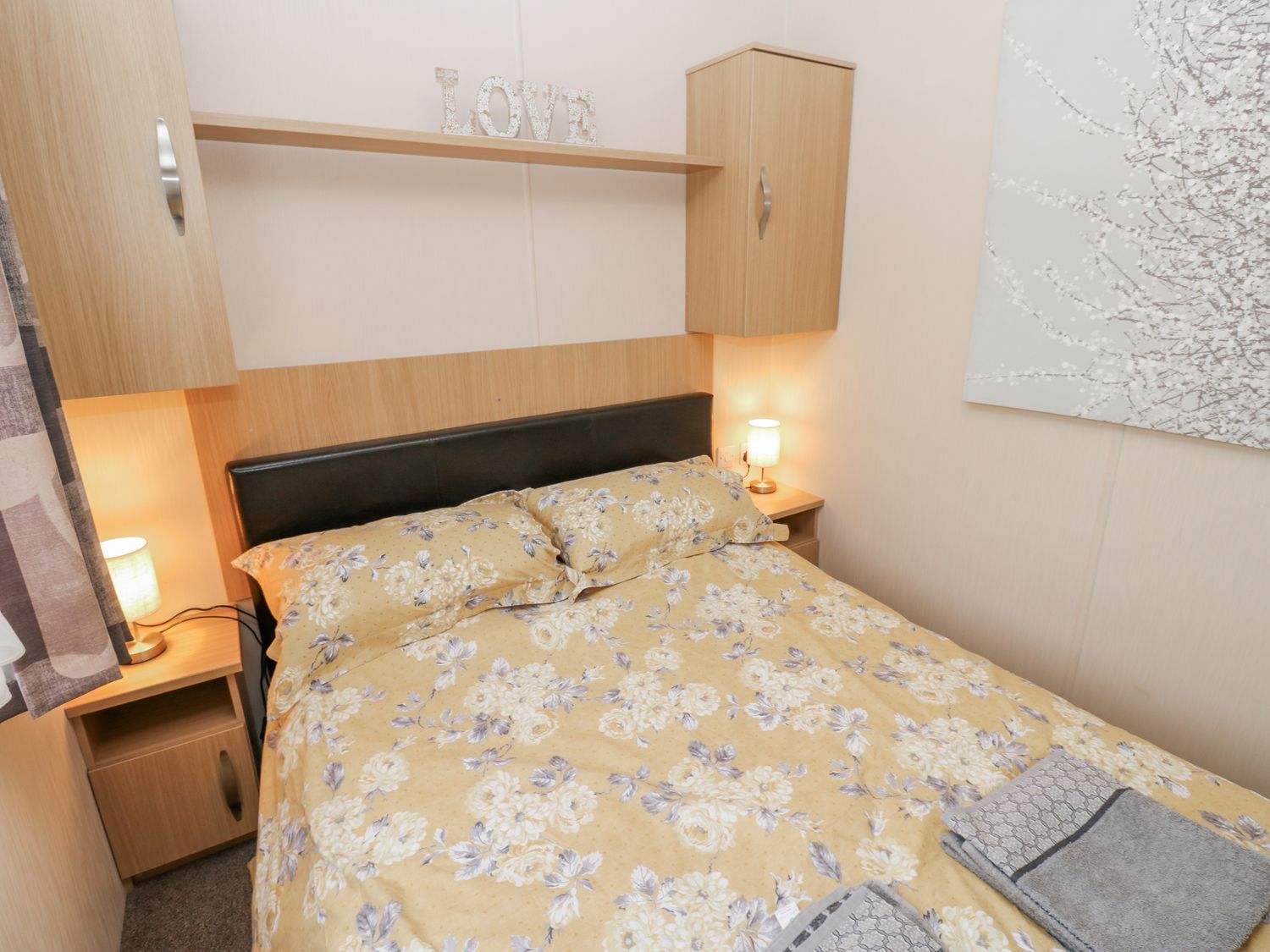 "CateÔÇÖs Cozy Cabin consists of an open-plan living space with a kitchen including an electric oven, gas hob, microwave, fridge/freezer and dishwasher, a dining area seating six, a sitting area with a Smart TV, WiFi and an electric fire. The bedrooms consist of 1 King size and 2 full size single beds, along with a shower room with walk-in shower, basin and WC, and a cloakroom with a basin and WC. Outside, there is an enclosed front garden decking with furniture and off-road parking for 1 car. Within 5.8 miles, you will find a shop, and within 2.6 miles, a pub, with a lake 1.4 miles and a river 0.8 miles away. One well-behaved pet is welcome, and please note that this is a non-smoking property. WiFi, fuel, power, bed linen and towels are all included in the price. Enjoy Cumbria by booking Cate's Cozy Cabin. Note: Steps up to the property, please take care. Note: Additional pets on request."