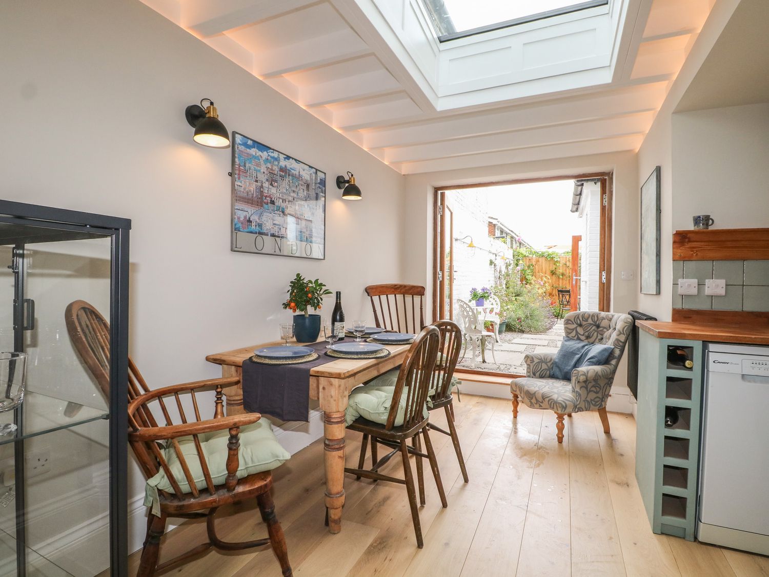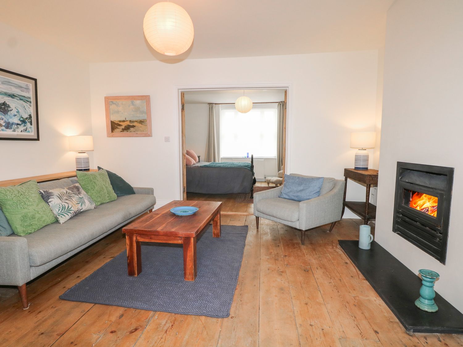 "The Old Post Office, a ground-floor apartment consists of a kitchen/diner with electric oven, induction hob, microwave, fridge/freezer, washing machine, dishwasher, kettle, toaster, and dining seating and a sitting room with open fire and Smart TV. The bedrooms consist of a king-size bed and a double bed. There is a shower room with a walk-in shower, a heated towel rail, a basin, and a WC. You'll find a shop and pub in 0.1 miles, a beach 0.2 miles, and a lake and river in 0.6 miles. WiFi, fuel, power, starter pack for open-fire, bed linen, and towels are included in the rent. Outside, there is an enclosed patio with furniture. One well-behaved dog is welcome. Sorry, no smoking. Find your perfect escape at lower lower-floor flat. Note: there is a Good Housekeeping Bond of 250GBP"