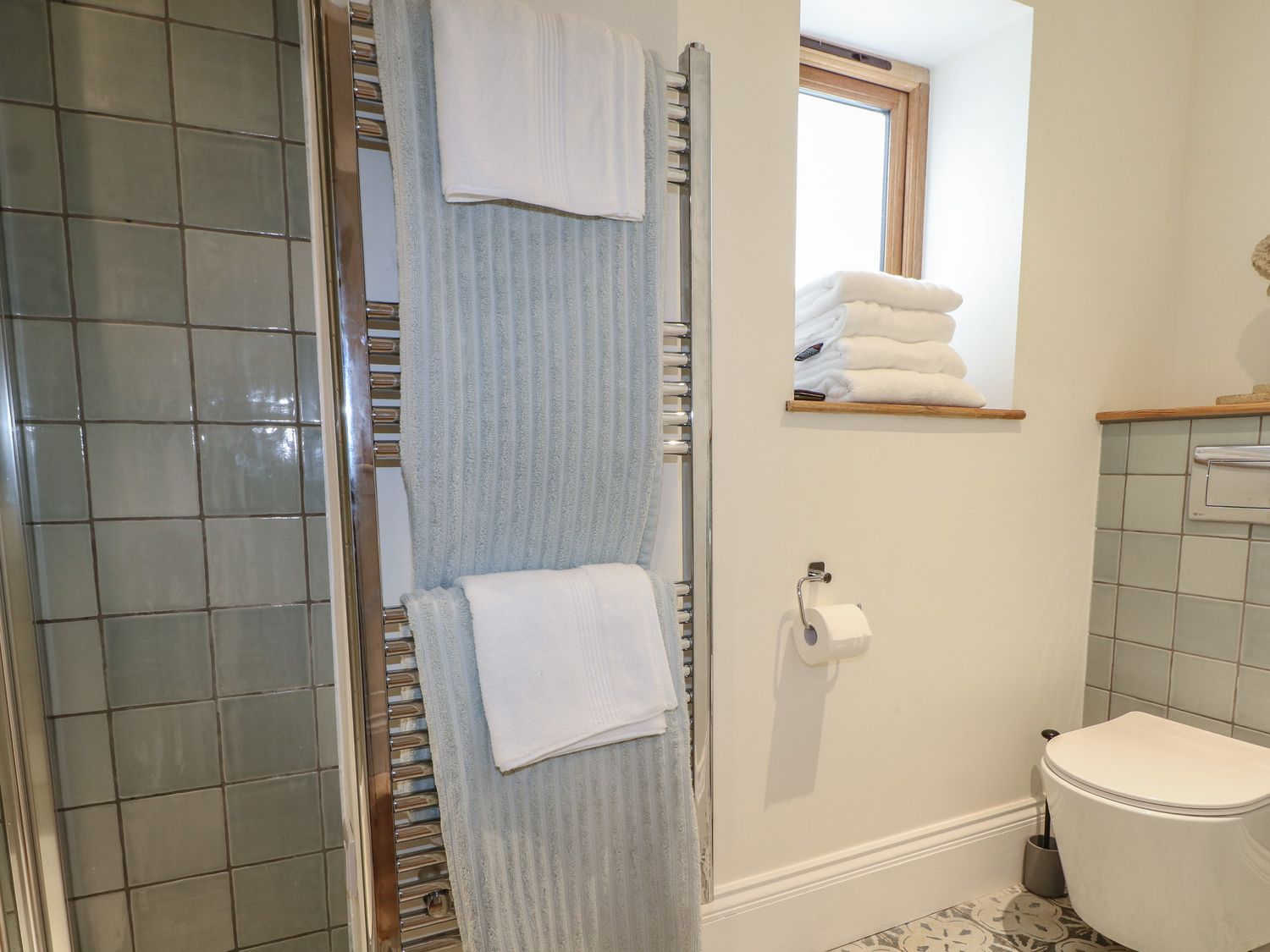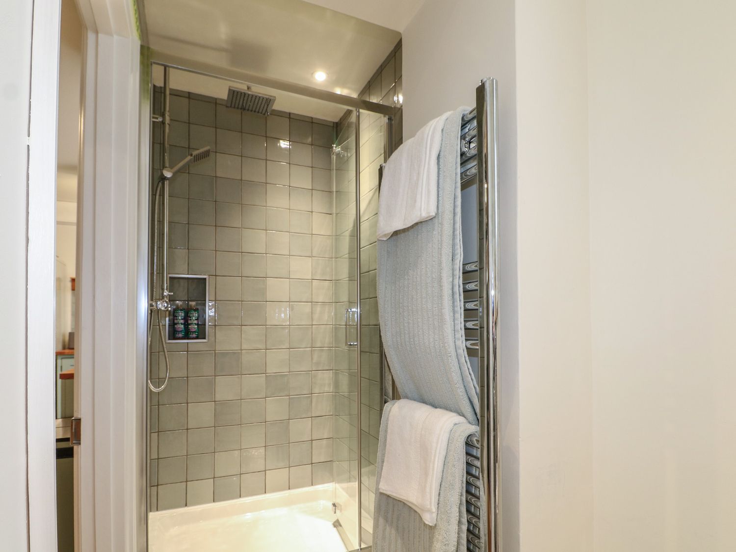 "Ground-floor apartment. One king-size bedroom and one double bedroom. Shower room with walk-in shower, basin, heated towel rail, WC. Kitchen/diner. Sitting room with open-fire"