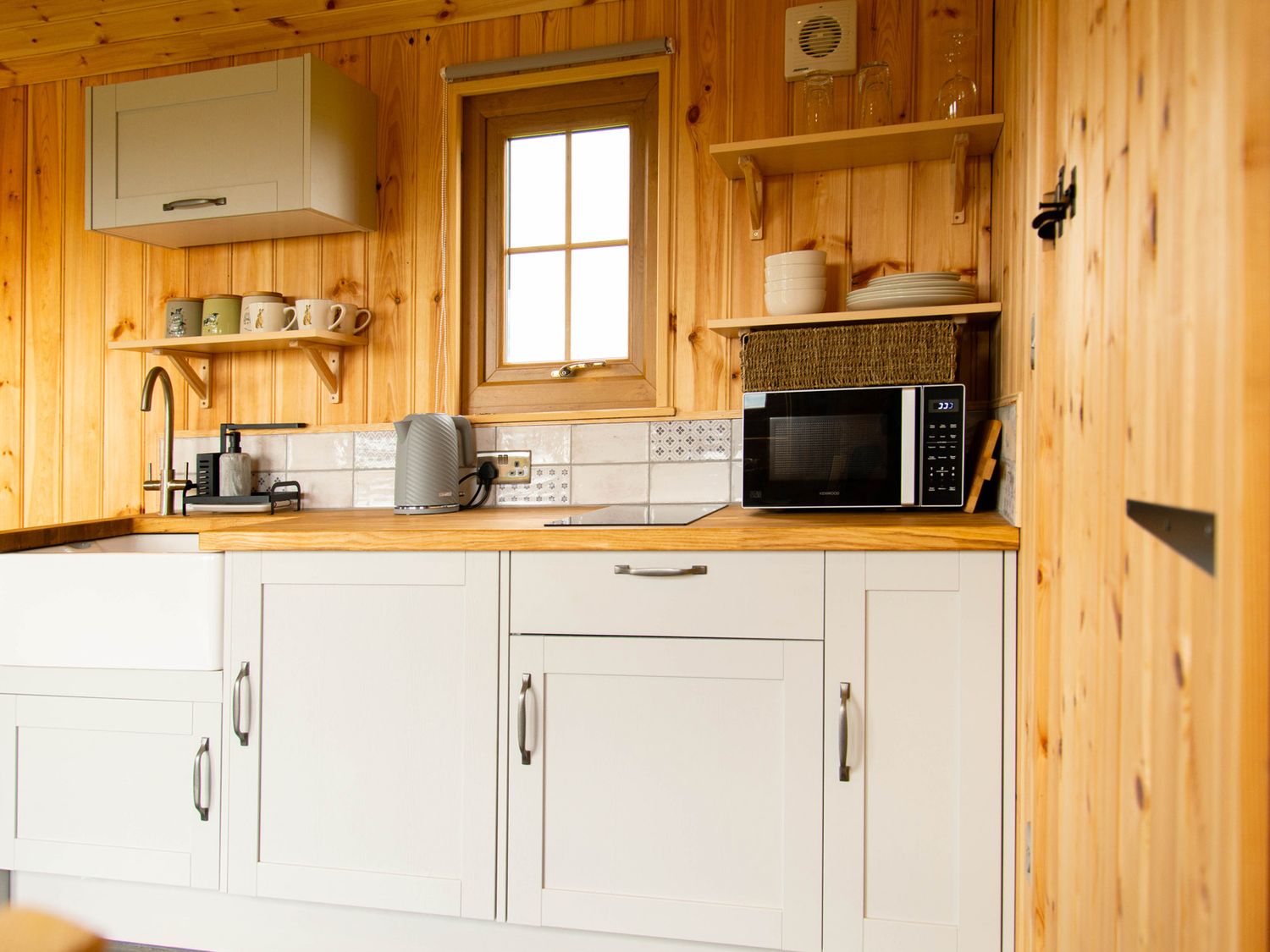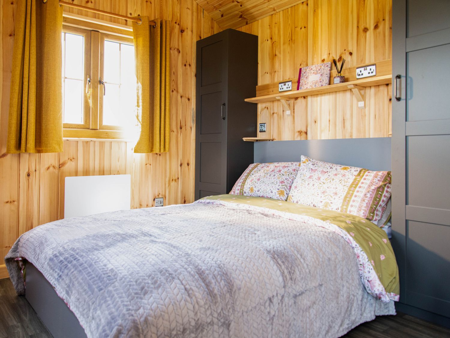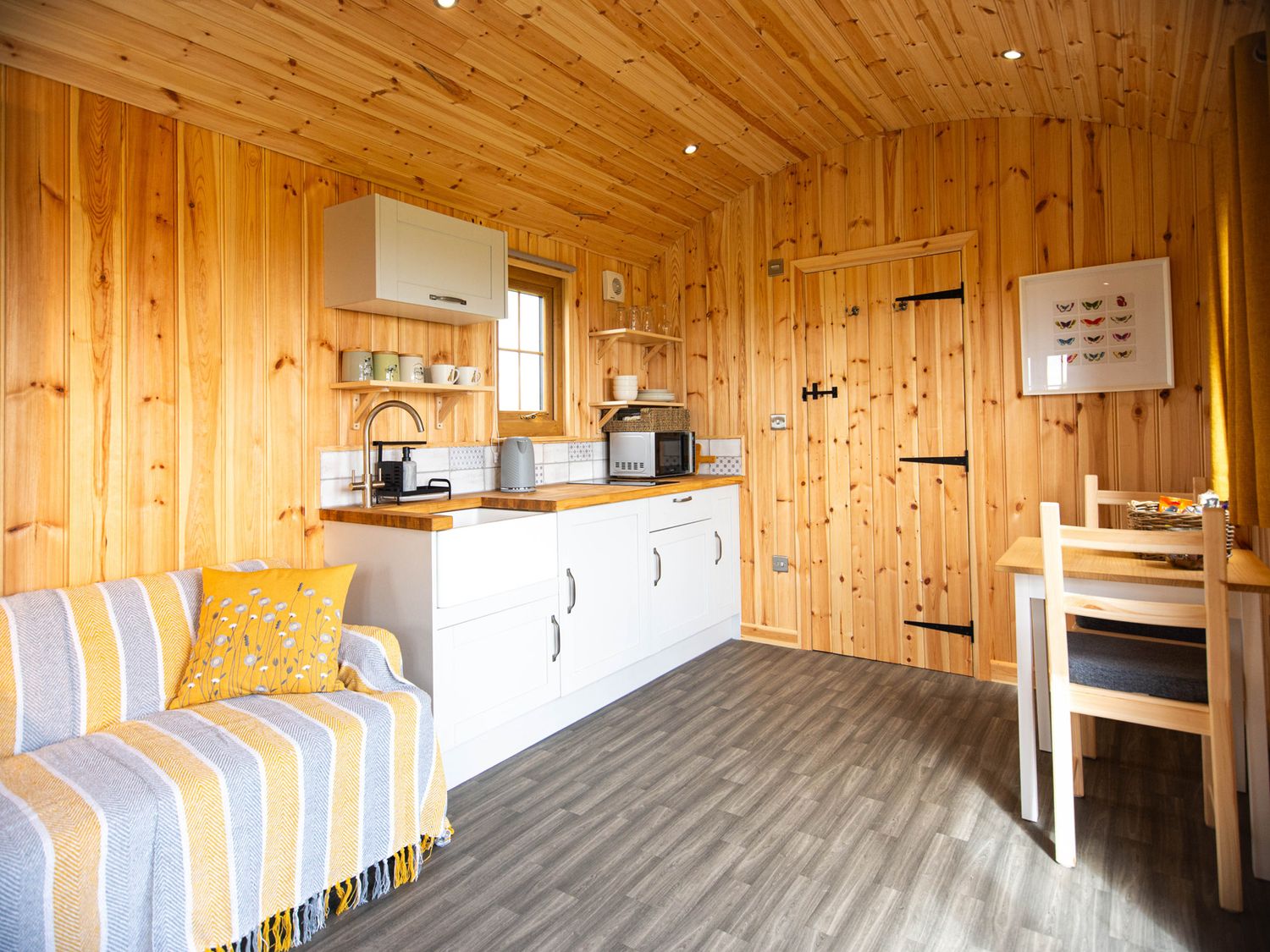 "Head for the Hills Glamping - Skylark Shepherd's Hut, a single-storey shepherd's hut consists of a kitchenette/diner with electric hob, microwave, fridge (with ice box), kettle, toaster and dining seating for two. Double bed. There is a shower room with walk-in shower, basin, and heated towel rail and WC. WiFi, fuel, power, bed linen, and towels included in the rent. Outside, there is an enclosed front decking area with seating and Ninja oven. Non-enclosed lawn area and off-road parking for two cars. Up to four well-behaved pets welcome. Sorry, no smoking. Uncover the best of Carmarthenshire and its surrounding areas with a holiday at Head for the Hills Glamping - Skylark Shepherd's Hut. Note: On site are alpacas, chickens, horses, and goats for guests to view. Note: This property has a Good Housekeeping bond of GBP100."