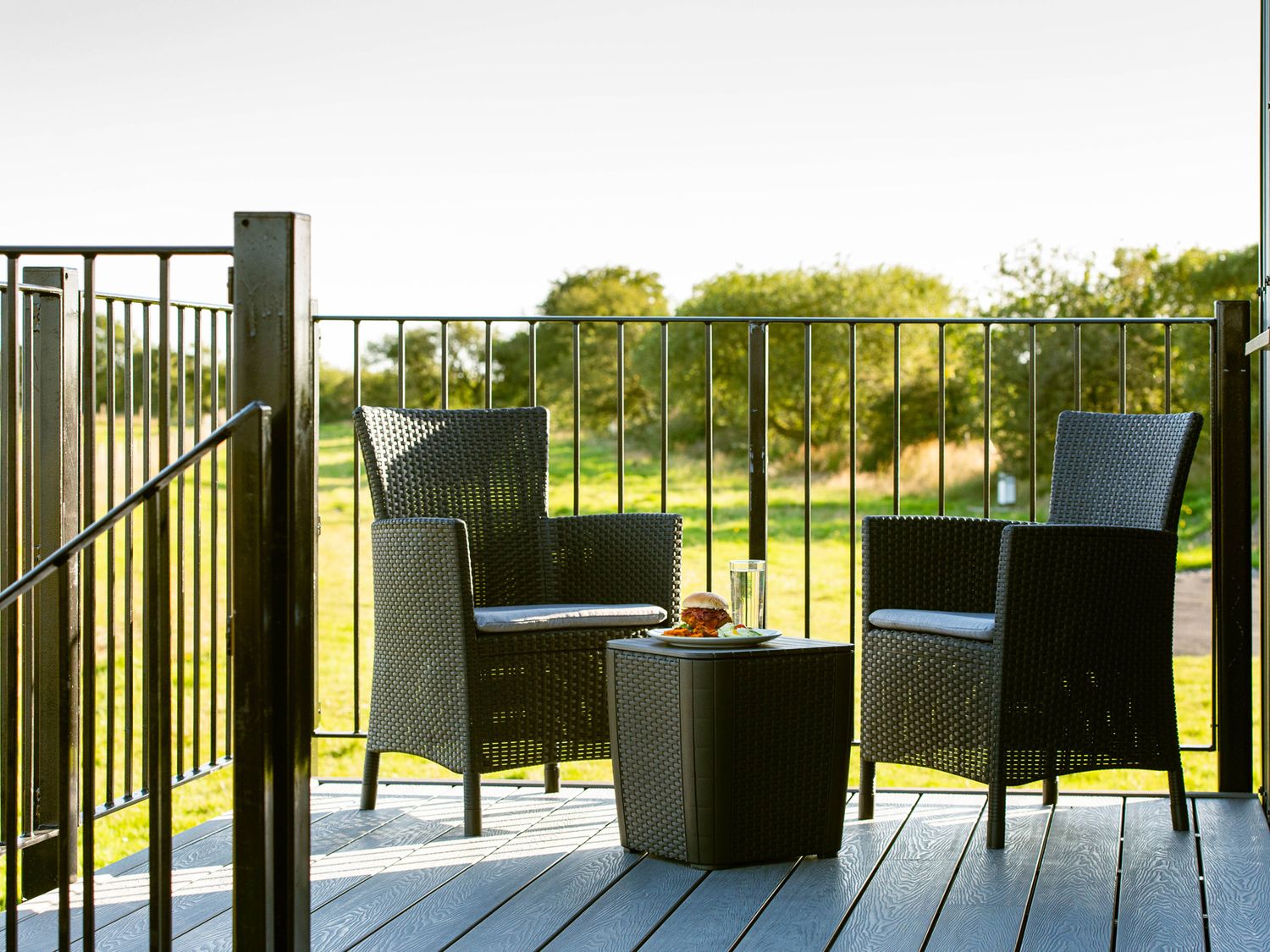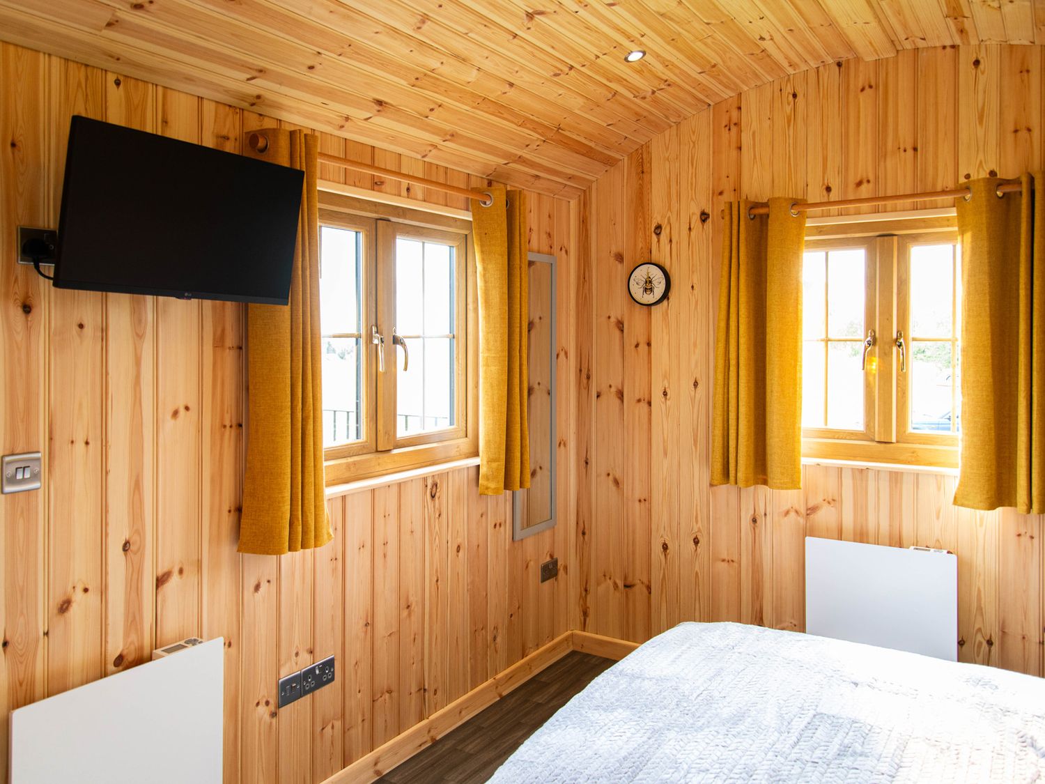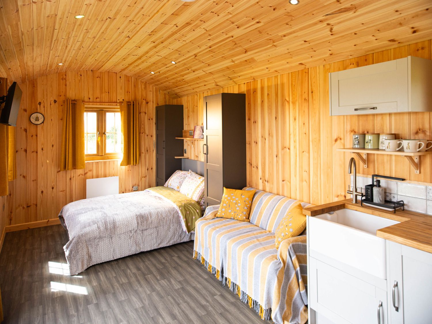 "Single-storey. One double with Smart TV. Shower room with walk-in shower, basin, heated towel rail, WC. Kitchenette/diner"