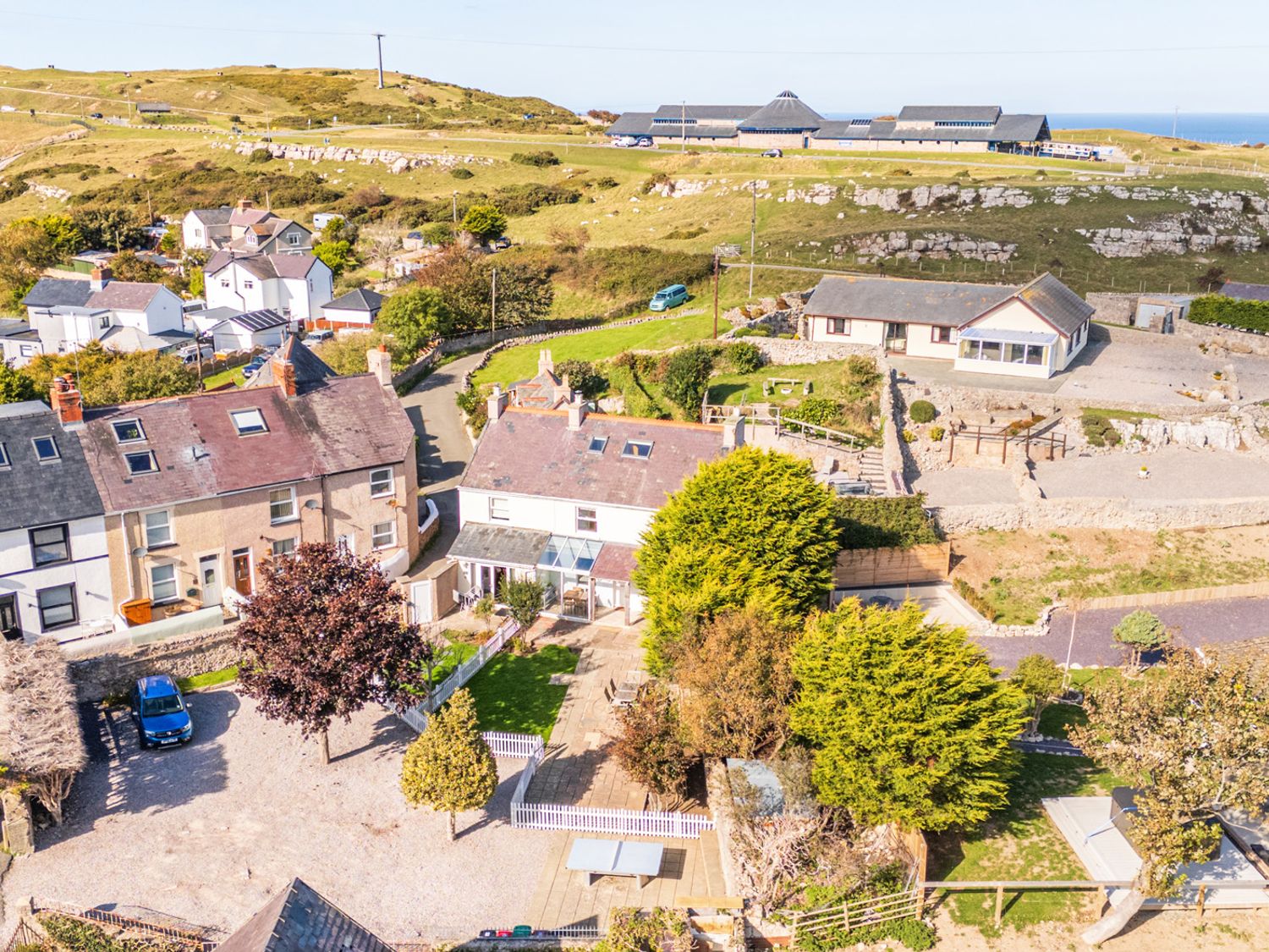"Ty Bach - Cosy Welsh cottage, in an elevated position near the top of the famous Great Orme, with fantastic views of the coast of Llandudno. Over two floors. Two bedrooms: 1 x double with en-suite shower, basin and WC and 1 x single with en-suite shower, basin and WC. Open-plan living space with kitchen, dining area and sitting area with woodburning stove. "