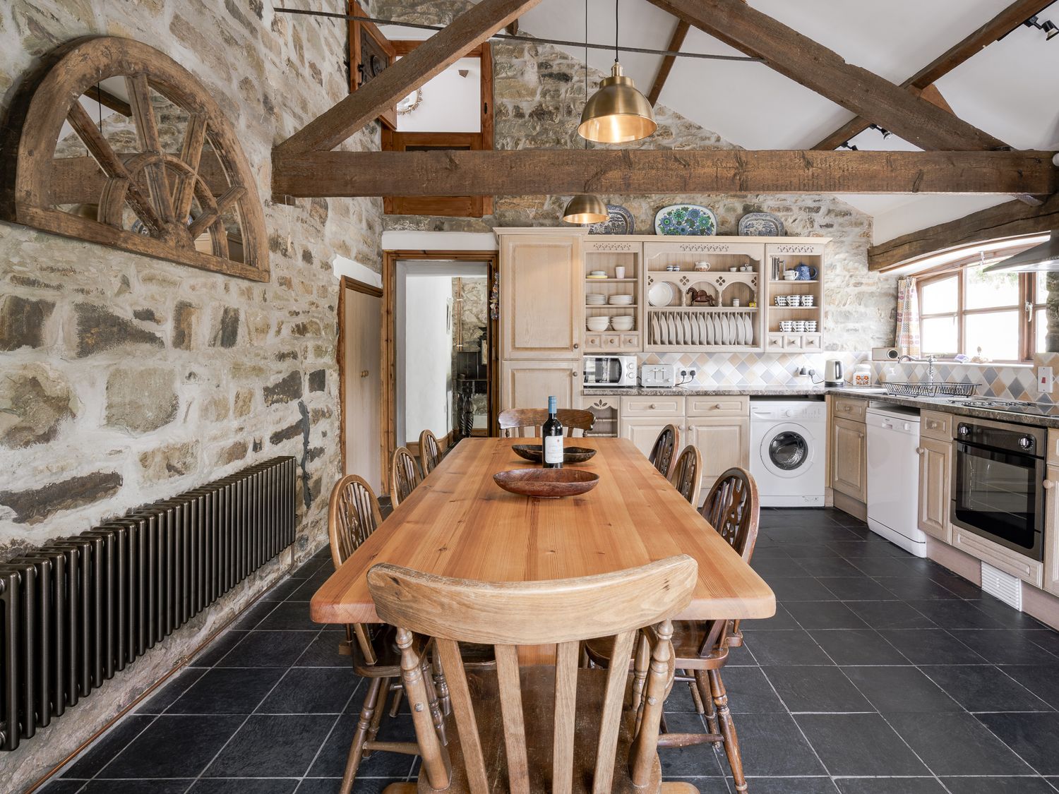 "Coach House consists of a kitchen/diner with electric oven, electric and inductions hobs, microwave, fridge/freezer, dishwasher, washing machine, and dining seating for eight people, and a sitting room with TV and woodburning stove. The bedrooms consist of a double, ground-floor double, a double and a versatile family room featuring a double/super single sized mattresses (3ÔÇÿ6ÔÇ£) bunk bed and a kind-size 4 poster bed, serviced by a bathroom and ground-floor wet room. WiFi, fuel, power, logs for woodburning stove, and bed linen inc. in rent. Travel cot and highchair available. Outside, there is an enclosed garden with patio, lawn, and picnic bench, and off-road parking for three cars. 2 x EV charging points (please check with owners for current tariff). Two well-behaved pets are welcome. Sorry, no smoking. All of this awaits at Coach House. Note: Heated indoor swimming pool on-site May-September - available outside of these months at an additional cost. Note: Please put personal throws on beds if dogs sleep on them. Note: Please do not leave dogs shut in for long periods of time. Note: Towels not included, please bring your own bath and pool/beach towels. Note: Christmas and New Year 2025 arrivals are on Saturday 20th December and 27th December."