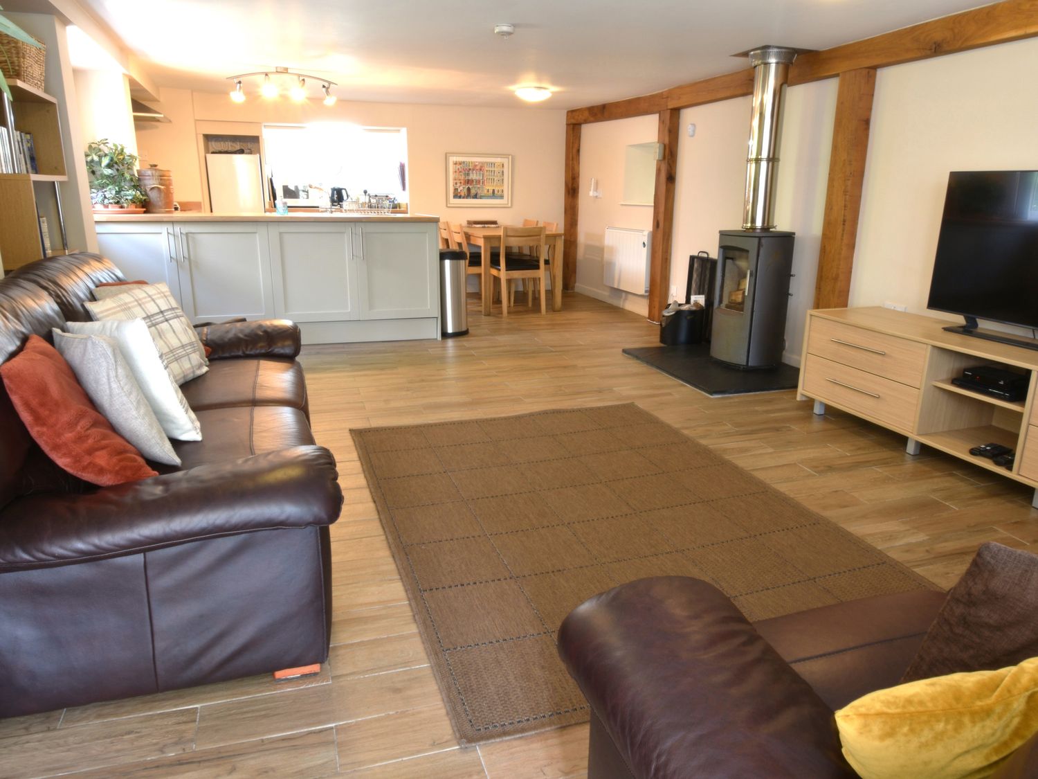 "Three bedrooms: 1 x double, 1 x twin, 1 x single. Shower room with shower, basin and WC. Open plan living area with kitchen, dining area and sitting area with woodburner. Shared external games room with pool table, darts board and selection of board games."