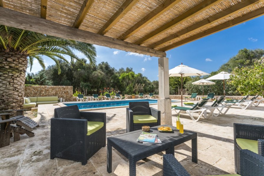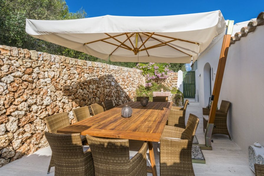 Villa Solecito provides a most comfortable and attractive holiday base. All the rooms are well proportioned, light and welcoming, with 6 en-suite bathrooms serving 6 bedrooms, an indication of the care that has gone into the property's design. The owners have taken great care to retain the architectural integrity of the property, maintaining original features such as the beamed ceilings and natural stone walls. The cool, bright interiors and comfortable yet stylish furniture throughout ensure a welcoming and inviting atmosphere. No stone has been left un-turned in the owner's quest to make your stay a most comfortable one, from the fully equipped country style kitchen to the private exterior dining terrace with open fireplace for the cooler months, encouraging the greatest enjoyment of both the local cuisine and outdoor living. Outside is no less spacious, with a large parkland style garden and a wide dining patio which links the house to the pool area. The relaxed Menorcan pace of life will no doubt be easy to follow here, with lazy days by the gated swimming pool perhaps finished with a glass of wine from a local producer. The sleepy hamlet of Llucmacanes (Llumesanas) in Menorca is situated approximately five minutes drive from both the island's capital town of Mahon and the much smaller but charming 18th century town of San Luis (Sant Lluis). A picturesque settlement (population circa 200), Llucmacanes is surrounded by open countryside complete with vineyards and quiet country paths that are ideally suited to walking and cycling. The local shop that caters for most requirements is owned by a friendly Menorcan family. The nearby towns of Sant Climent and San Luis have some very nice bars and restaurants, with an even wider choice in Mahon and Es Castell including some fantastic waterfront locations.The fine white sandy beaches at Alcaufar, Binibeca and Punta Prima are a short drive away, and are ideal for families with younger children or non-swimmers. The capital Mahon (Mao) and the airport are only 5 minutes drive from Llucmacanes. #### Features Villa Interior - Main Lounge with comfortable sofas - Second TV style room with comfortable sofas & DVD, perfect for children - Dining room - Fully equipped island style kitchen with breakfast seating leading out to the terrace area - 6 bedrooms - 6 bathrooms - 1 WC - Utility room with washing machine Villa Exterior - Ample terrace space with comfortable seating and table and chairs for al fresco dining - Gated private swimming pool - Large garden with small shaded forest - perfect for children to play - Remote control entrance gates - BBQ and mini kitchenette Villa Amenities - BBQ - TV & DVD - Iron - Cot & High Chair - Extra bed - on request - Washing machine #### Location Serene and typically Menorcan, the village of Llucmacanes with its whitewashed farmhouses and village church can be considered a sleepy, but enchanting offering. Enveloped by pretty countryside, vineyards and wild olive trees, this is an area to enjoy nature at its best. Walking or cycling along country lanes, spotting typical dry stone walls and subtle but beautiful flora and fauna, it's a picture-perfect scene. You may also come across the Basilica des Fornas de Torello nearby - the remains of an old Roman church with faded but fascinating mosaics. There's a local shop in the town, but if you require something more, Llucmacanes is perfectly located to reach the capital, Mahon, the lovely town of San Luis or San Clemente - all of which have fantastic bars, cafes and restaurants.