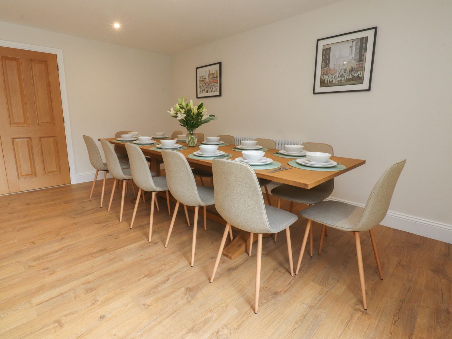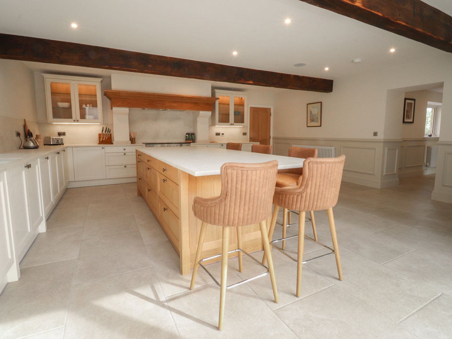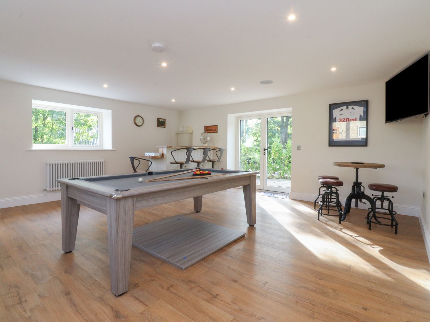 "Alston House is a property that consists of a kitchen/diner with central island with five stools around, wine fridge, ranger master double oven, induction hob, toaster, kettle, coffee maker, microwave, dining table for five, and fridge/freezer, a utility with washing machine and tumble dryer, a dining room with dining table and chairs for twelve and stairs leading up to cinema room, a sitting room with armchair, three sofas, oil stove, smart TV, and beams, a snug with two armchairs, table, picture windows, selection of books, and on the landing area, a game room with pool table, Pacman game machine, bar area, smart TV, and table and chairs, a cloakroom with basin and WC, and a cinema room with beanbags, two corner sofas, smart TV, and Velux windows. The bedrooms consist of a king-size, two king-size with en-suites, twin, and family room. There is a bathroom with freestanding bath, walk-in shower, heated towel rail, and double basin and WC, and shower room with walk-in shower, basin, heated towel rail, and WC. WiFi, fuel, power, bed linen, and towels are included in the rent. Outside, there is an enclosed rear garden with patio, lawn, furniture, and covered hot tub, and ample off-road parking. Sorry, no pets and no smoking. Your journey to Lancashire is guaranteed to be one to remember, with a stay at Alston House. Note: This property requires a Good Housekeeping Bond of 350 GBP."