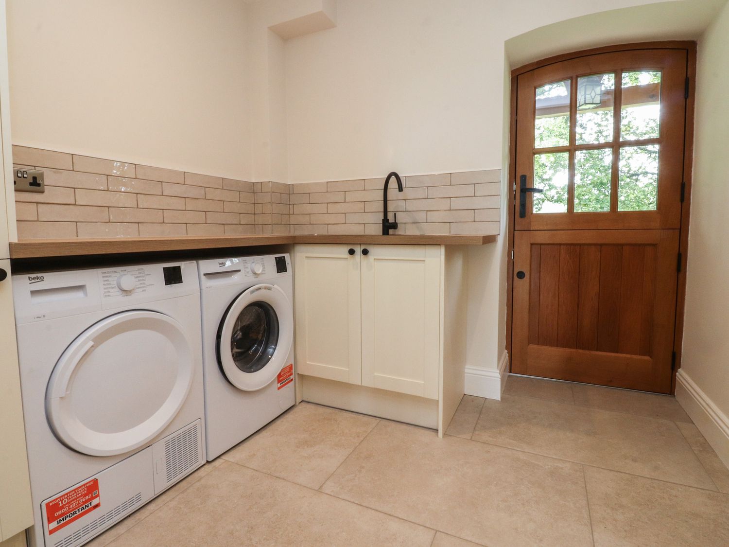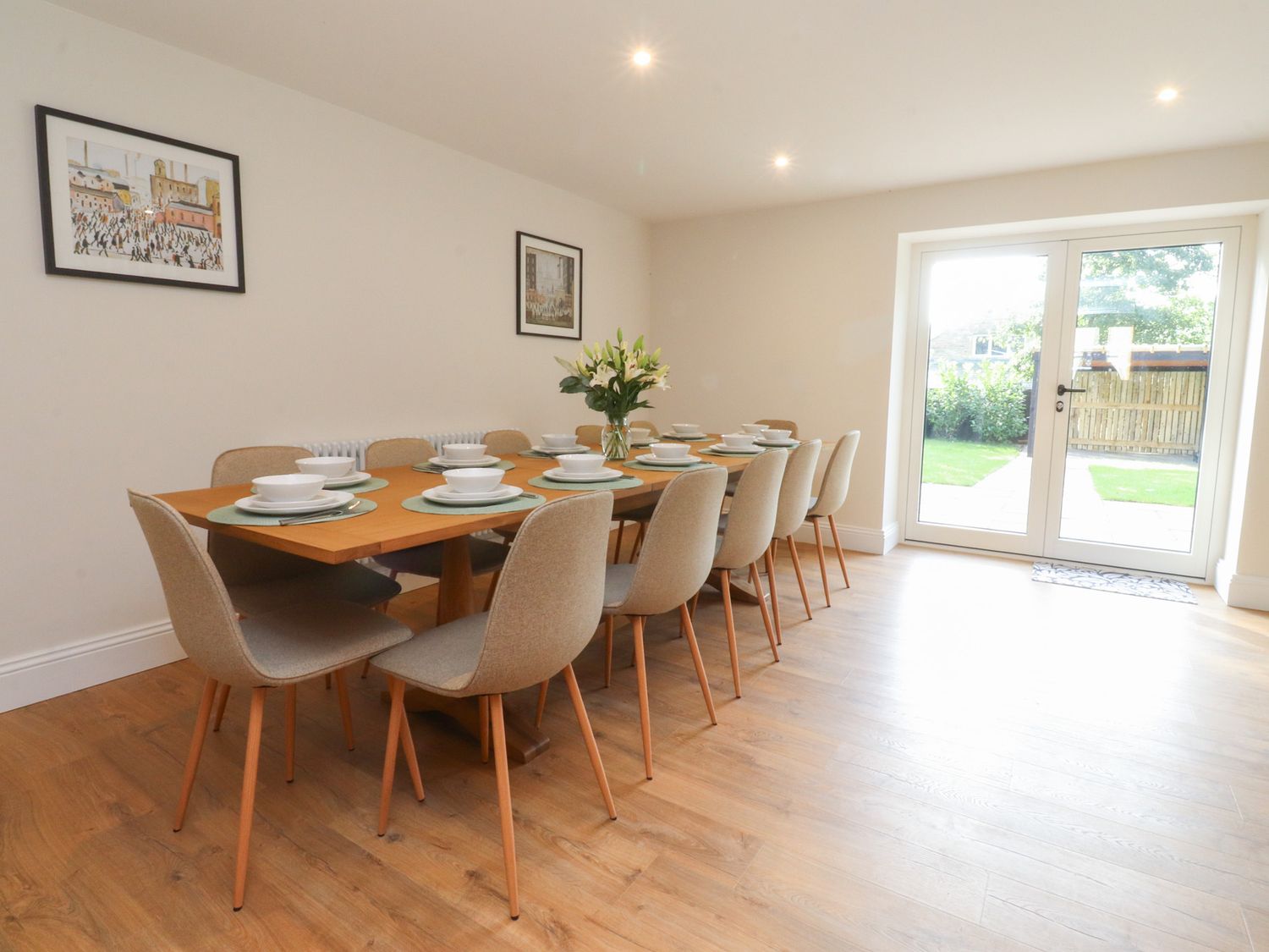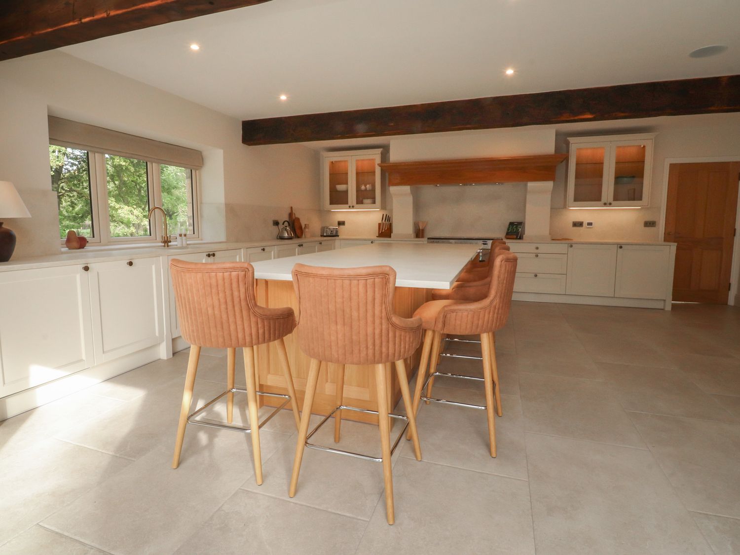 "Alston House is a property that consists of a kitchen/diner with central island with five stools around, wine fridge, ranger master double oven, induction hob, toaster, kettle, coffee maker, microwave, dining table for five, and fridge/freezer, a utility with washing machine and tumble dryer, a dining room with dining table and chairs for twelve and stairs leading up to cinema room, a sitting room with armchair, three sofas, oil stove, smart TV, and beams, a snug with two armchairs, table, picture windows, selection of books, and on the landing area, a game room with pool table, Pacman game machine, bar area, smart TV, and table and chairs, a cloakroom with basin and WC, and a cinema room with beanbags, two corner sofas, smart TV, and Velux windows. The bedrooms consist of a king-size, two king-size with en-suites, twin, and family room. There is a bathroom with freestanding bath, walk-in shower, heated towel rail, and double basin and WC, and shower room with walk-in shower, basin, heated towel rail, and WC. WiFi, fuel, power, bed linen, and towels are included in the rent. Outside, there is an enclosed rear garden with patio, lawn, furniture, and covered hot tub, and ample off-road parking. Sorry, no pets and no smoking. Your journey to Lancashire is guaranteed to be one to remember, with a stay at Alston House. Note: This property requires a Good Housekeeping Bond of 350 GBP."
