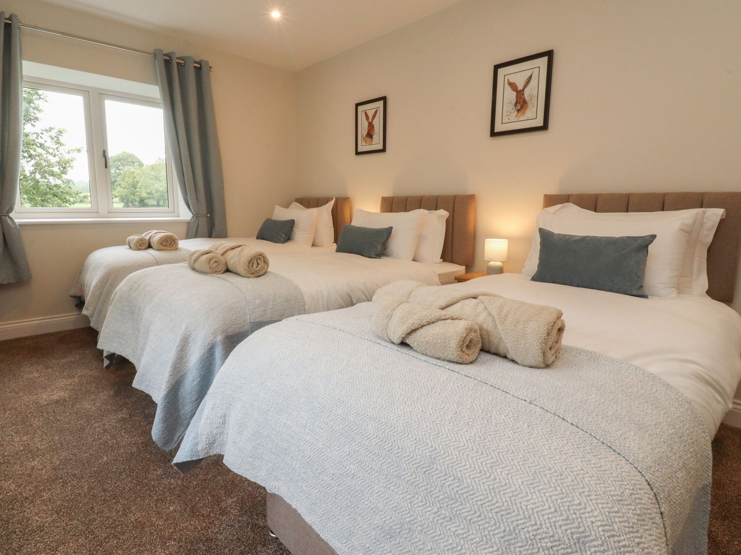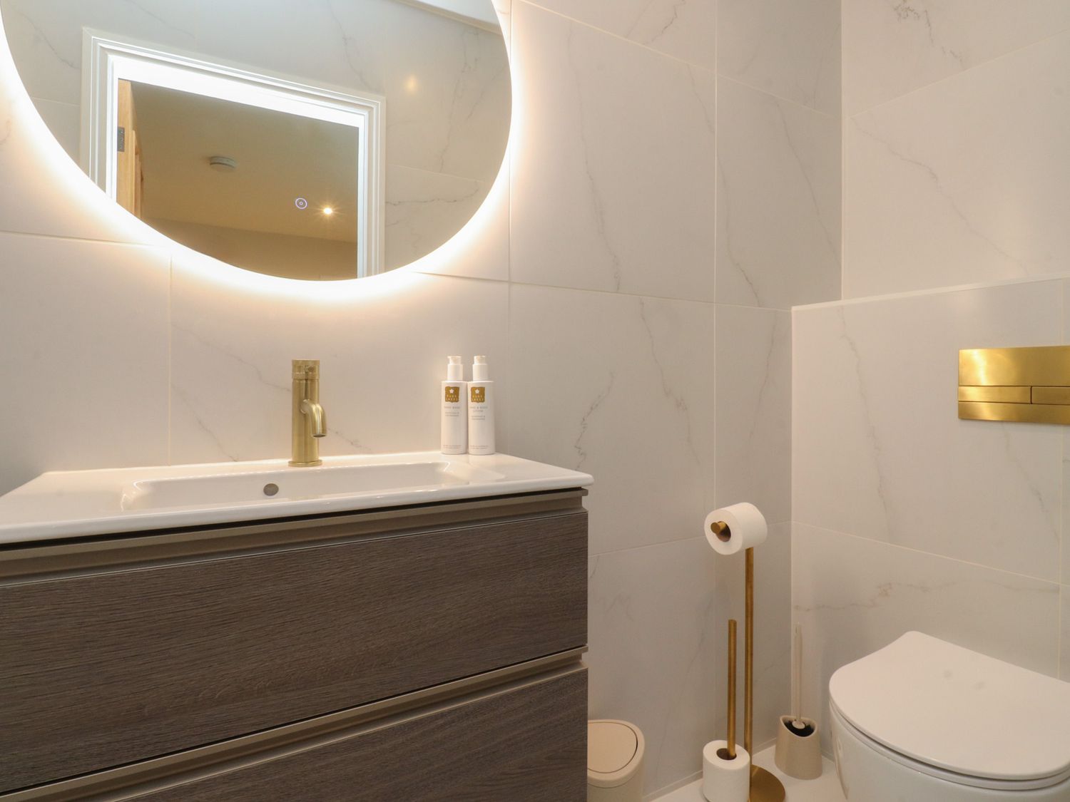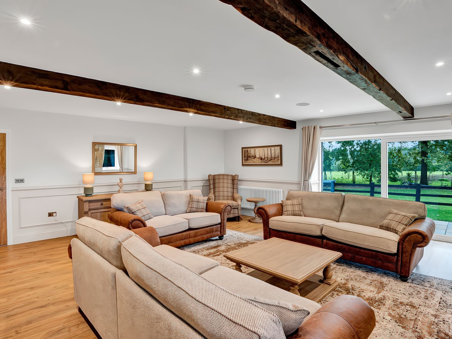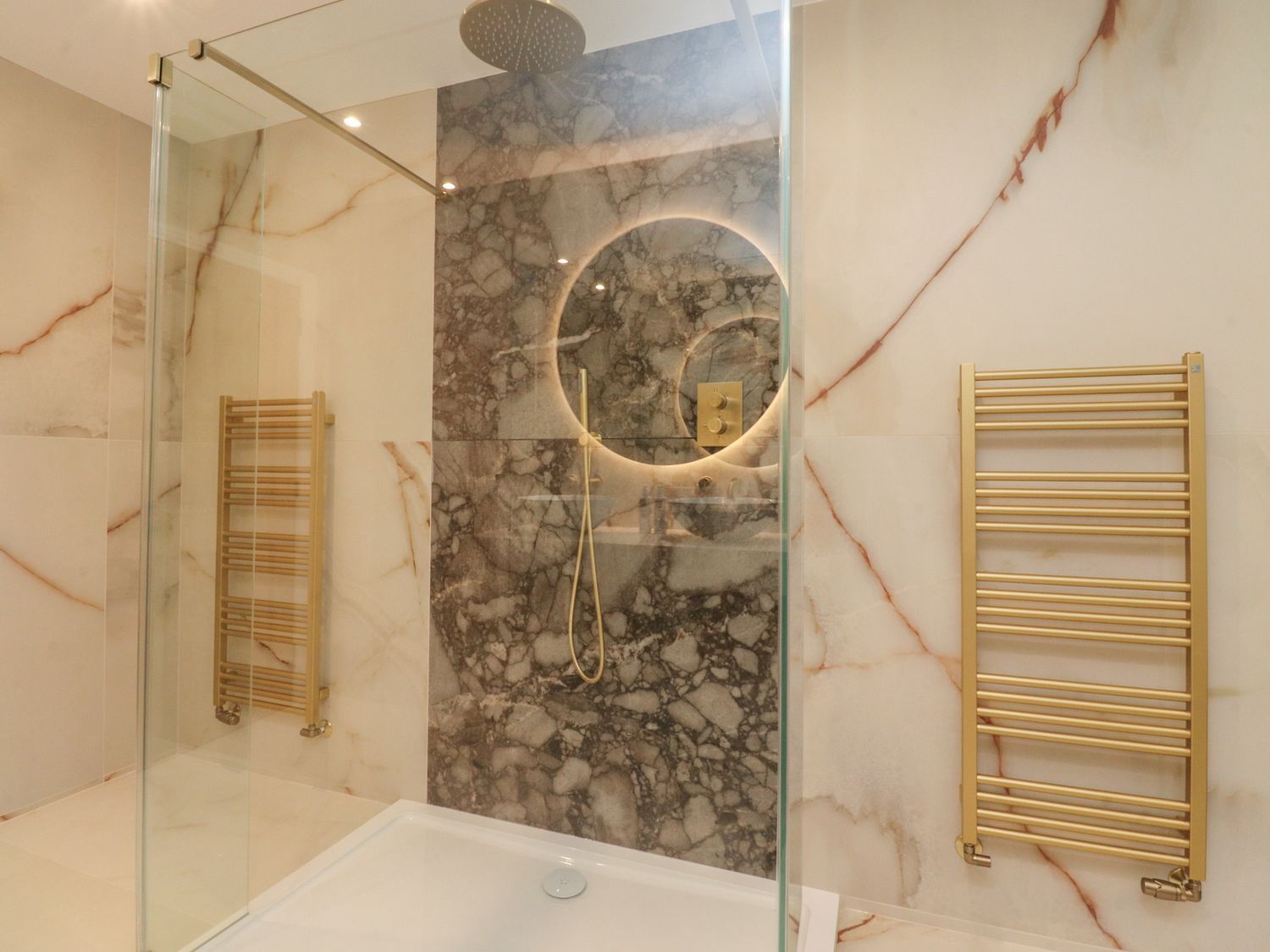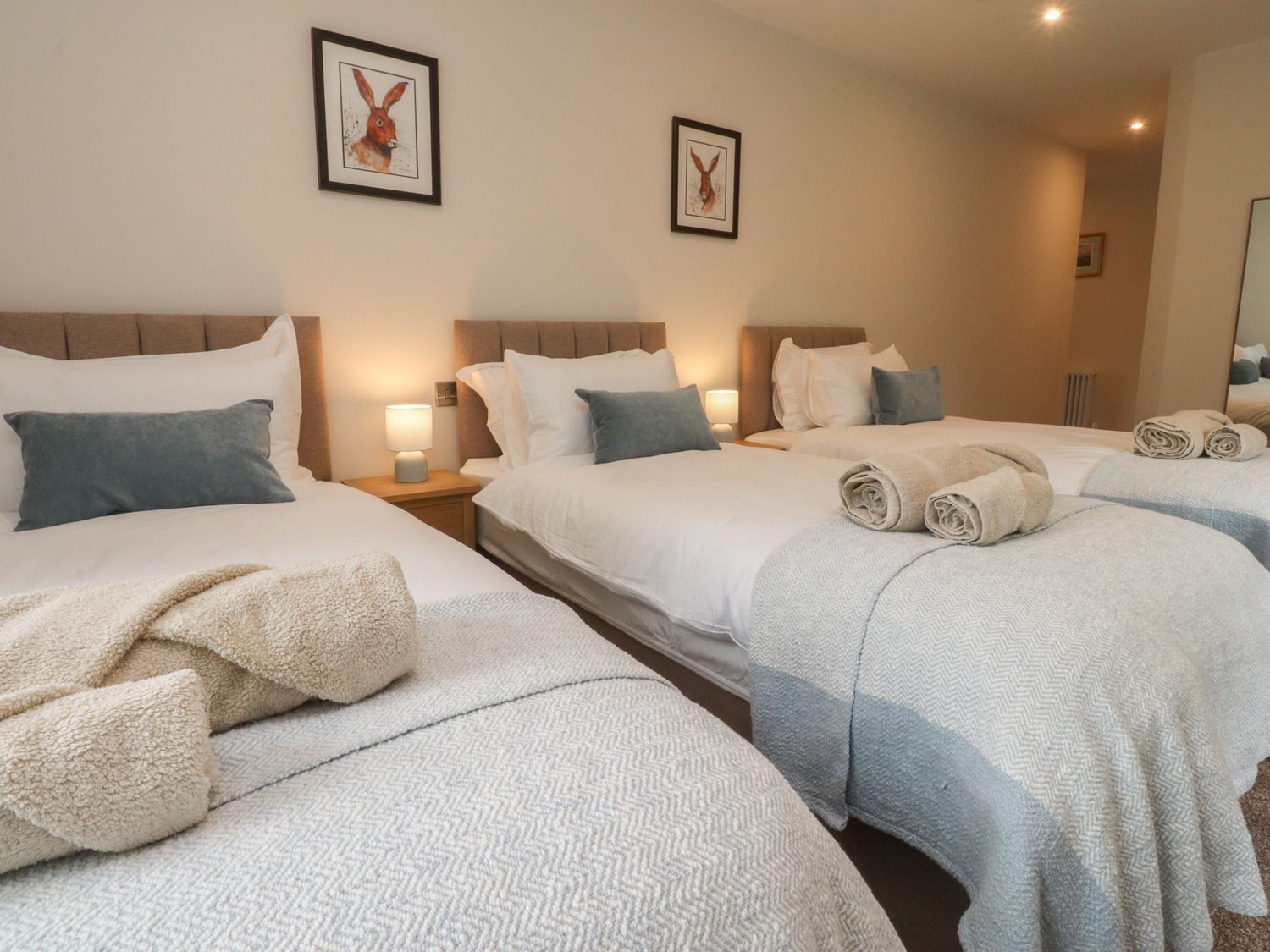"Five bedrooms: 1 x king-size, 2 x king-size with en-suite with walk-in shower, basin, and heated towel rail and WC, 1 x twin, 1 x family room. Bathroom with freestanding bath, walk-in shower, double basin, heated towel rail. Shower room with walk-in shower, basin, heated towel rail, WC. Kitchen/diner. Utility. Dining room. Sitting room. Snug. Game room with Smart TV. Cloakroom with Basin and WC. Cinema room with Smart TV"