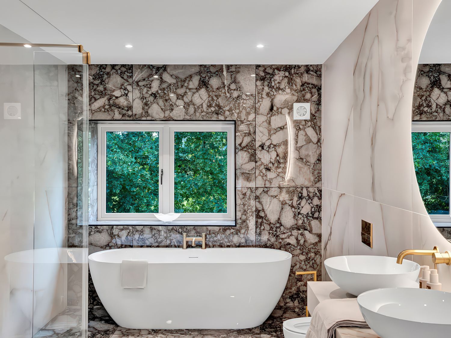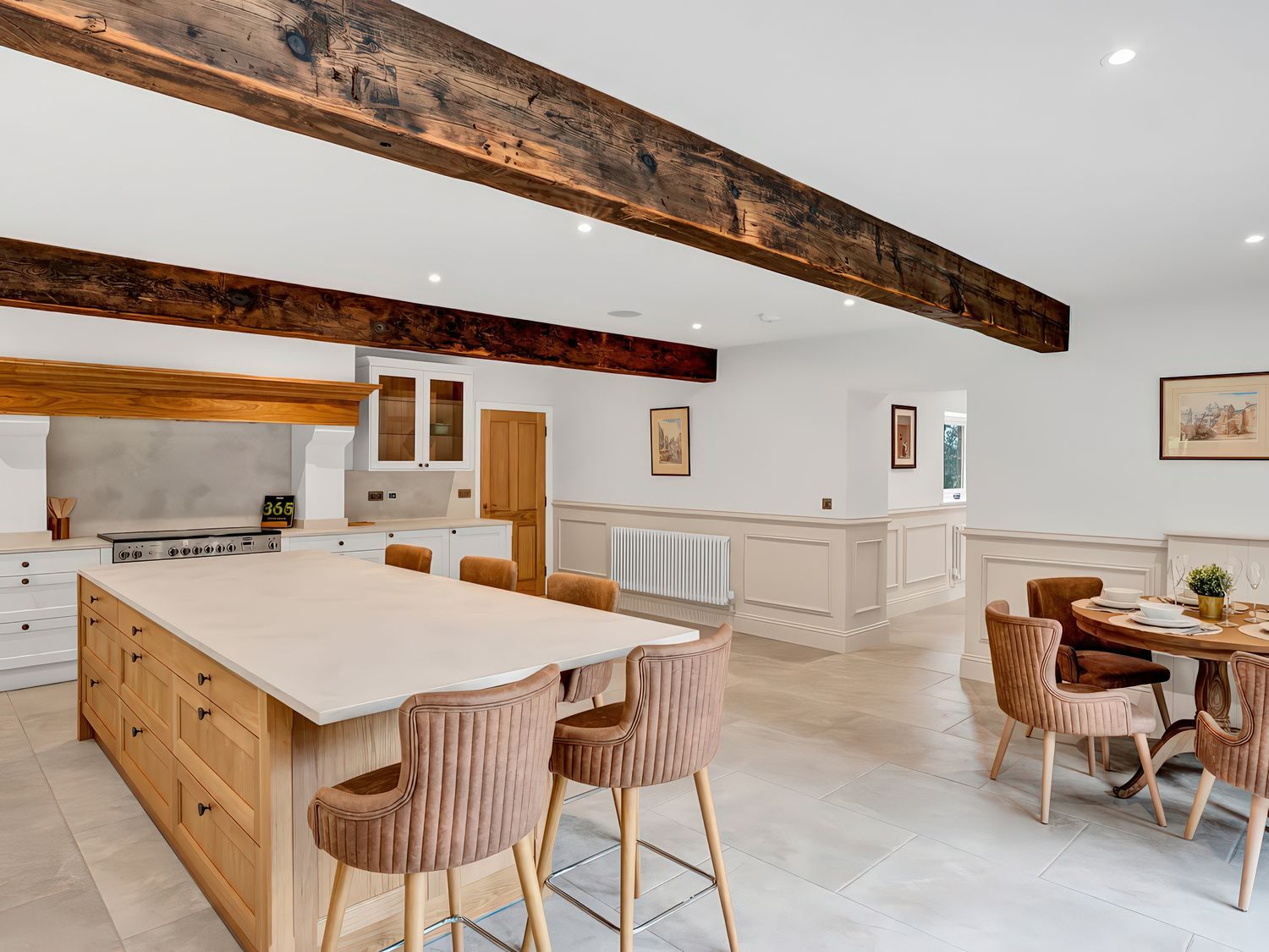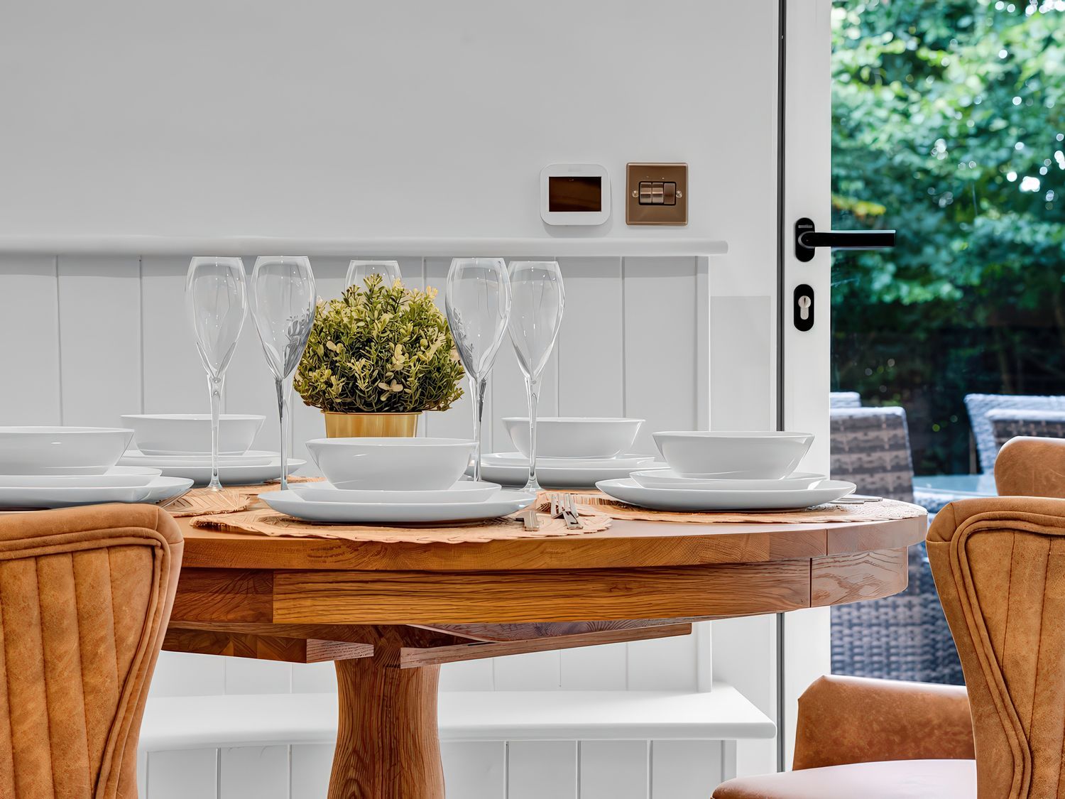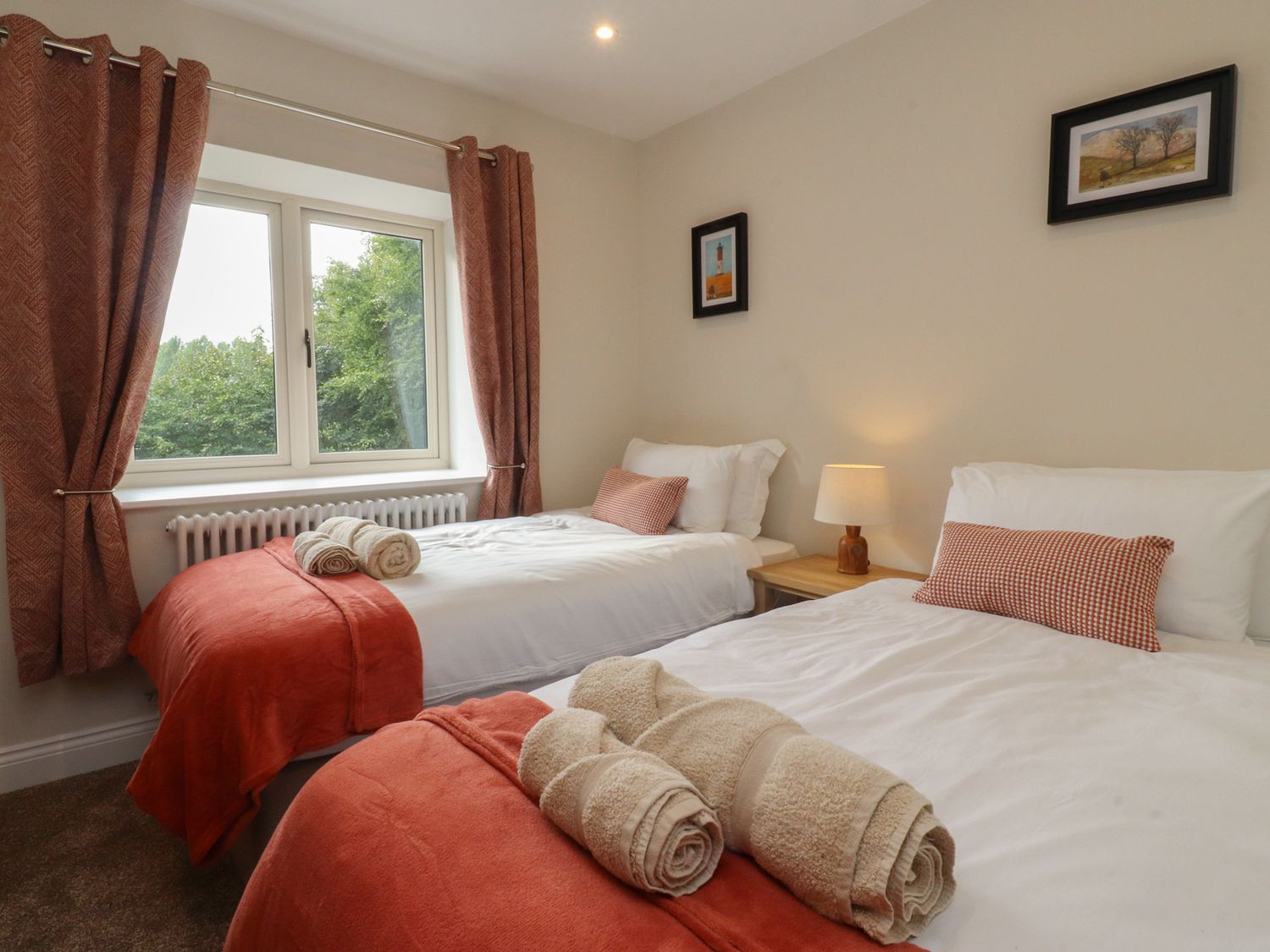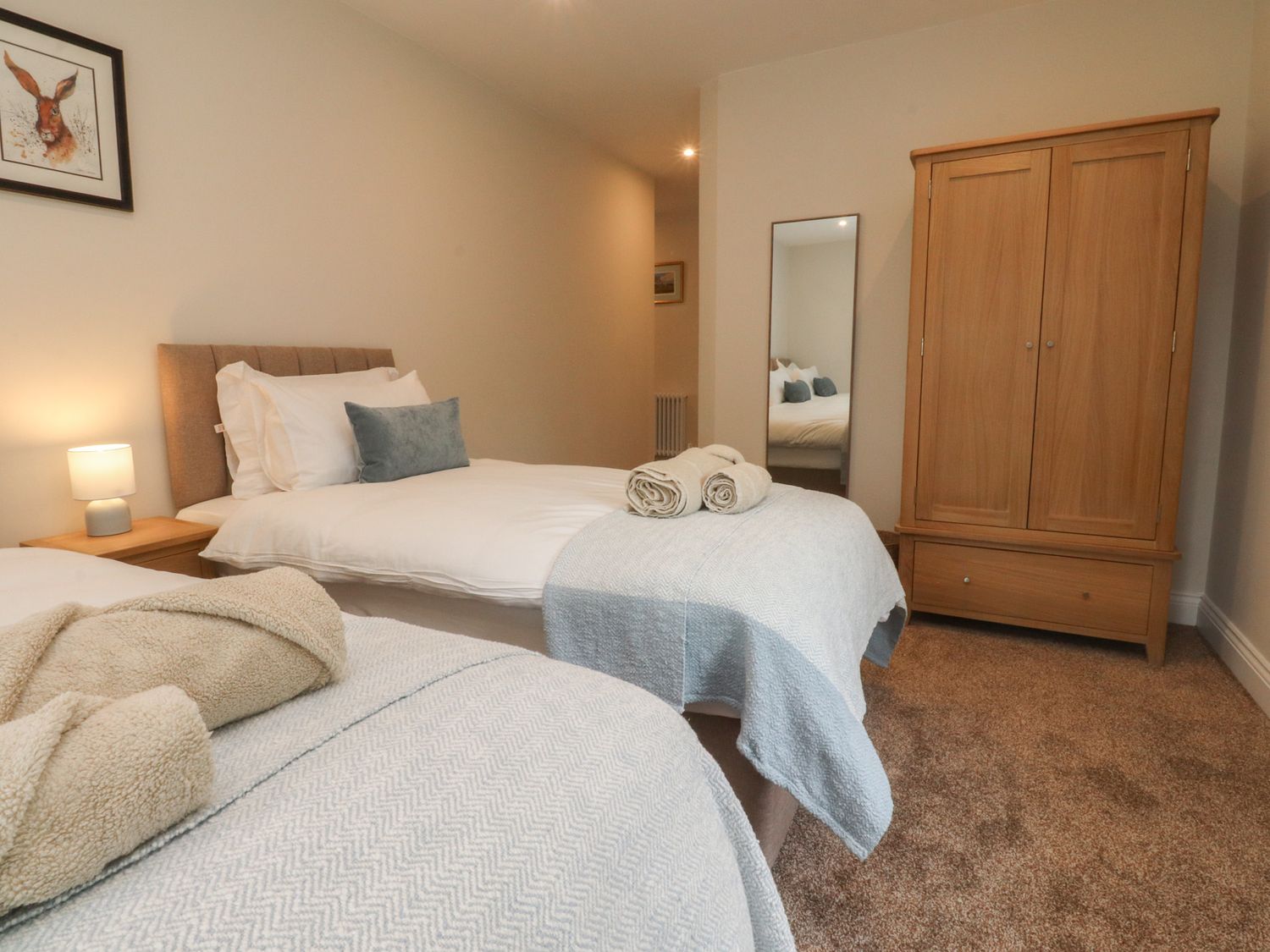 "Five bedrooms: 1 x king-size, 2 x king-size with en-suite with walk-in shower, basin, and heated towel rail and WC, 1 x twin, 1 x family room. Bathroom with freestanding bath, walk-in shower, double basin, heated towel rail. Shower room with walk-in shower, basin, heated towel rail, WC. Kitchen/diner. Utility. Dining room. Sitting room. Snug. Game room with Smart TV. Cloakroom with Basin and WC. Cinema room with Smart TV"