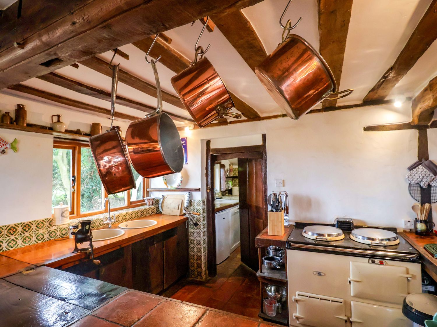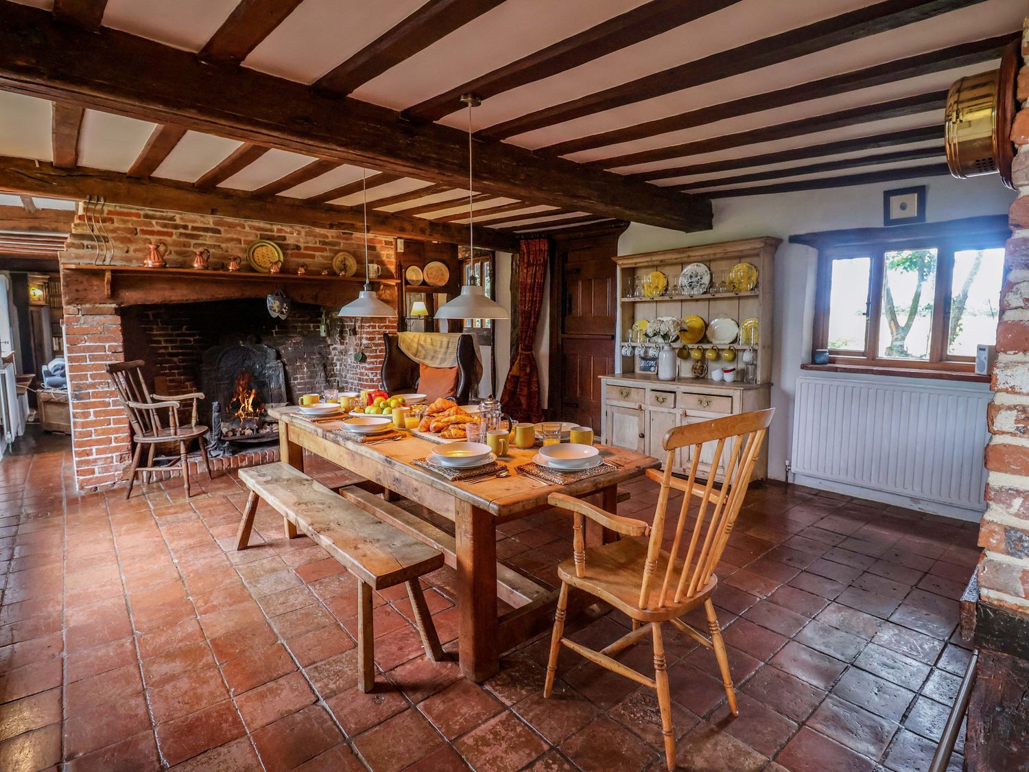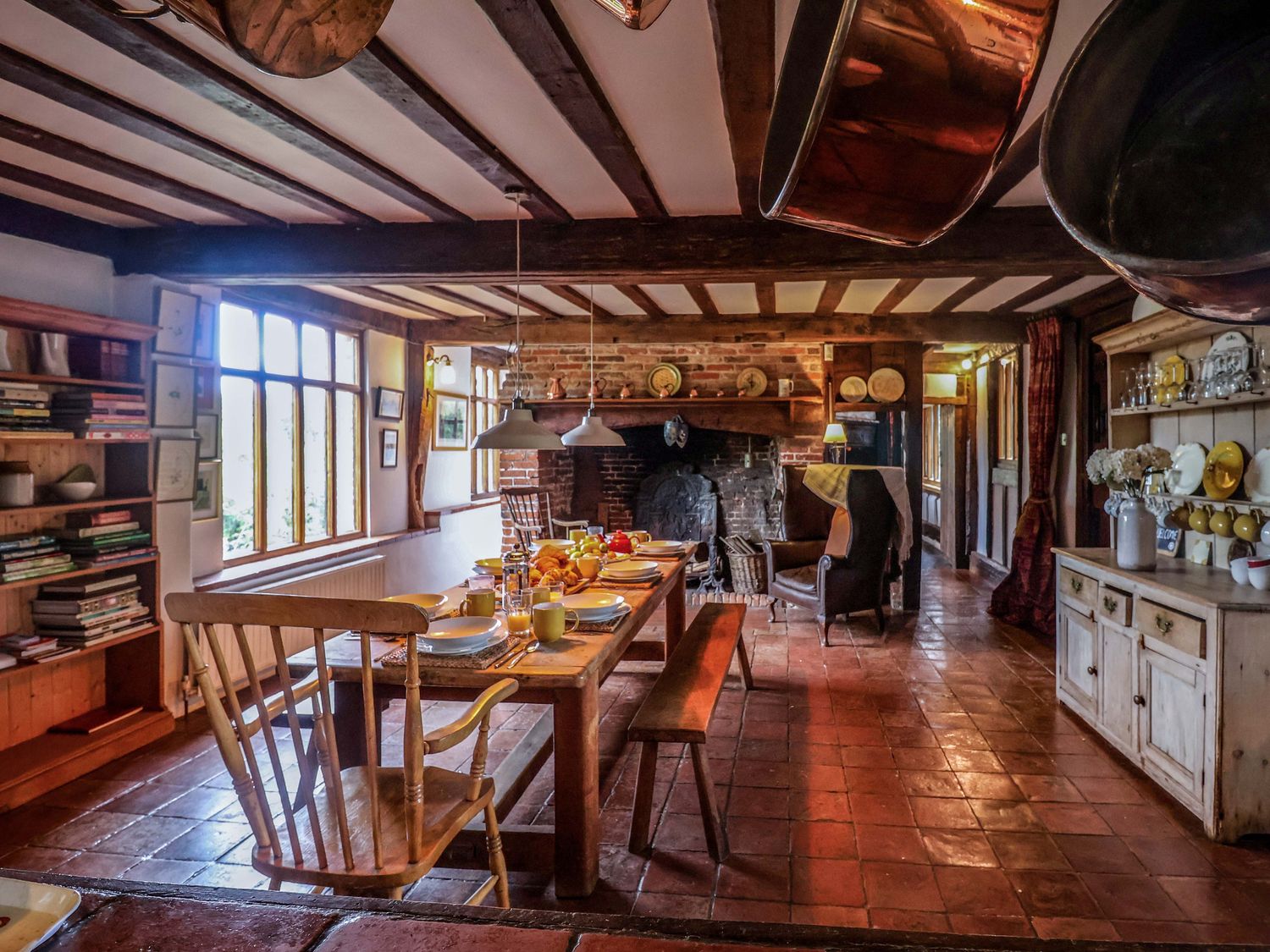 "Keirs Cottage, a cottage over three floors, consists of a kitchen with electric AGA cooker, oven, hob, microwave, fridge/freezer, dishwasher, and hairdryer, a utility with washing machine, tumble dryer, iron, and ironing board, a dining room with dining seating for eight and two woodburning inglenook fireplaces , and a sitting room with Smart TV, two sofas, and armchair. The bedrooms consist of a double, double with en-suite bathroom, and second-floor family room with four single beds. There is a bathroom with bath, basin, and WC. You'll find a shop 2.4 miles and pub in 1.9 miles. WiFi, fuel, power, starter pack for woodburning stoves, bed linen, and towels are included in the rent. Outside, there is a non-enclosed rear garden with patio, barbecue, lawn, and seating and ample off-road parking. One well-behaved pet welcome. Sorry, no smoking. Travel cot, highchair, and stairgate available on request. Visit Keirs Cottage for your next adventure. Note: Children need to be supervised due to four-hundred-year-old spiral staircase and two open fireplaces.Note: This property has a Good Housekeeping bond of 350 GBP. "