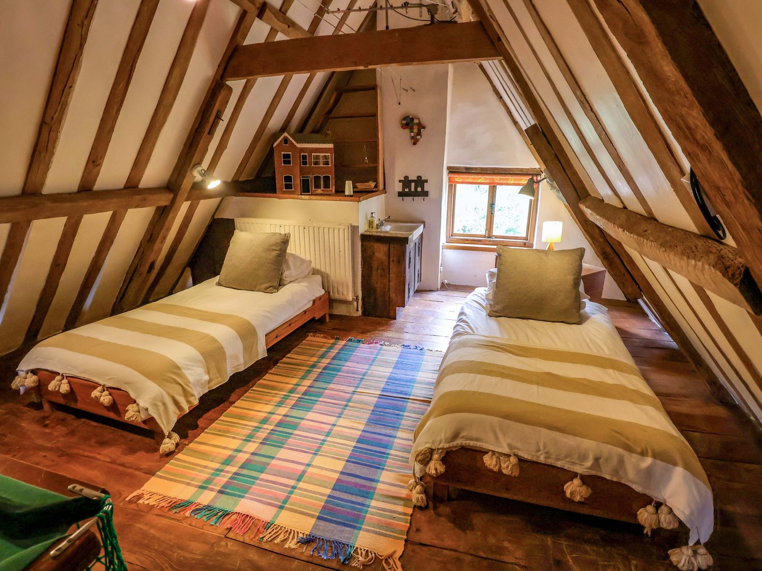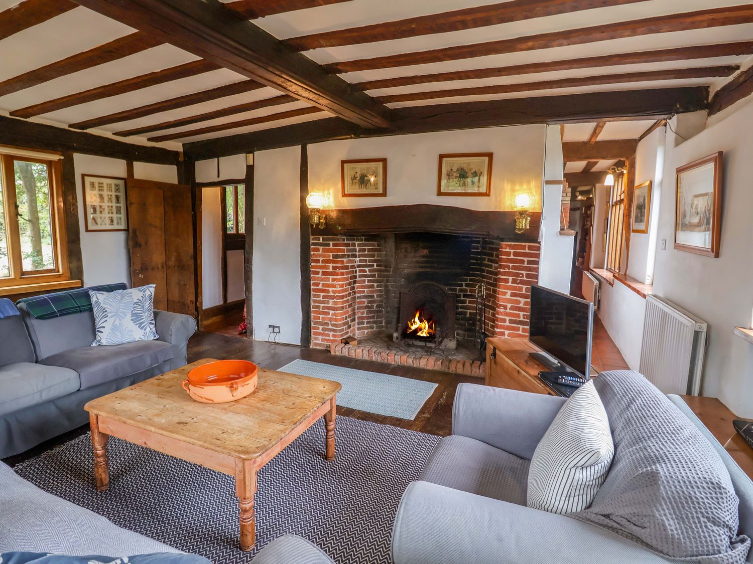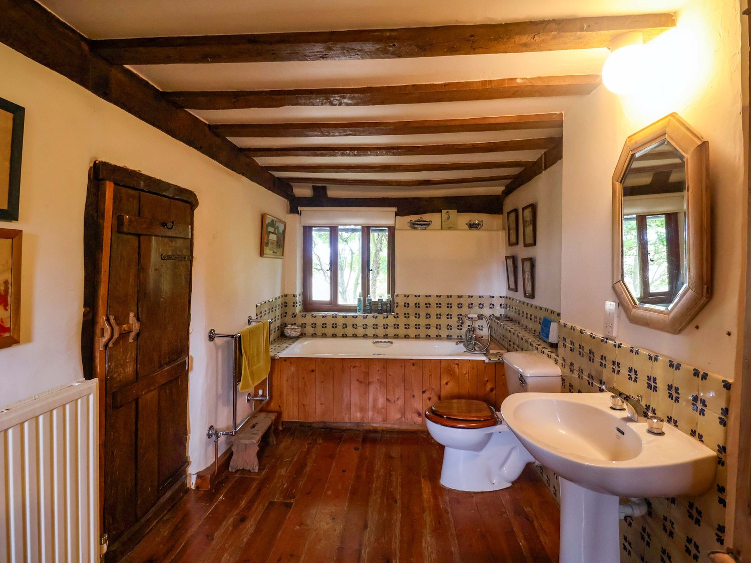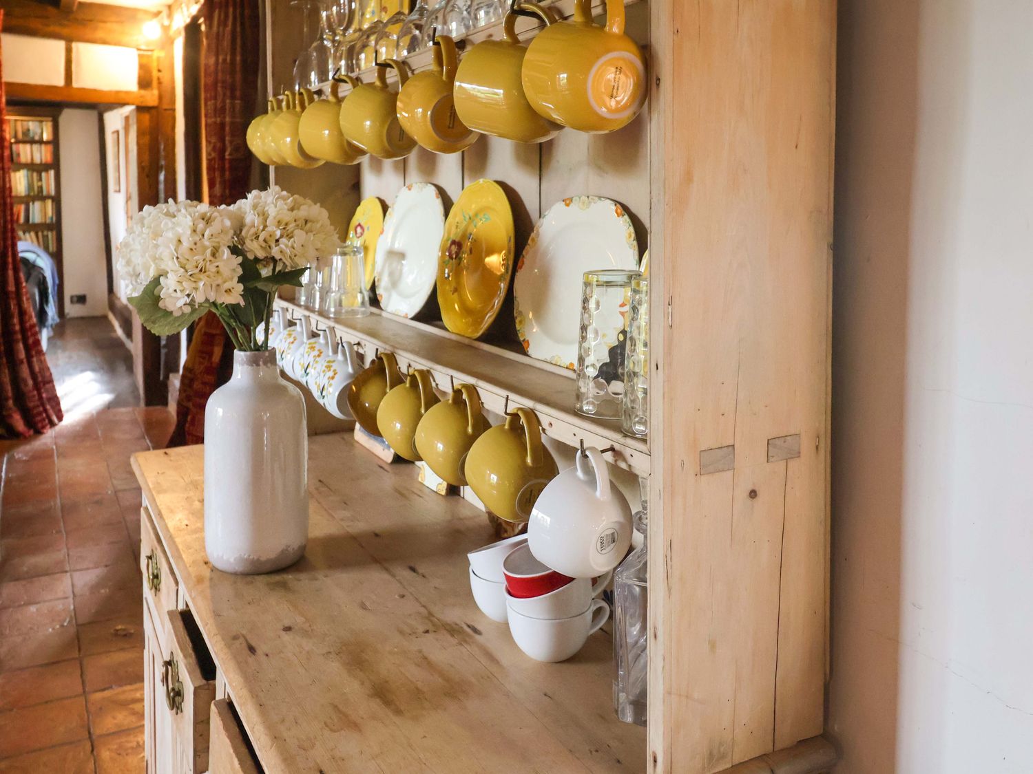 "Keirs Cottage, a cottage over three floors, consists of a kitchen with electric AGA cooker, oven, hob, microwave, fridge/freezer, dishwasher, and hairdryer, a utility with washing machine, tumble dryer, iron, and ironing board, a dining room with dining seating for eight and two woodburning inglenook fireplaces , and a sitting room with Smart TV, two sofas, and armchair. The bedrooms consist of a double, double with en-suite bathroom, and second-floor family room with four single beds. There is a bathroom with bath, basin, and WC. You'll find a shop 2.4 miles and pub in 1.9 miles. WiFi, fuel, power, starter pack for woodburning stoves, bed linen, and towels are included in the rent. Outside, there is a non-enclosed rear garden with patio, barbecue, lawn, and seating and ample off-road parking. One well-behaved pet welcome. Sorry, no smoking. Travel cot, highchair, and stairgate available on request. Visit Keirs Cottage for your next adventure. Note: Children need to be supervised due to four-hundred-year-old spiral staircase and two open fireplaces.Note: This property has a Good Housekeeping bond of 350 GBP. "
