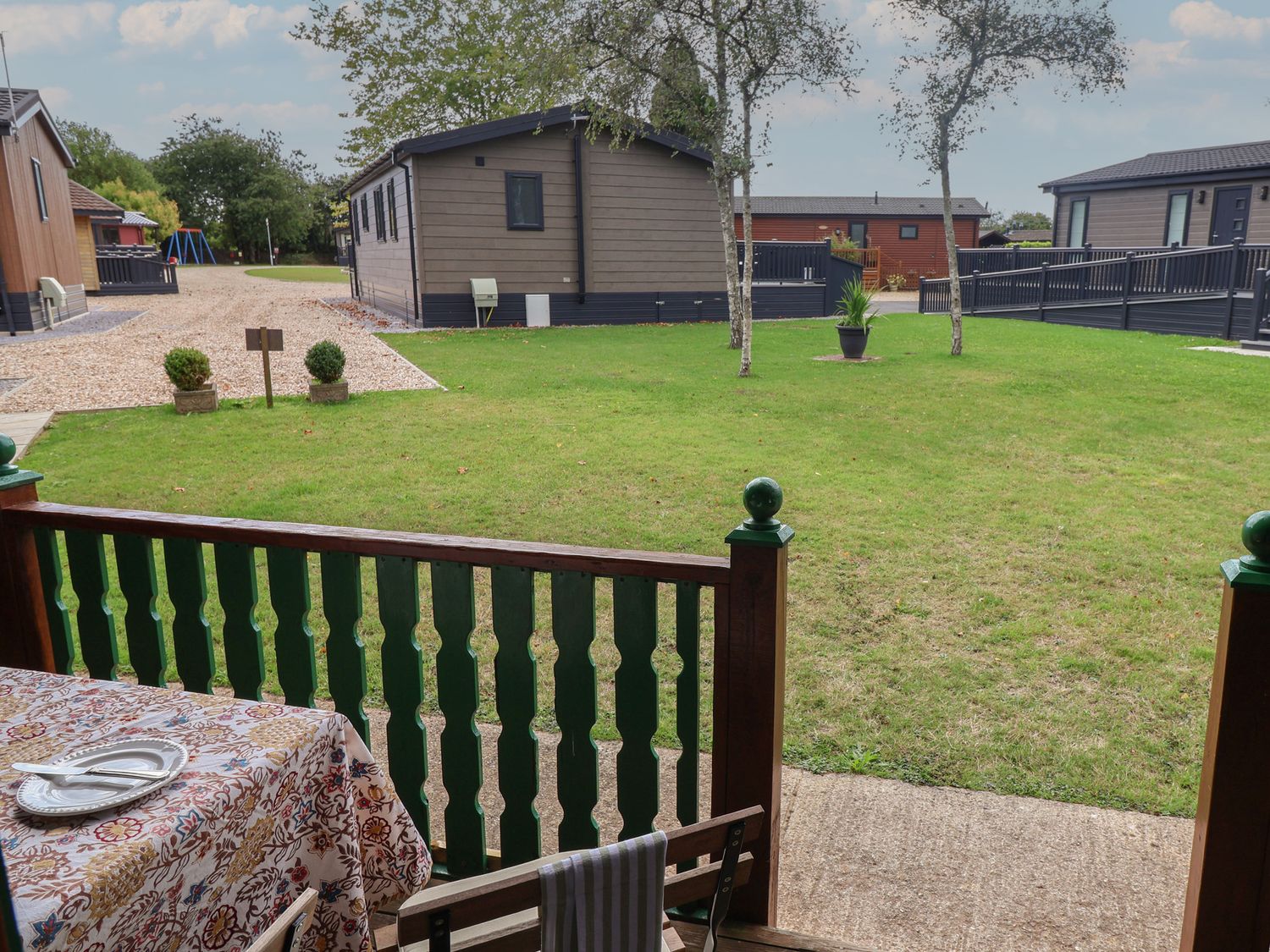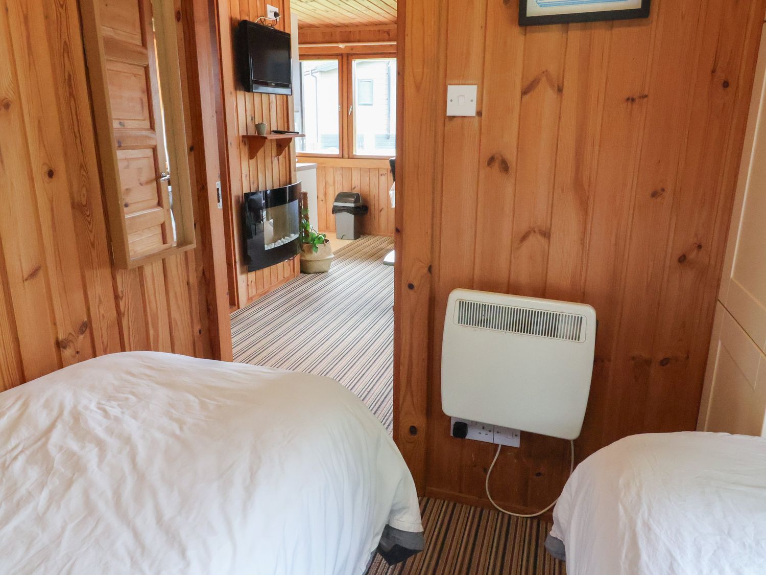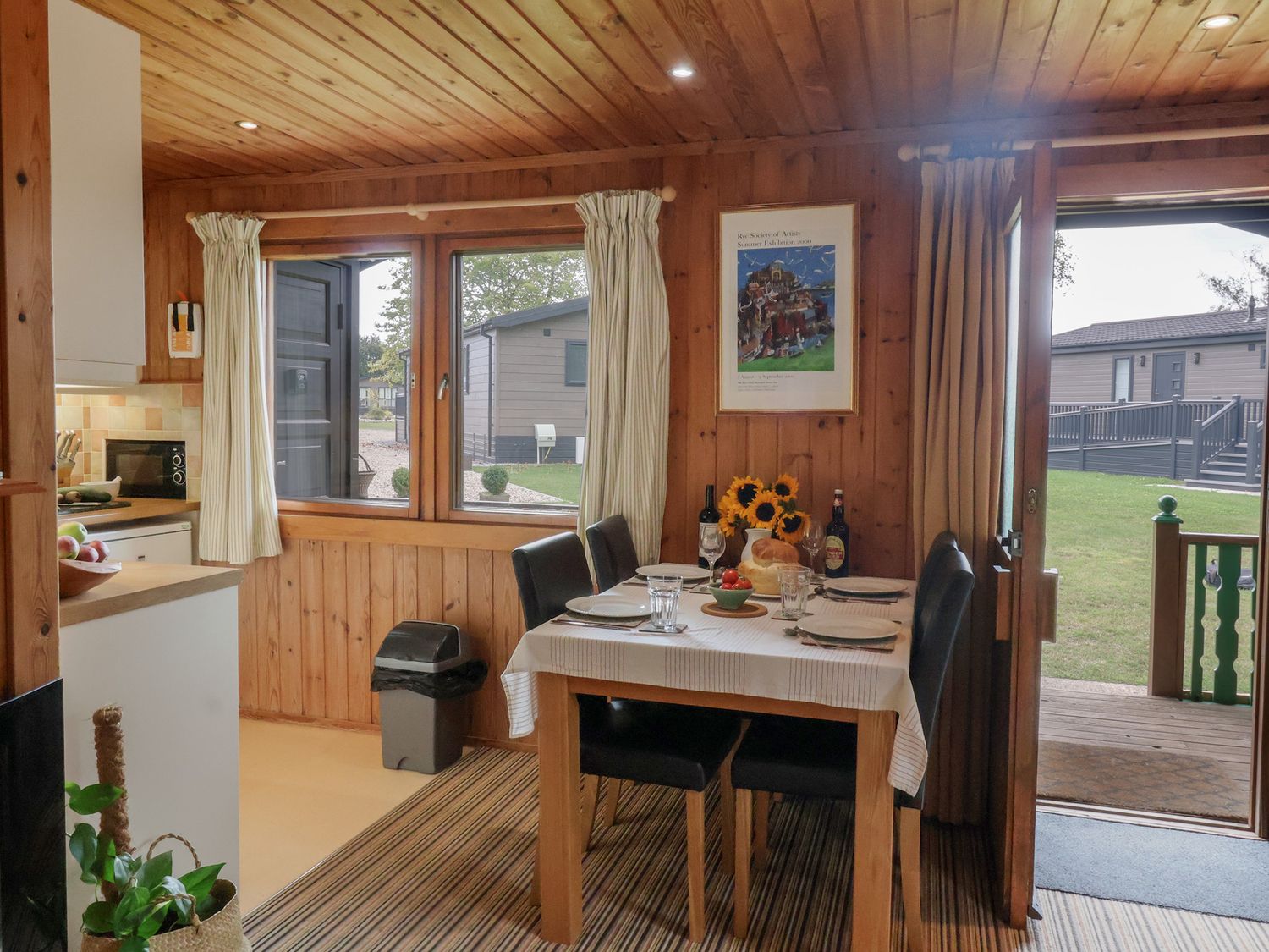 "Single-storey. Two bedrooms: 1 x double, 1 x twin. Shower-room with walk-in shower, basin and WC. Open-plan living area with kitchen, dining area and sitting area"
