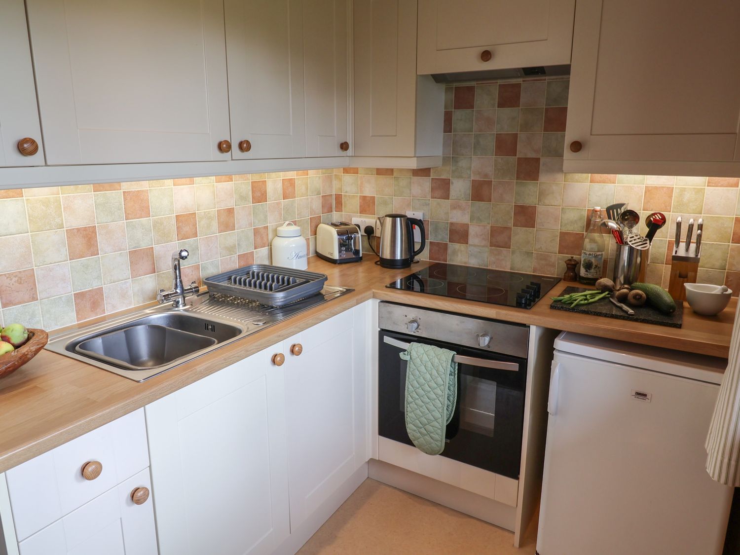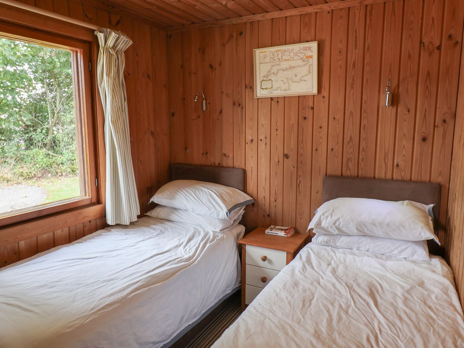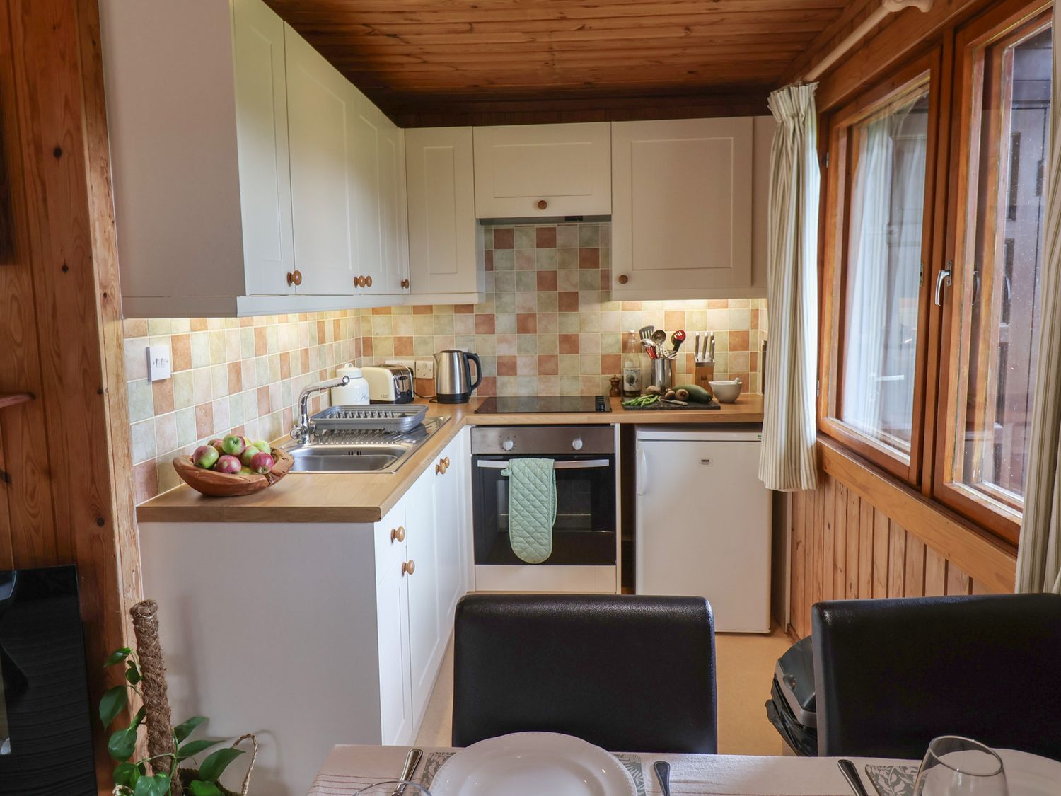 "Single-storey. Two bedrooms: 1 x double, 1 x twin. Shower-room with walk-in shower, basin and WC. Open-plan living area with kitchen, dining area and sitting area"