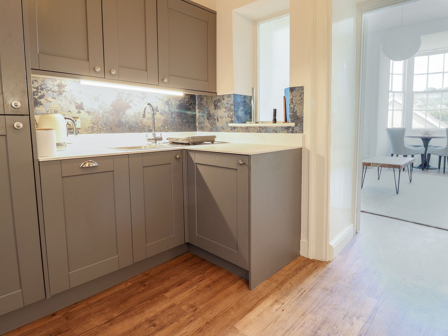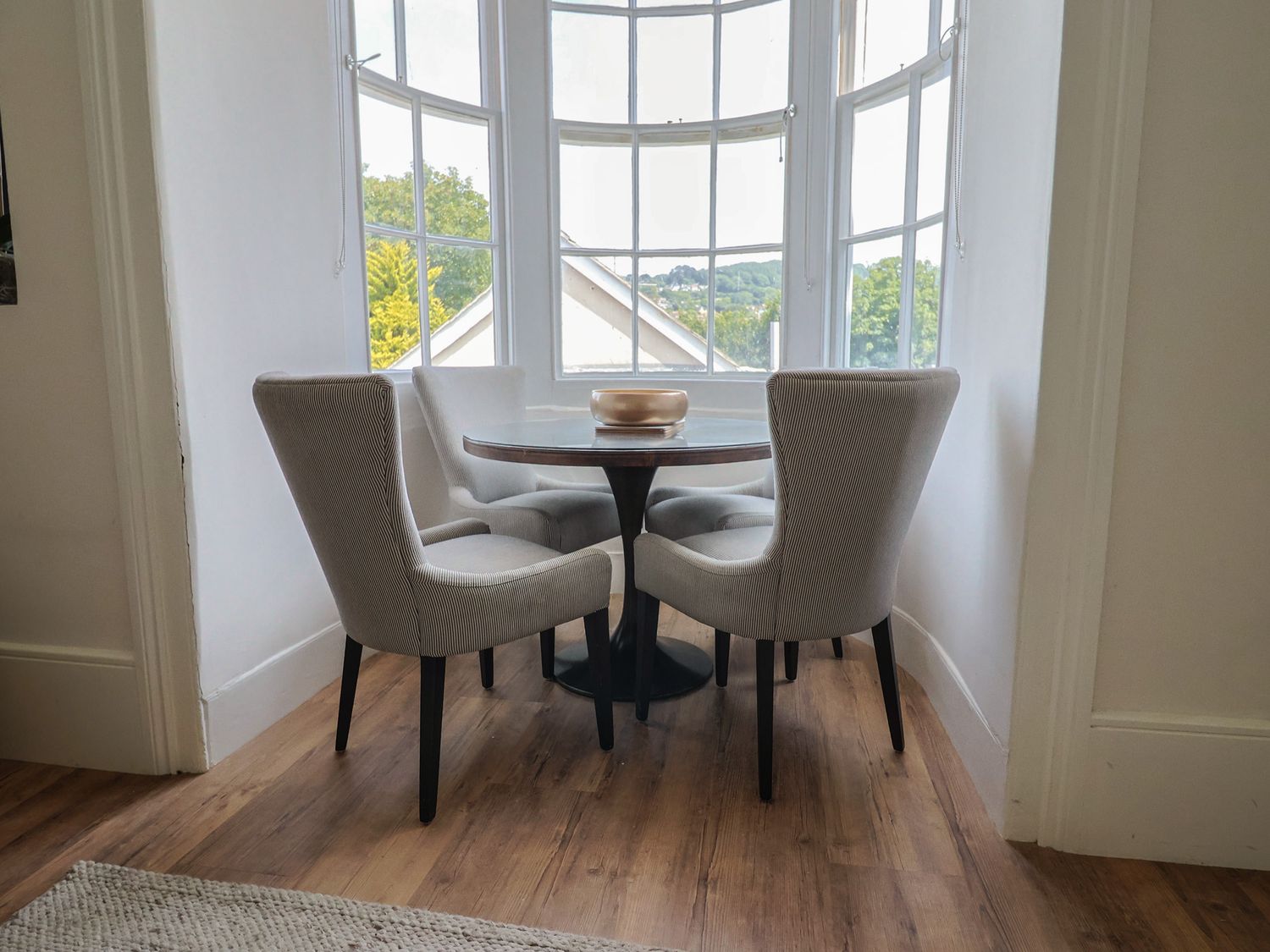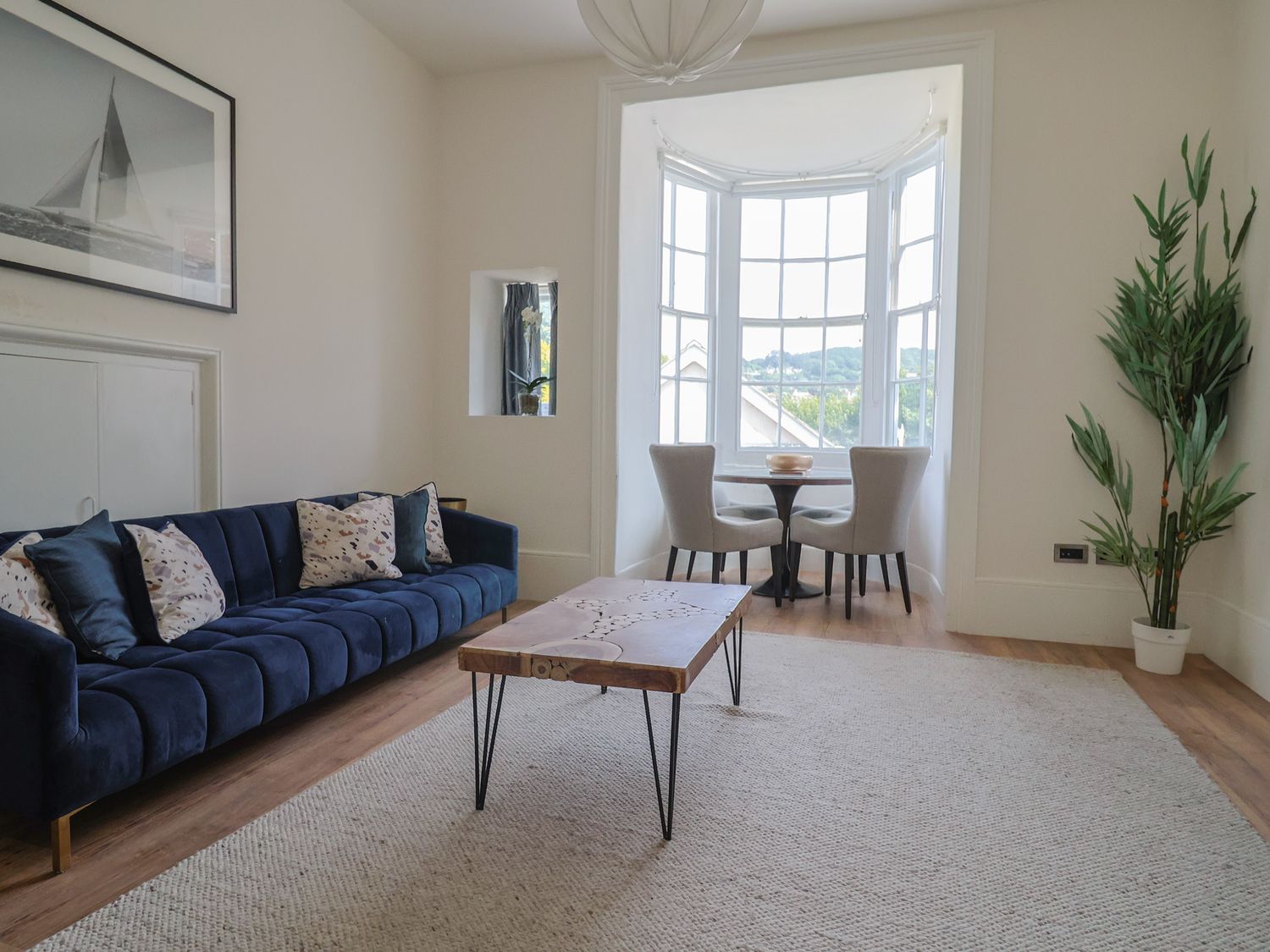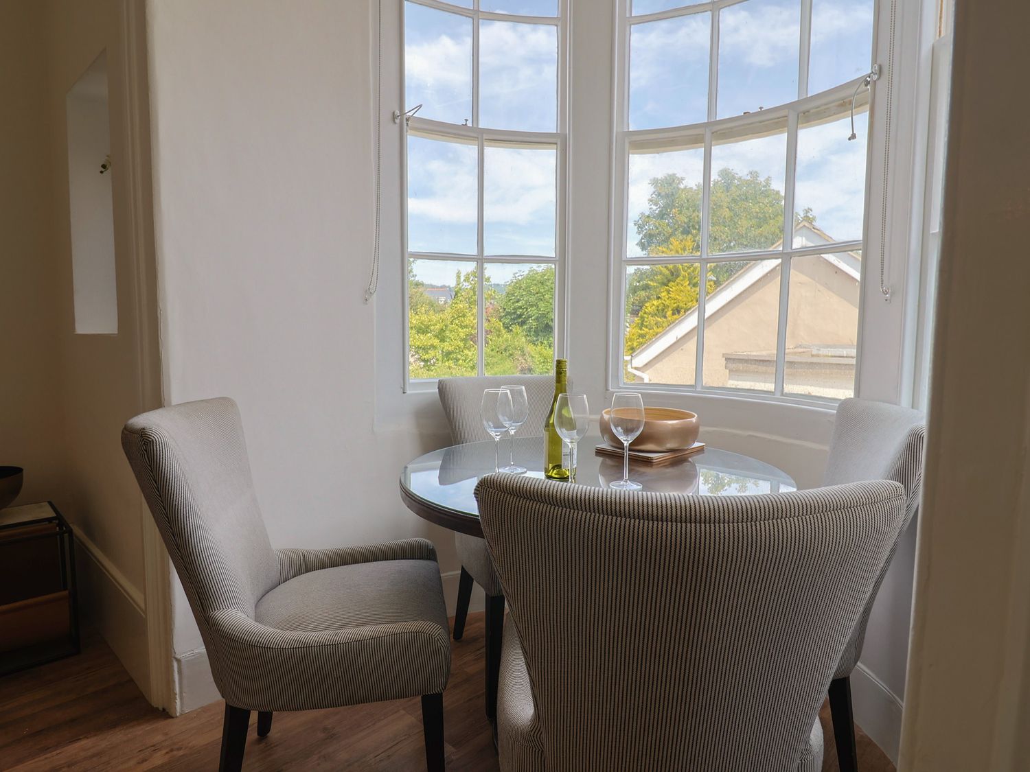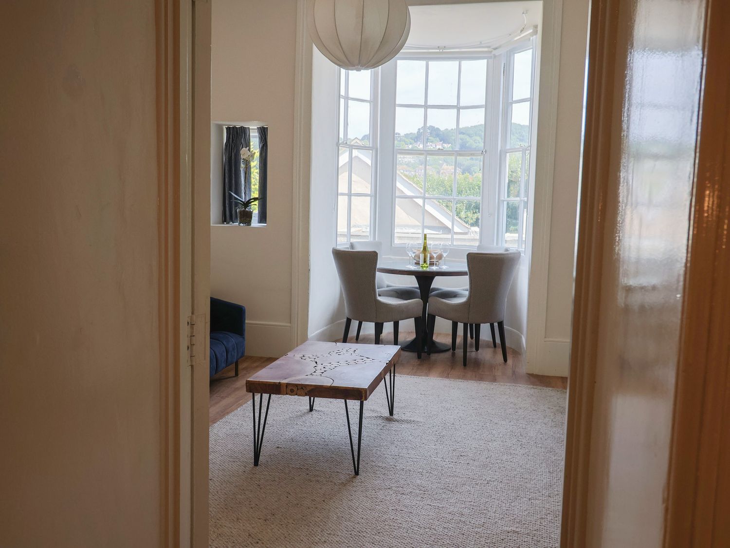 "Saltwind, a first-floor apartment, consists of an open-plan living space with electric oven and hob, microwave, fridge/freezer, washing machine, dishwasher, dining seating for four people. The bedrooms consist of a super-king-size with en-suite shower room and a twin (zip/link, can be super-king-size), serviced by a bathroom. Outside, there is a shared enclosed rear garden with lawn and furniture. One well-behaved pet welcome. Sorry, no smoking. You'll find a shop, pub, and beach in 0.1 miles, and a river in 0.8 miles. Fuel, power, bed linen, and towels inc. in rent. Saltwind is a lovely base for a seaside escape in Dorset. Note: This property currently offers Wi-Fi via a 5G service, which can be intermittent and result in a limited service and periods of unavailability. "