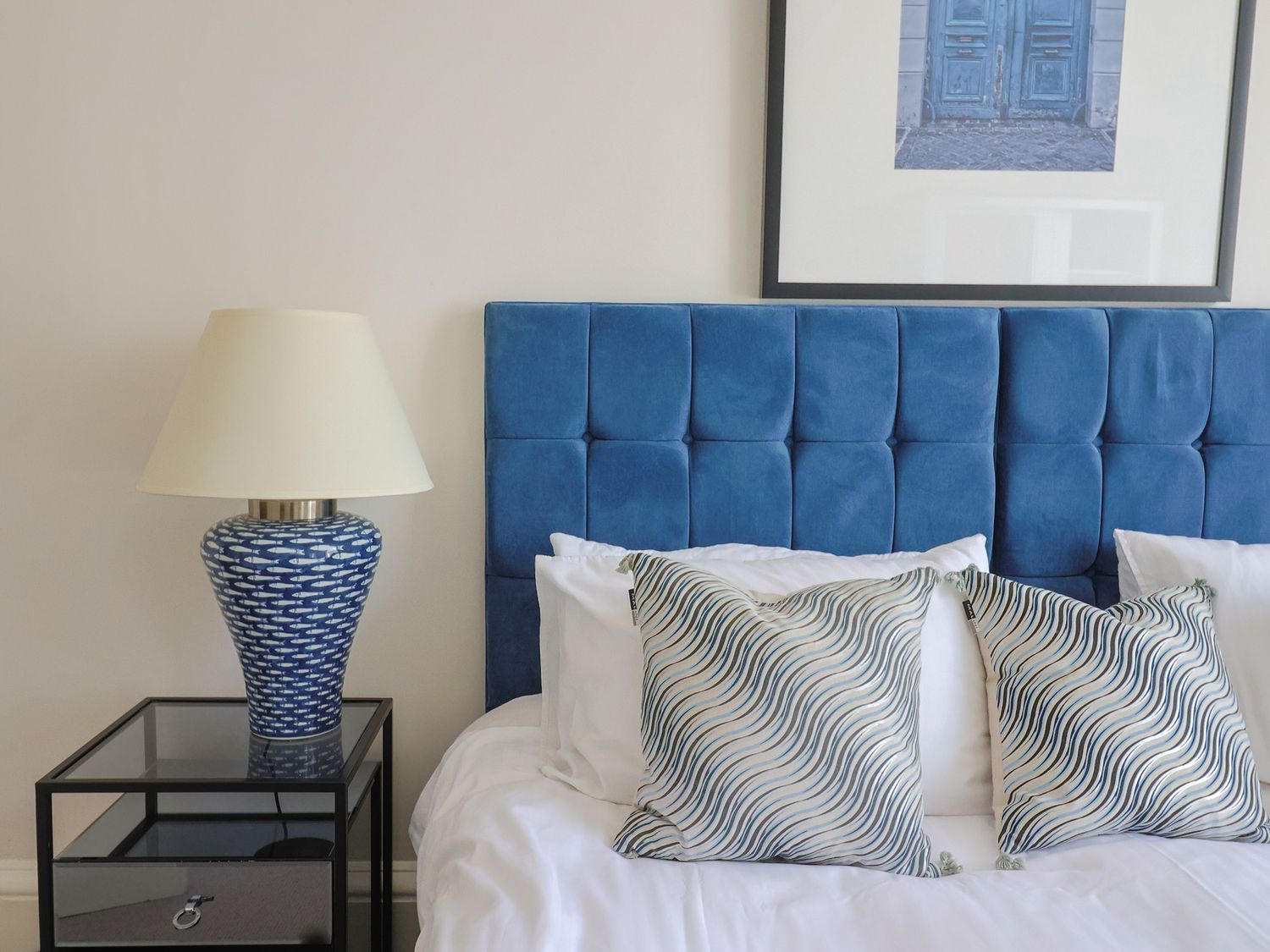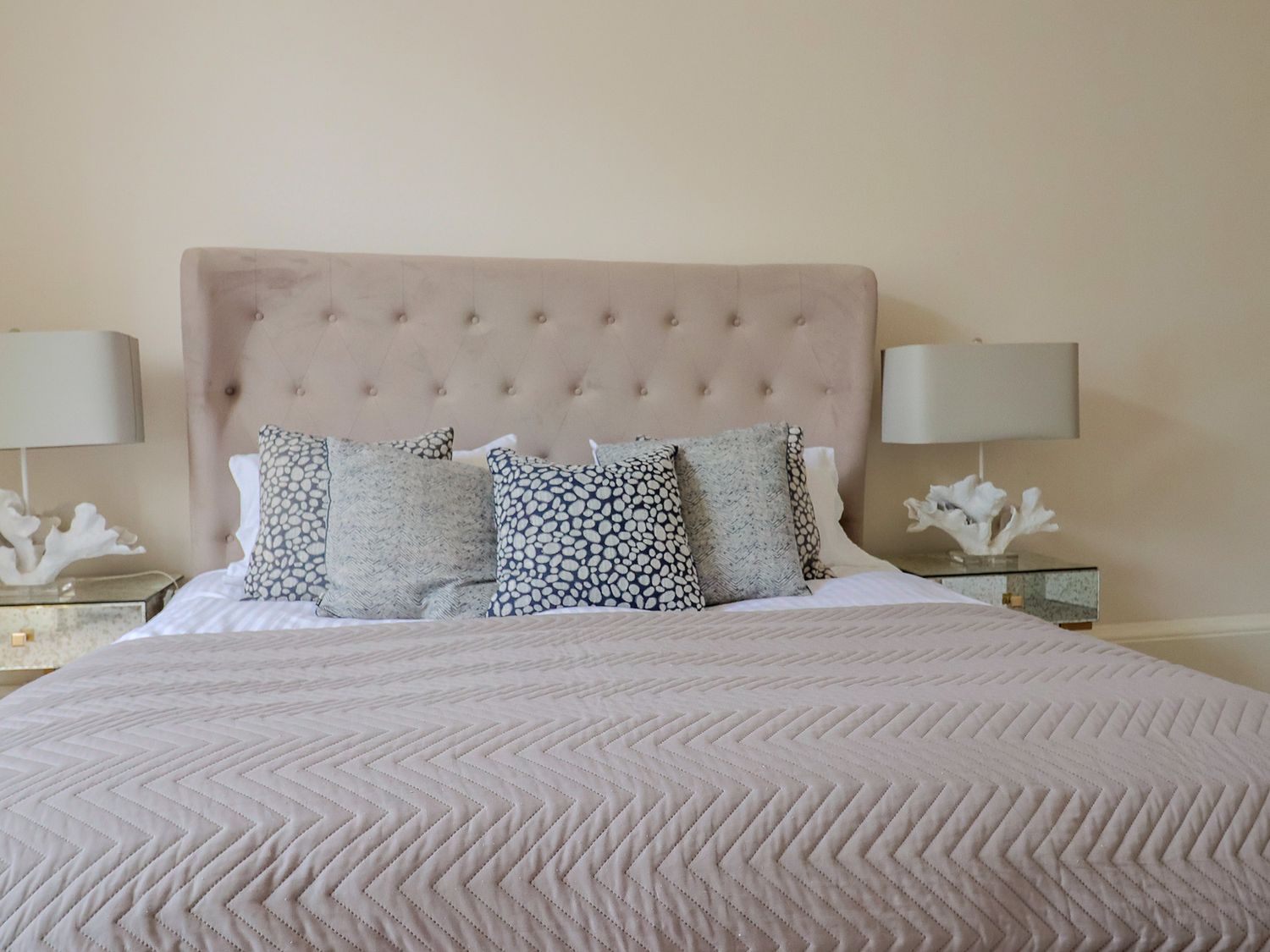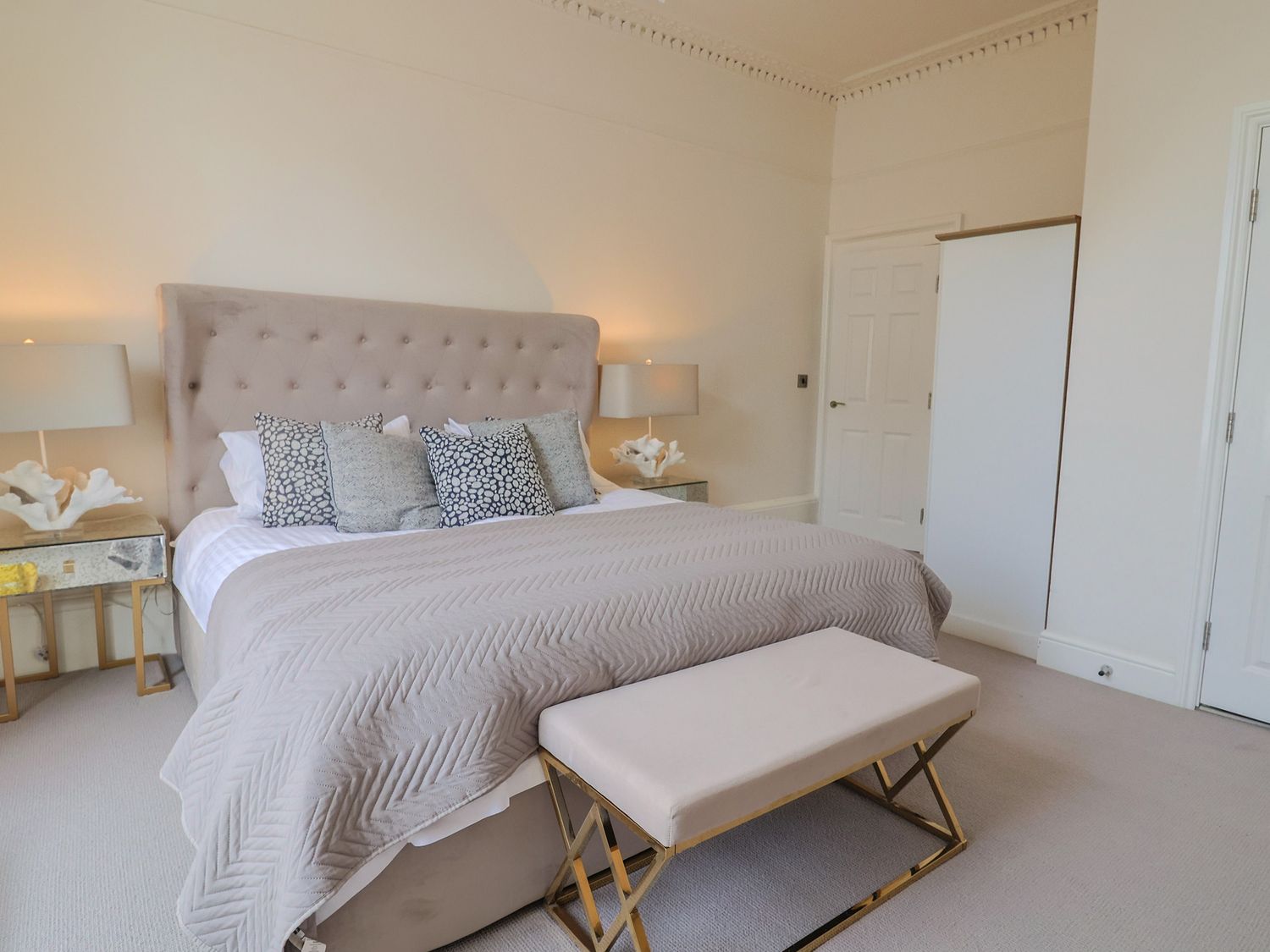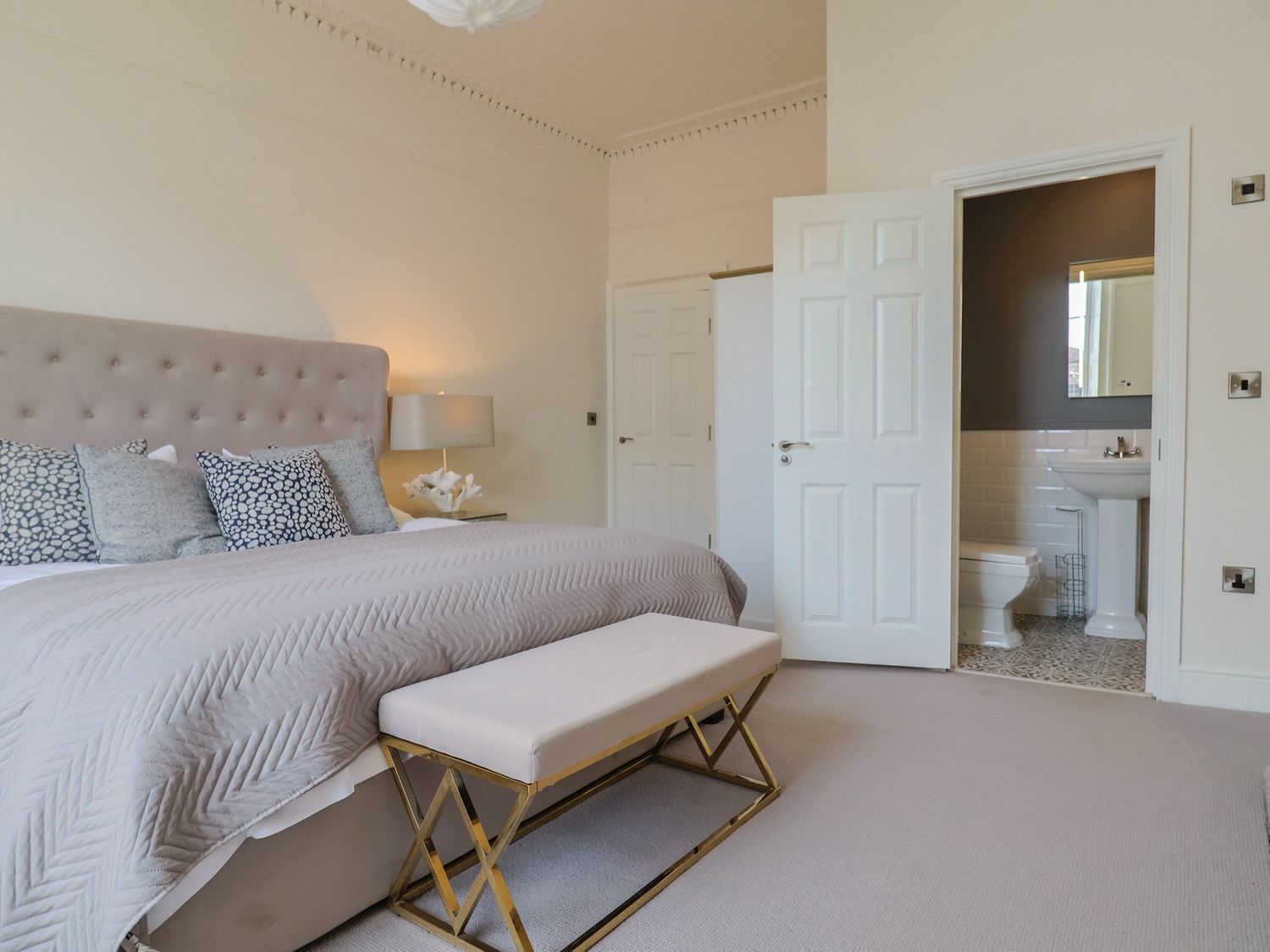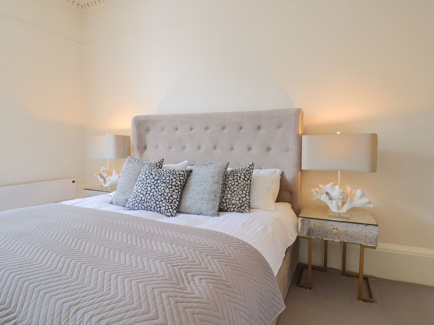 "First floor apartment. 1 x super king bed with en-suite walk-in shower, basin, heated towel rail, and WC. 1 x twin (zip/link beds which can be made up as a super-king - please specify if required at time of booking) Bathroom with bath & shower over, wash basin, WC and heated towel rail. Open-plan living space with lounge, dining area and kitchen"