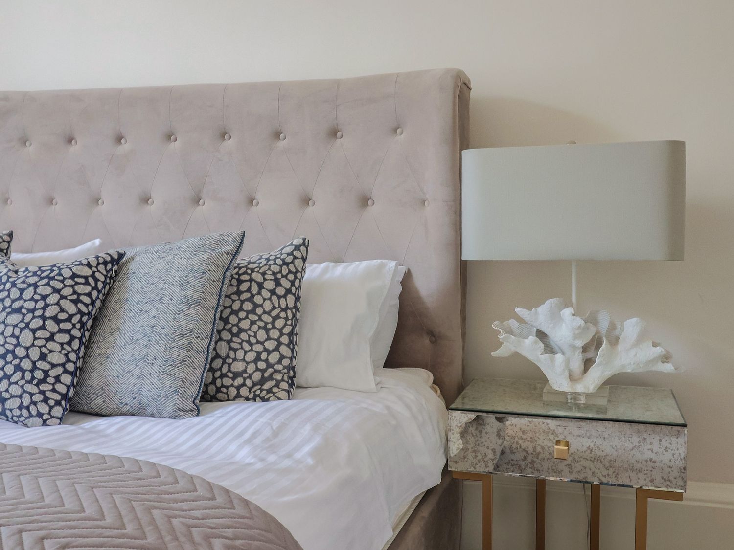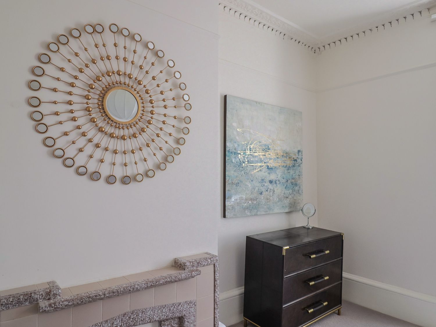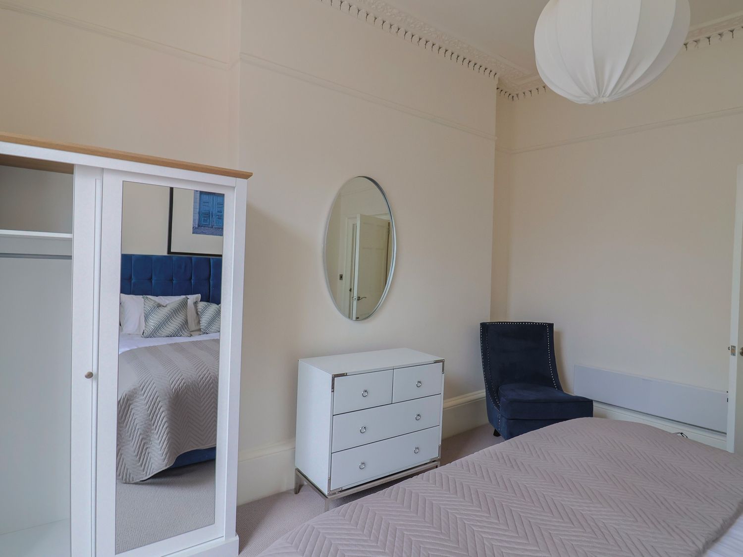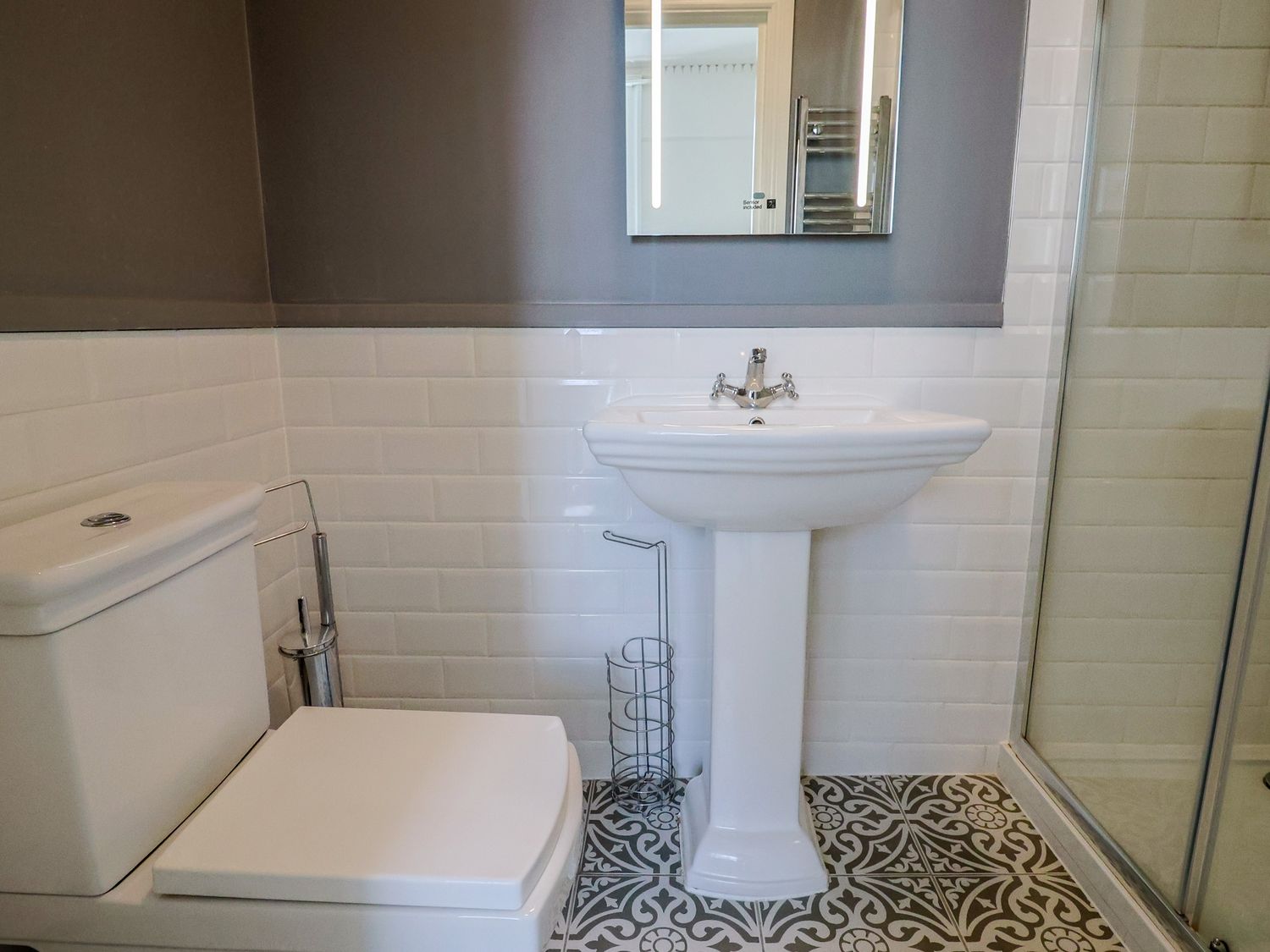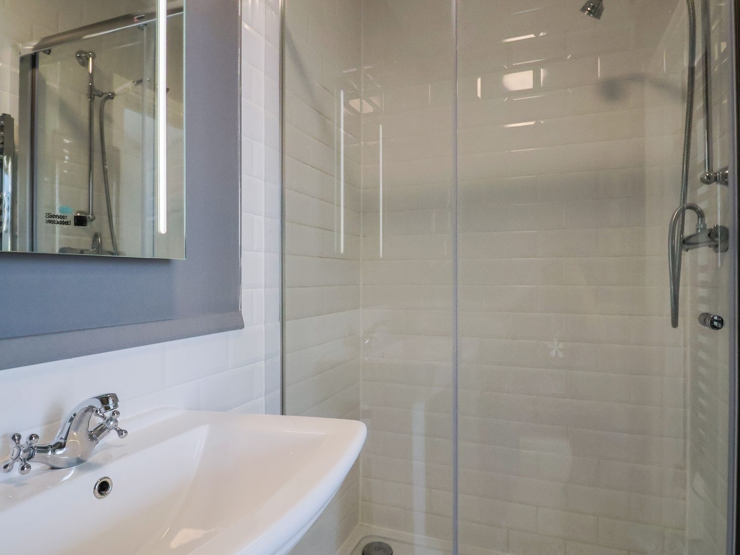 "First floor apartment. 1 x super king bed with en-suite walk-in shower, basin, heated towel rail, and WC. 1 x twin (zip/link beds which can be made up as a super-king - please specify if required at time of booking) Bathroom with bath & shower over, wash basin, WC and heated towel rail. Open-plan living space with lounge, dining area and kitchen"