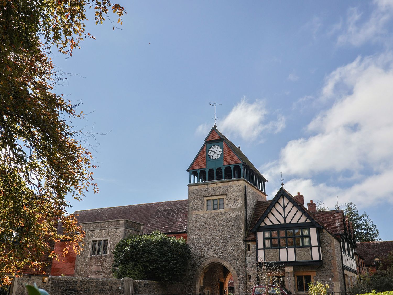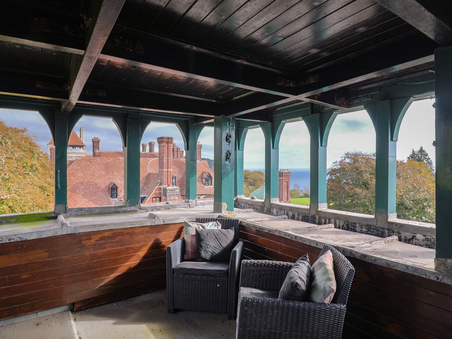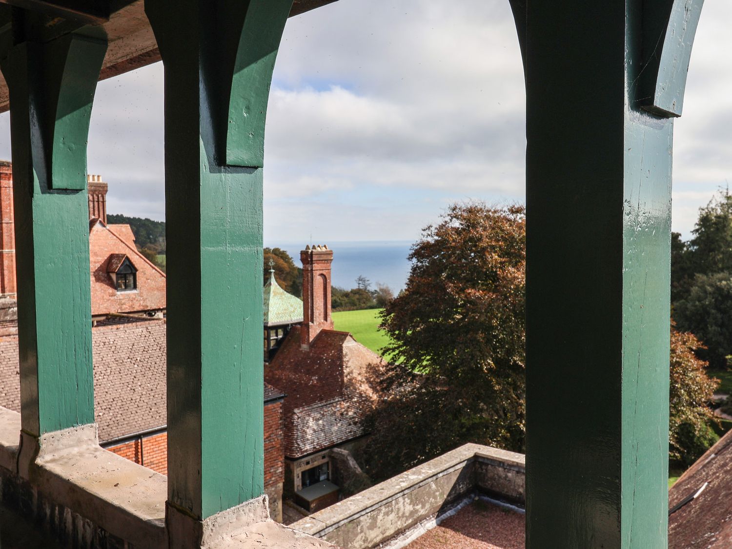 "The Clock Tower is a one-bedroom property located within the Rousdon Estate, a private coastal estate situated between Lyme Regis and Seaton. The building is Grade II Listed and has been converted from the estateÔÇÖs original timepiece into a three-storey residence. Access to the property is via a private entrance leading to a stone spiral staircase, which connects all floors. The first floor comprises an open-plan living area with a sitting space, wall-mounted Smart TV, dining area, and a fully equipped kitchen. Kitchen appliances include an electric oven, induction hob, microwave, fridge, freezer, dishwasher, and washing machine. The second floor features an open-plan bedroom with a king-size bed and vaulted ceilings. The en-suite shower room includes a walk-in rainfall shower and a stone basin. The bedroom offers views across the estate and partial sea views. The top floor leads to a covered rooftop terrace located beneath the clock tower. The terrace is furnished with a table and chairs and provides panoramic views over Lyme Bay, the Axe Valley, and surrounding countryside. Heating is provided via electric radiators. Amenities include WiFi, Smart TV, bed linen, towels, fuel, and power. One well-behaved pet is welcome. Smoking is not permitted. Guests have access to 350 acres of private estate grounds, including woodland paths and a secluded beach at Charton Bay. The property is approximately 3.5 miles from Lyme Regis, which offers shops, restaurants, and access to the Jurassic Coast. Note: this property has a Good Housekeeping Bond of 150GBP"