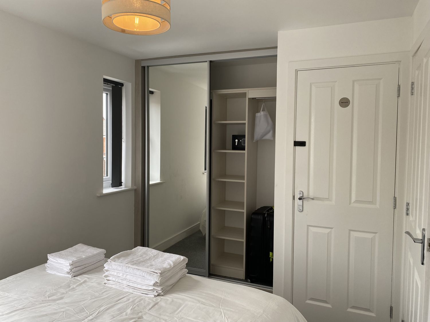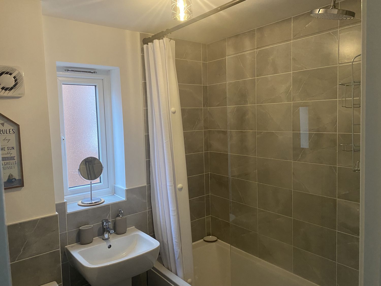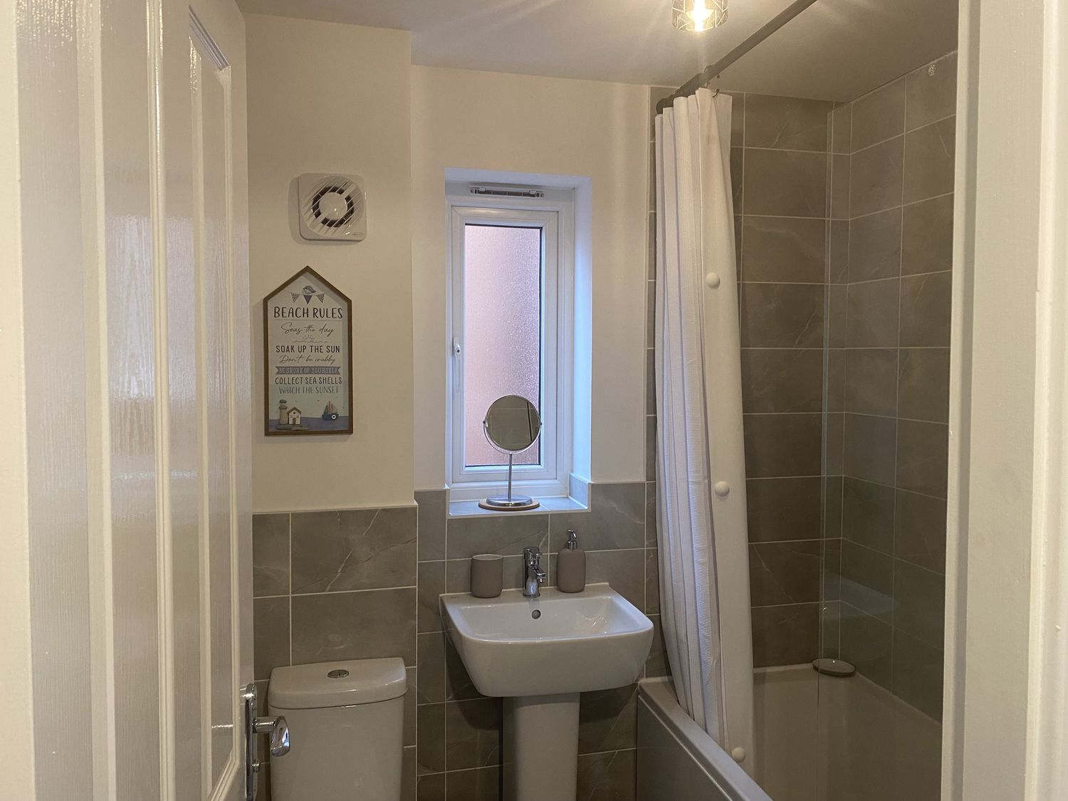 Bathroom with WC, hand basin, bath, rain head shower over bath. 55ÔÇØ Sky glass TV, high speed WiFi. Hive Central heating with simple duel zone thermostat temperature control. Kitchen/Diner/High chair. Electric oven, gas hob. Fridge freezer. Integrated washing machine. Gas and electricity inc in rent. Bed linen and towels inc in rent. 7Kw EV car charger inc. in rent (guests to use own charge lead). 1 off street parking bay directly in front of the property with an outdoor security camera overlooking it, and a visitors parking bay directly next to it. Gated secure side access to an enclosed rear garden with patio area, lawn, and alarmed garden shed for guest E bike storage. Outdoor furniture for guest usage"