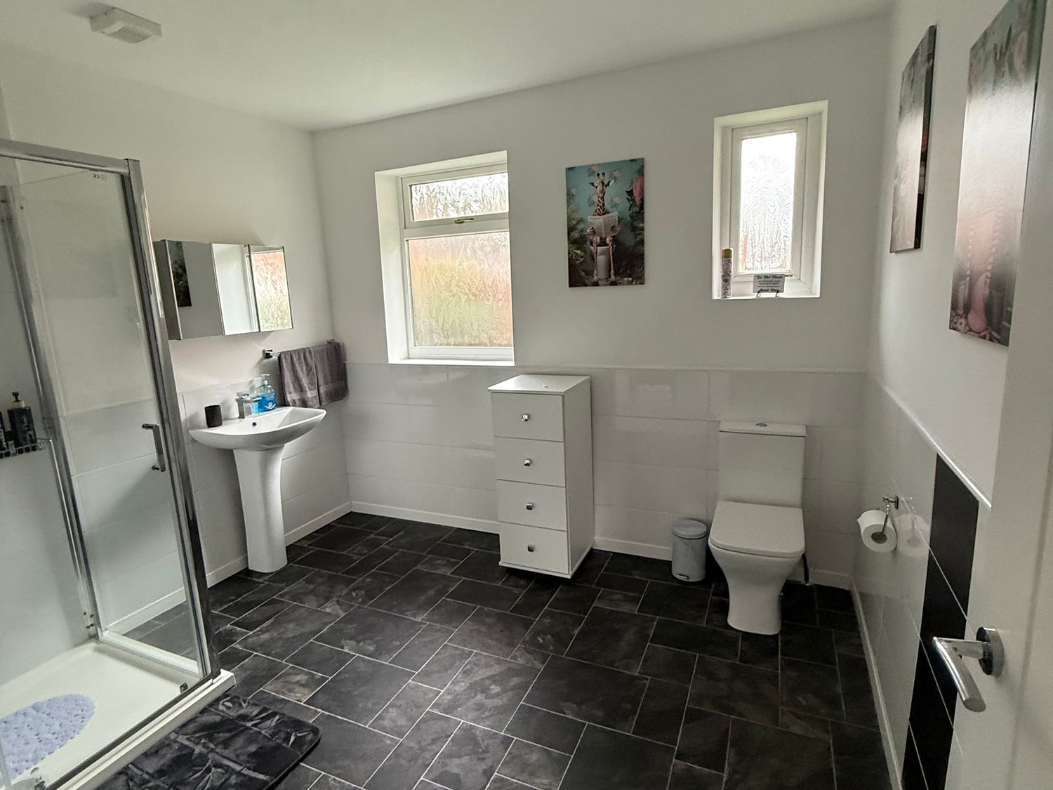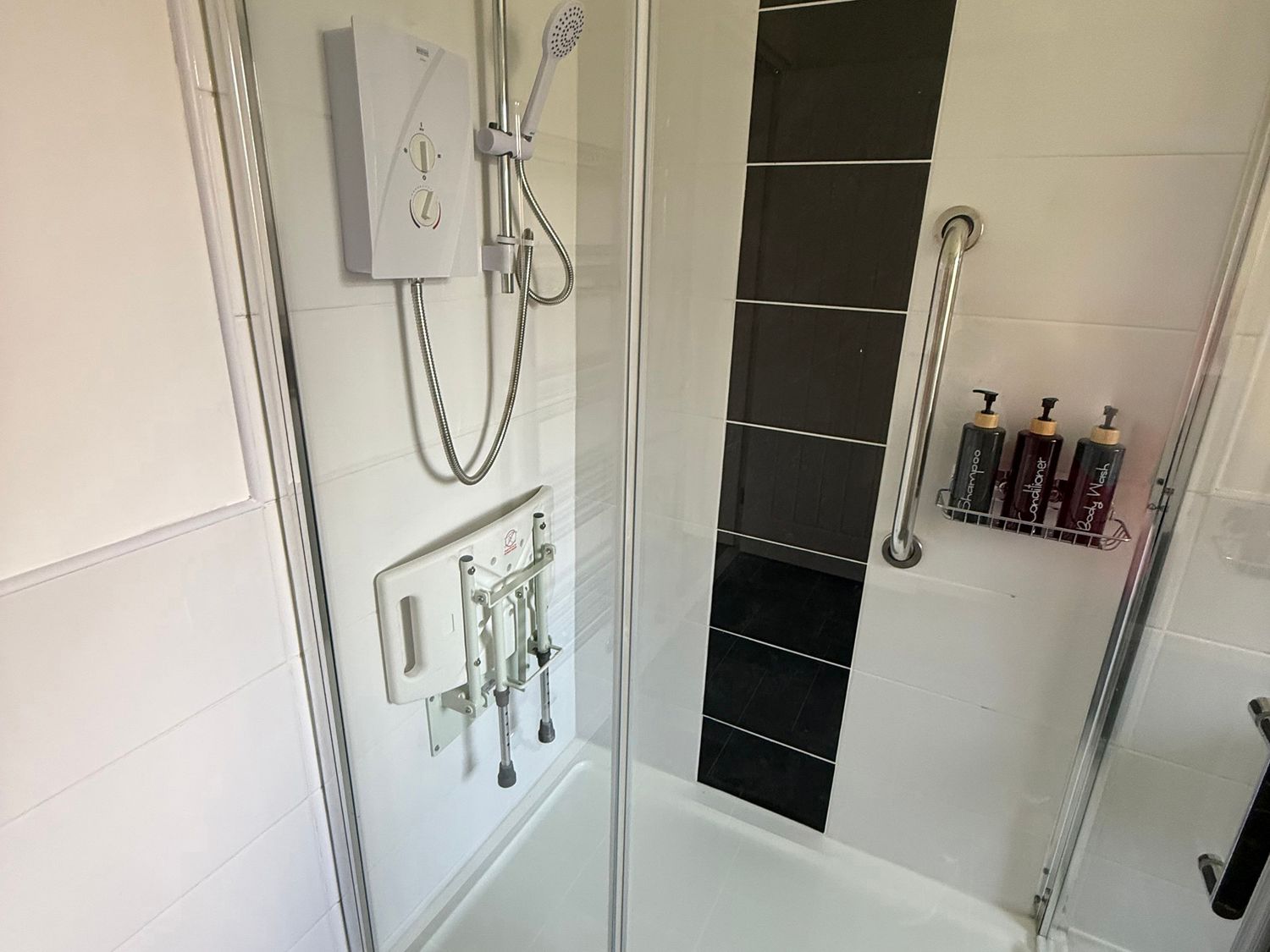 "Single-storey. Two bedrooms: 1 x double, 1 x twin. Shower room with walk-in shower, basin, heated towel rail and WC. Kitchen/diner. Sitting area with electric fire