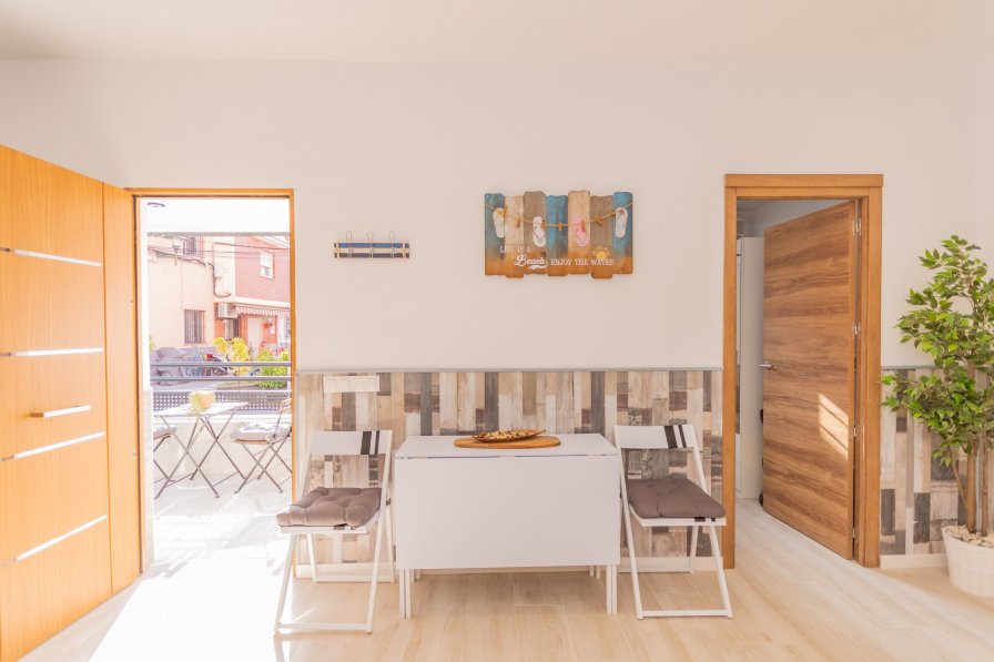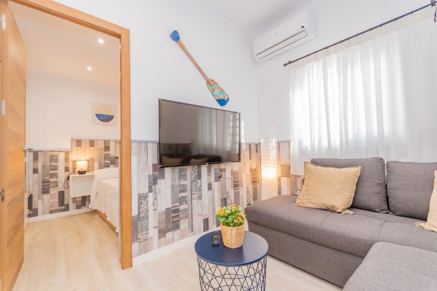Located in the famous Malaga zone El Palo, this cozy and recently renovated accommodation offers you everything you need to enjoy your holidays. Beach, tranquility and with all the necessary services you can imagine. Its location is on the corner along with a pedestrian street, so you have assured the tranquility of the night, even so, modern windows and closures have been used in the recent reform that will allow you to have regulated temperature and external noise. The beach is less than five minutes walk away, it has a large extension of beaches where you can enjoy your security space without any problem. These beaches are equipped for your enjoyment, so you will have a large promenade along with leisure and restaurant bars and municipal facilities such as toilets, parks or play areas on the beach itself. Being on the corner, the accommodation has a useful porch where you can enjoy a good book or a quiet tea. At its entrance, you will have a spacious living room with a very bright open-plan kitchen thanks to the fact that the architects have respected the natural light inputs that the house originally had. This provides plenty of light throughout the room and the large window in the living room will provide you with the fresh atmosphere of the coast without having to use the air conditioning, an element that is available in all rooms of the accommodation if you need to use it. In addition to being a dining room, it will have a comfortable double sofa bed to complete the 5th and 6th place of the accommodation, these places carry a supplement on the rate. The dining table is expanded so that it can accommodate all diners, the proximity to the kitchen will allow you to have everything at hand. The accommodation offers you a WIFI connection, which will allow you to telework or watch your favorite series. The two bedrooms that the accommodation has offer two double beds. They are bright and cozy and with space to store your luggage in a comfortable and orderly manner. These two bedrooms have air conditioning. The accommodation has a bathroom with a shower tray. The house in Malaga has 2 bedroom (s) and capacity for 6 people. Comfortable apartment of 51 m² and very bright. It is located 100 m from the sandy beach "Playa El Palo", 200 m from the restaurant "Various restaurants", 1 km from the supermarket "Mercadona", 2 km from the golf course "Real Club de Golf El Candado", 6 km from the city "Malaga Center", 10 km from the train station "Malaga María Zambrano Station", 10 km from the bus station "Malaga Bus Station", 15 km from the airport "Malaga International Airport, AGP" , 20 km from the natural park "Parque Natural Montes de Málaga", 22 km from the amusement park "Tivoli World, Benalmádena", 32 km from the aquatic park "Aquamijas", 140 km from the ski slope "Sierra Nevada Granada, Andalucía" and it is located in an ideal area for families and in the urban area. It has garden furniture, terrace, iron, internet access (wifi), hairdryer, heat pump heating, air conditioning throughout the house, 1 fan, 1 TV. The vitroceramic open plan kitchen is equipped with a fridge, microwave, oven, freezer, washing machine, dishwasher, dishes / cutlery, kitchen utensils, coffee maker, toaster and juicer.