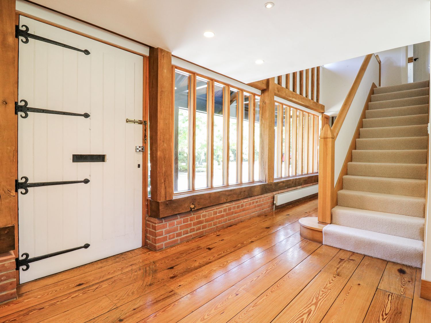 "Headland Barn consists of a kitchen/breakfast room with oven, hob, microwave, fridge/freezer, kettle, toaster, dishwasher, and a seating island, leading to a vaulted garden room, a formal dining room, an informal dining area, a sitting room with a dramatic vaulted ceiling, exposed beams, open fireplace and balcony, and a snug warmed by the fire. Practical spaces include a pantry, utility, boot room, cloakroom and a gym in the garage. The bedrooms comprise four super-king-size rooms: one on the ground floor with en-suite, one upstairs with en-suite, and two further super-king-size rooms sharing a Jack-and-Jill bathroom, with one available as a twin on request. Fuel, power, bed linen, towels, Smart TV, WiFi and broadband are all included in the price. Outside, the property boasts 1.2 acres of grounds, including an enclosed garden, lawns, patio, furniture, barbecue, and an outdoor socket for EV use (not a charging unit). Within walking distance, you will find shops, the town centre and pubs, with The Hoop in Stock and the Galvin Green Man nearby. Headland Barn welcomes well-behaved dogs, but smoking is not permitted. Please note: Good Housekeeping Bond of 750GBP. Witham (6ÔÇ»mi) and Chelmsford (10ÔÇ»mi) train stations offer direct, underÔÇæhour access to London, perfect for day trips or returning guests, Savills Search. A short drive opens doors to ChelmsfordÔÇÖs attractions or further afield to Southend-on-SeaÔÇÖs pier, beach, and family-friendly activities. Experience a holiday retreat that feels effortlessly grand yet utterly welcoming. Here, centuries-old architecture meets contemporary luxuryÔÇöfrom vaulted, beam-lined living areas to a tucked-away snug, a flexible dining setup, and sprawling private grounds. Whether you're hosting a family gathering, walking straight into fields at dawn, sampling local wines, or day-tripping to London, this is your idyllic base. A holiday that you dreamed of awaits at Headland Barn. Please note: This property does not accept short breaks during peak times.