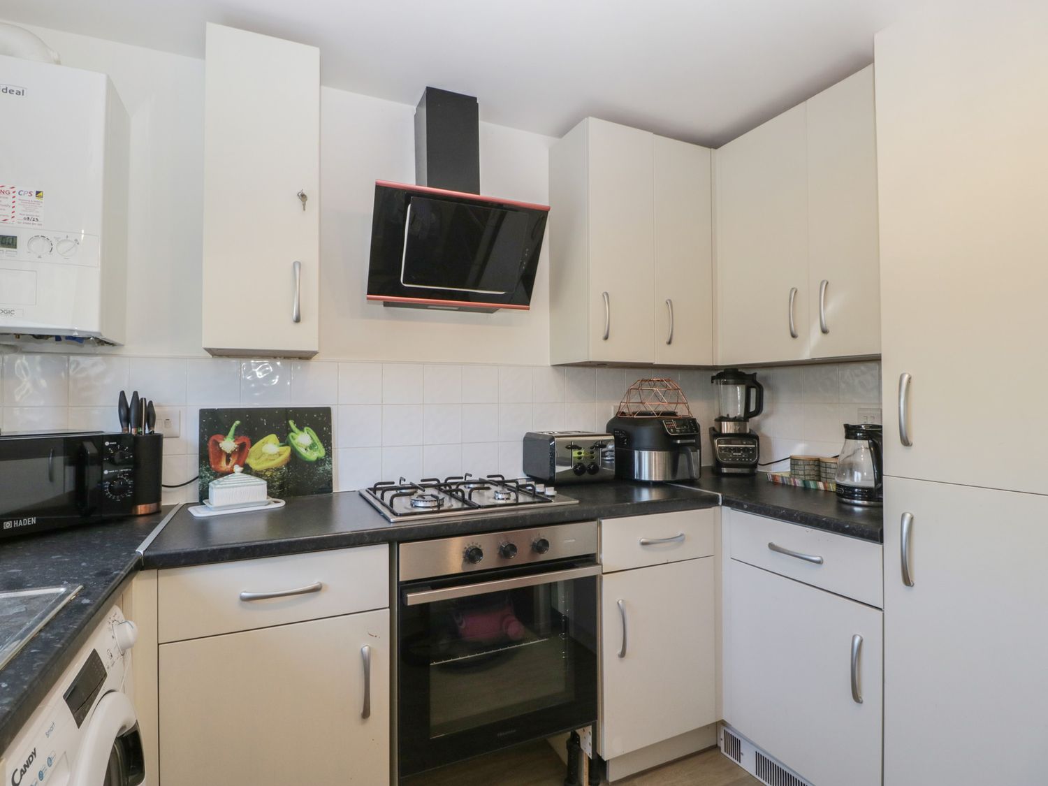 "15 Hey Close, a single-storey cottage, consists of a kitchen with electric oven, gas hob, microwave, fridge/freezer, coffee maker, kettle, and toaster, a living/dining room with corner sofa, dining table, and Smart TV, and a cloakroom. The bedrooms consist of a king-size and double. There is a bathroom with bath, shower over, and basin and WC. WiFi, fuel, power, bed linen, and towels are included in the rent. Outside, there is an enclosed rear patio, furniture, and lawn and off-road parking for two cars. Two well-behaved dogs are welcome. Sorry, no smoking. Enjoy a refreshing break with your loved ones at 15 Hey Close. Note: This property requires a Good Housekeeping Bond of 250 GBP"