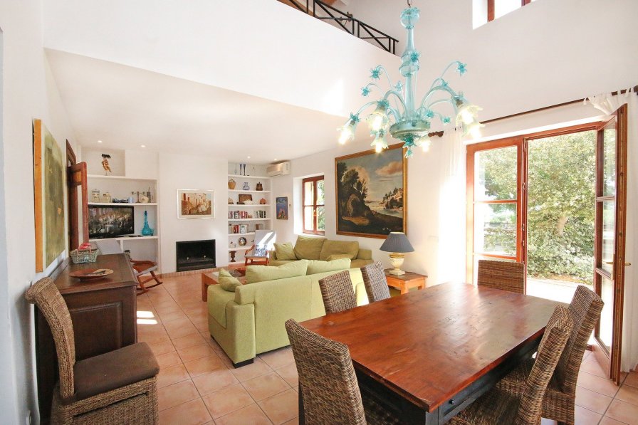 The **country house in Manacor** has 5 bedrooms and has capacity for 9 people. The country house is homely, is fully-equiped, and is 280 m². It has views of the sea. The house is situated in a family-friendly neighborhood next to the sea. The accommodation is equipped with the following items: garden, garden furniture, terrace, barbecue, fireplace, iron, safe, internet (Wi-Fi), hair dryer, air conditioning (hot/cold), air-conditioned, private swimming pool, 1 TV, satellite (Languages: German), stereo, DVD. In the gas open plan kitchen, refrigerator, microwave, oven, freezer, washing machine, dishwasher, dishes/cutlery, kitchen utensils, coffee machine, toaster and kettle are provided.