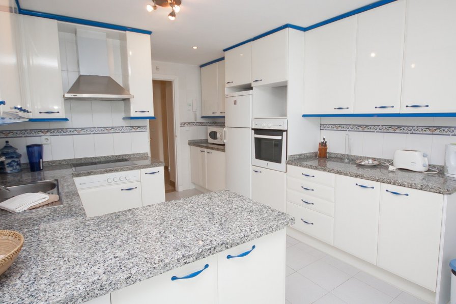 Large 3 bedroom, 2.5 bathroom south west facing apartment with air conditioning and pool and sea views. Situated in a complex located on the beachfront with 4 swimming pools, wifi, a small gym, padel tennis courts, underground parking and is a short stroll to the marina.