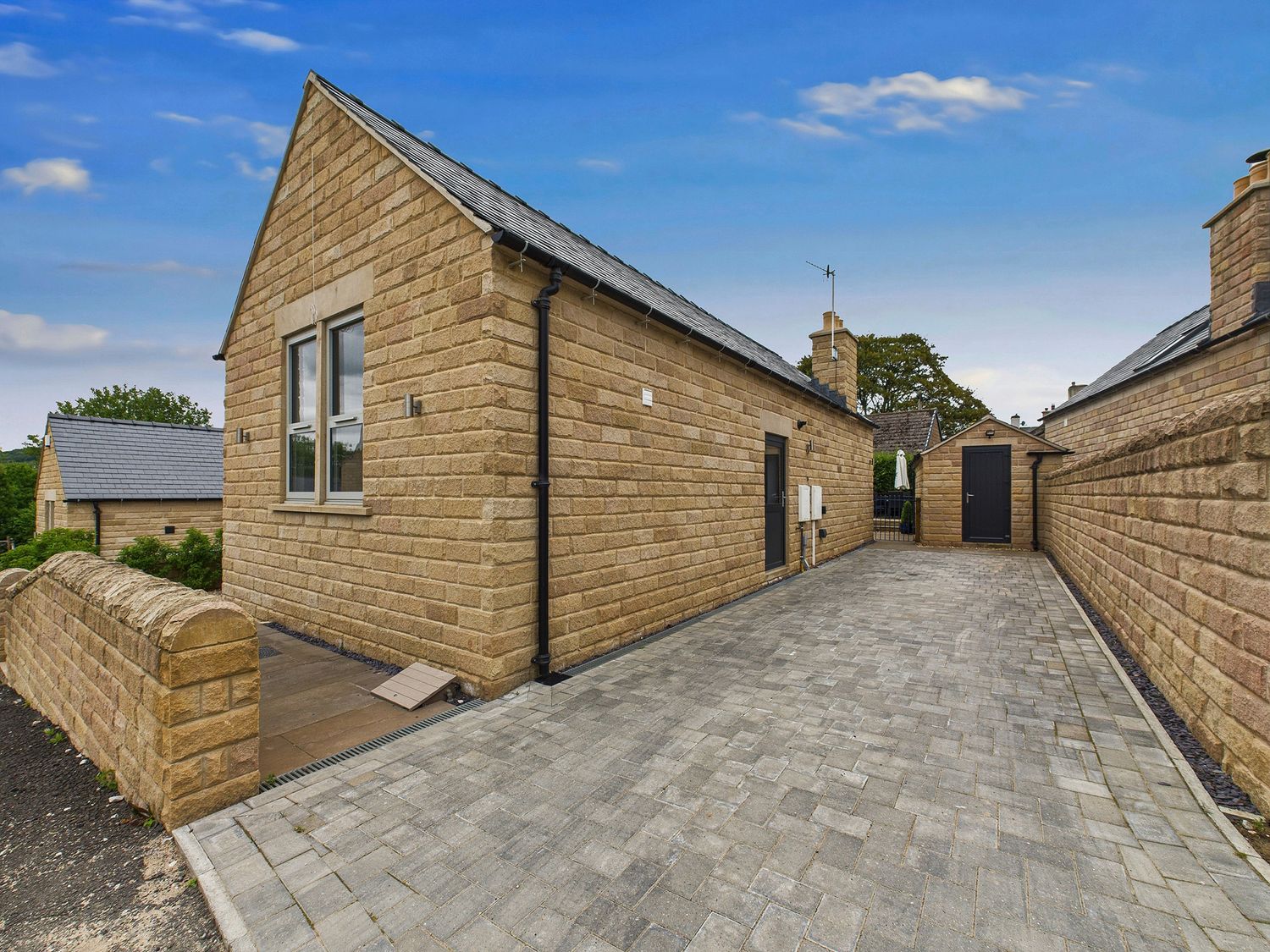 "Oakwood Lodge is split across three levels and consists of a kitchen/diner equipped with electric double oven, induction hob, microwave, fridge, freezer, dishwasher and dining seating for six guests, a utility with washing machine and tumble dryer, and a sitting room with Smart TV. The bedrooms consist of a ground-floor king-size, a king-size with TV and en-suite shower room a ground-floor twin, serviced by a ground-floor bathroom. Outside there is a private rear multi-level garden with patio, lawn and furniture, as well as off-road parking for three cars and bike storage in the shed. Within 1.1 miles, you will find a shop, within 0.1 miles, a pub and please note that two well-behaved dogs are welcome but sorry, no smoking. WiFi, fuel, power, bed linen and towels are all included in the price. A travel cot and highchair are also available on request. Oakwood Lodge is a wonderful getaway in Derbyshire. Note: There are four steps up to the kitchen and living spaces. Please note: this property can be booked alongside Oakwood House (1057697), sleeping a total of 18 guests when booked together. "