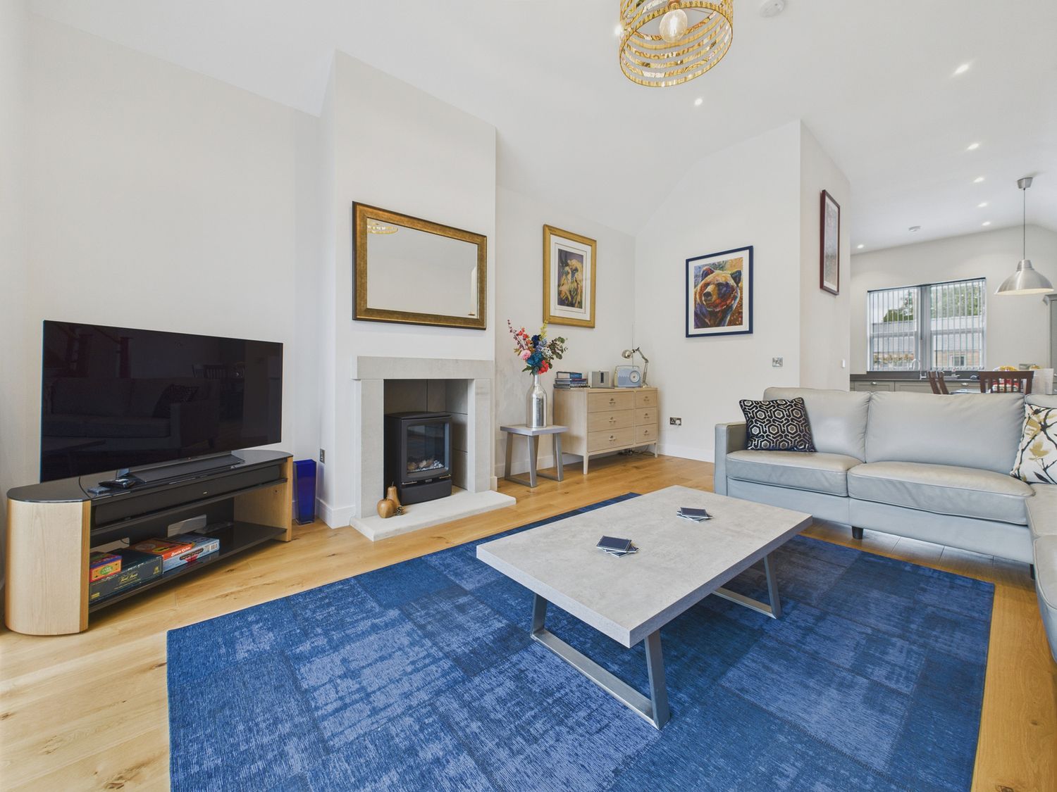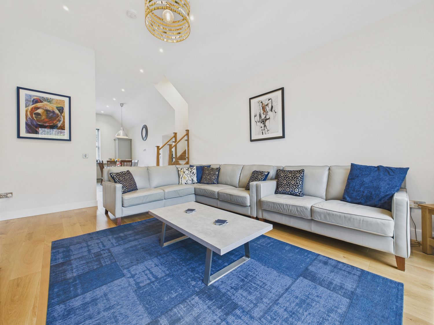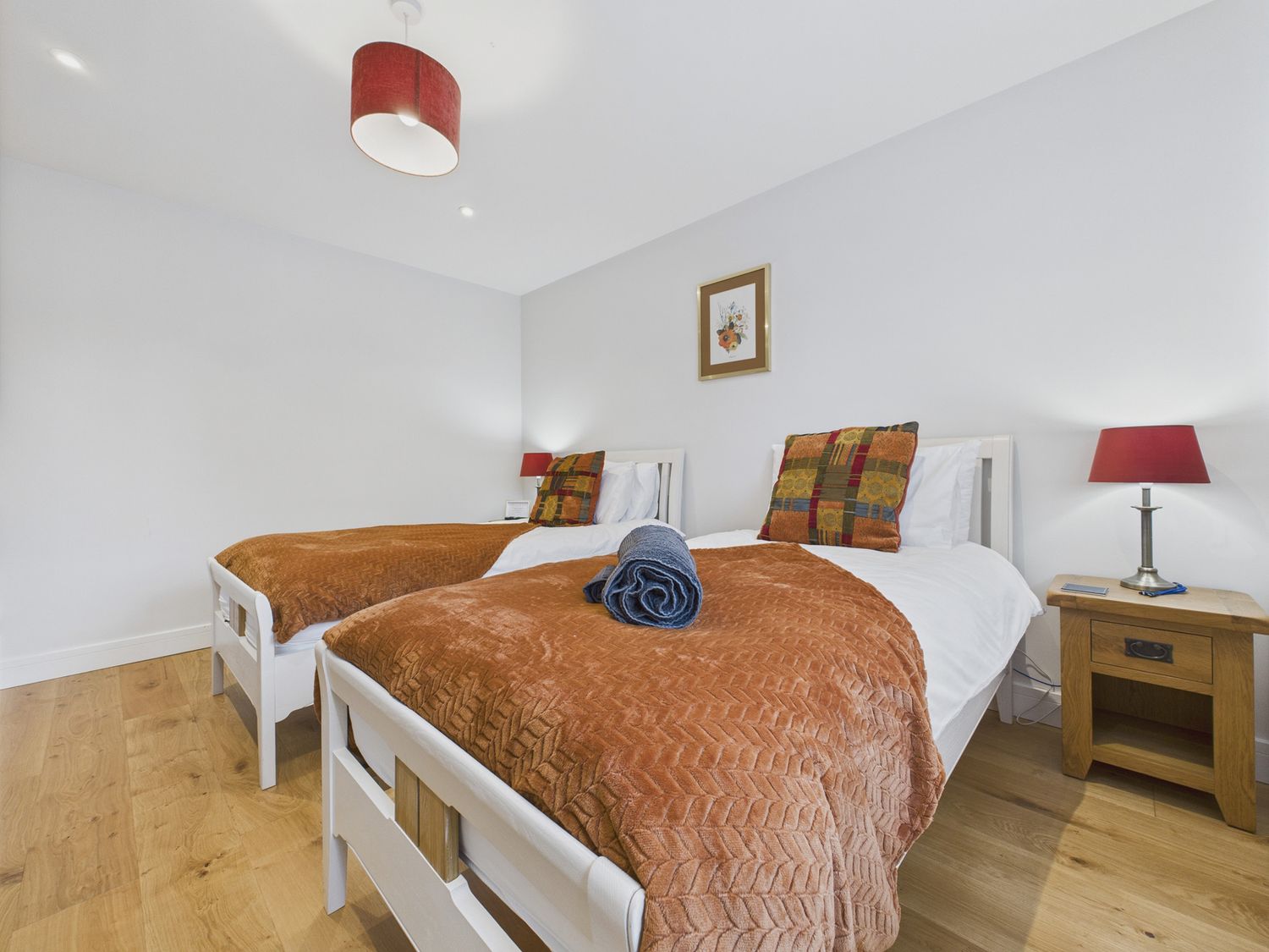 "Over three levels -. Three bedrooms: 1 x king-size with TV and en-suite walk-in shower, basin and WC, 1 x ground-floor king-size, 1 x ground-floor twin. Ground-floor bathroom with bath, walk-in shower, basin and WC. Kitchen/diner. Utility. Sitting room "
