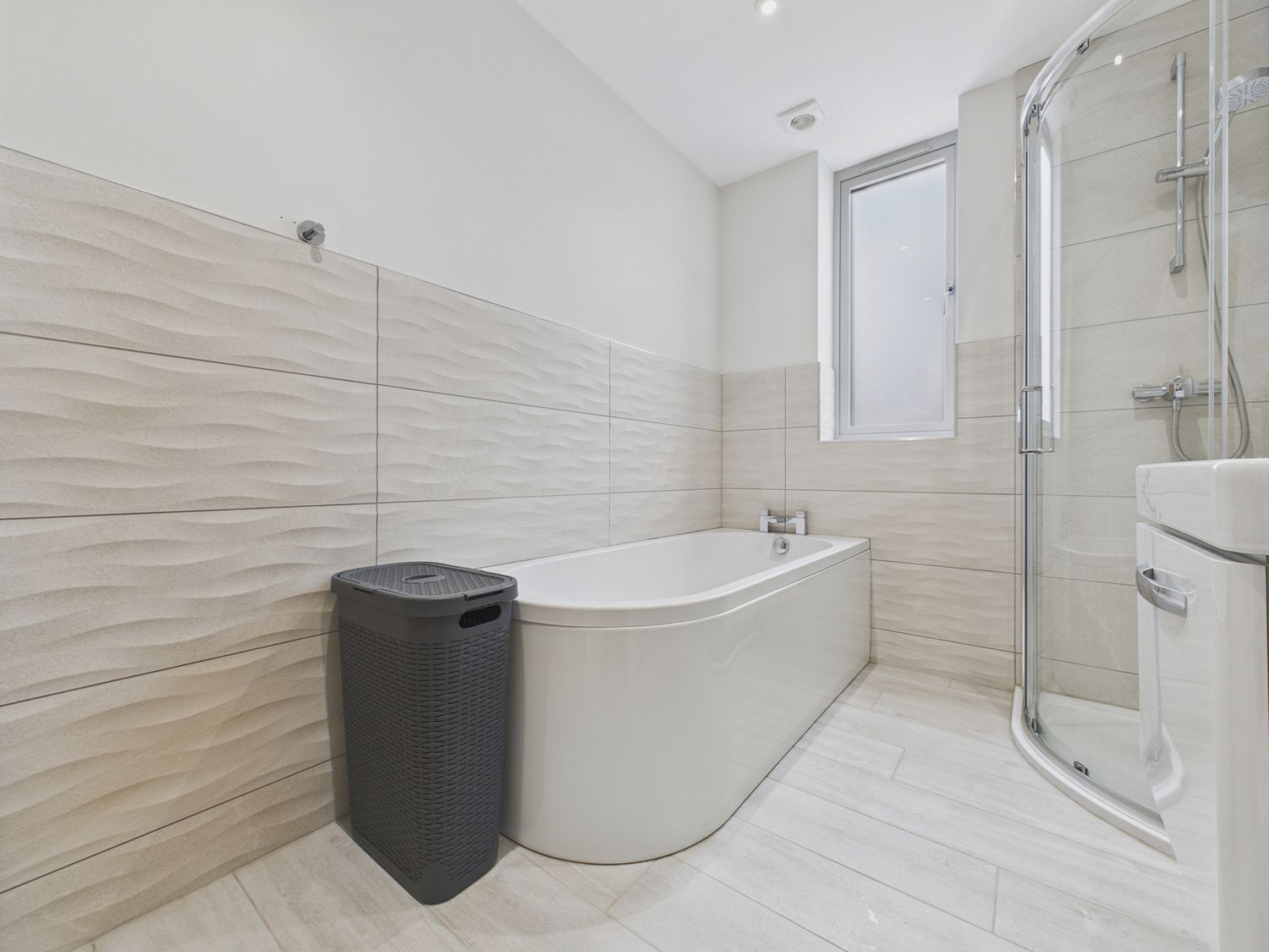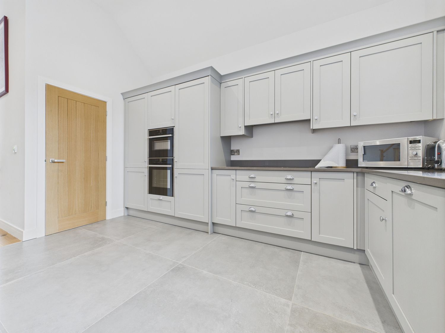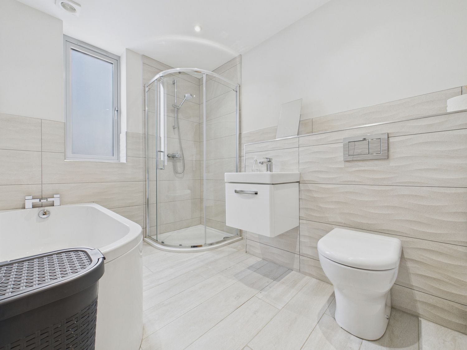 "Over three levels -. Three bedrooms: 1 x king-size with TV and en-suite walk-in shower, basin and WC, 1 x ground-floor king-size, 1 x ground-floor twin. Ground-floor bathroom with bath, walk-in shower, basin and WC. Kitchen/diner. Utility. Sitting room "