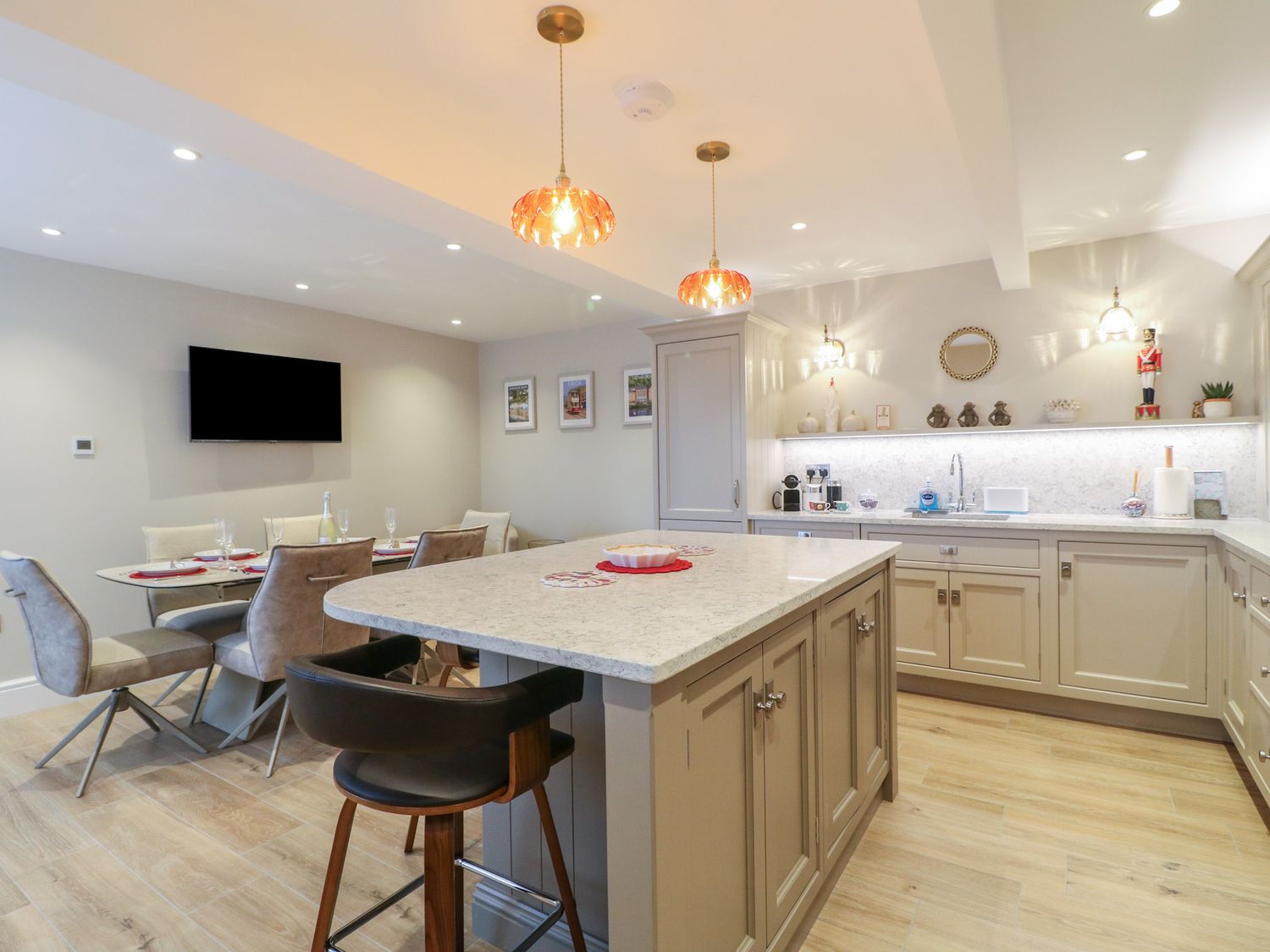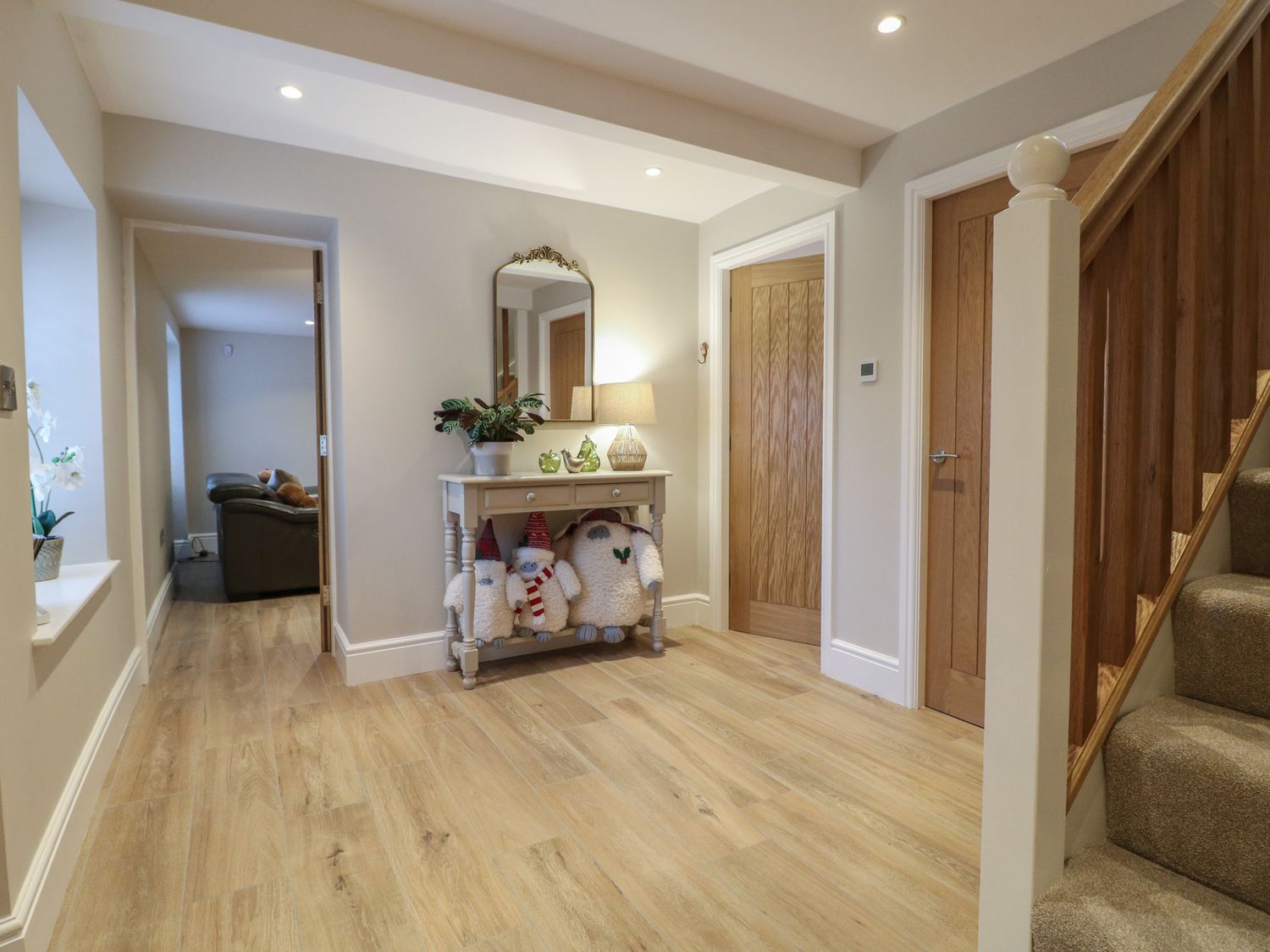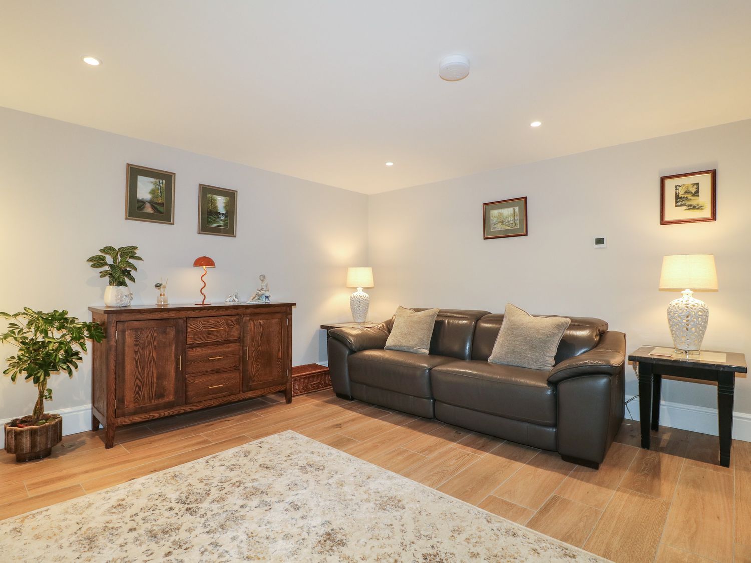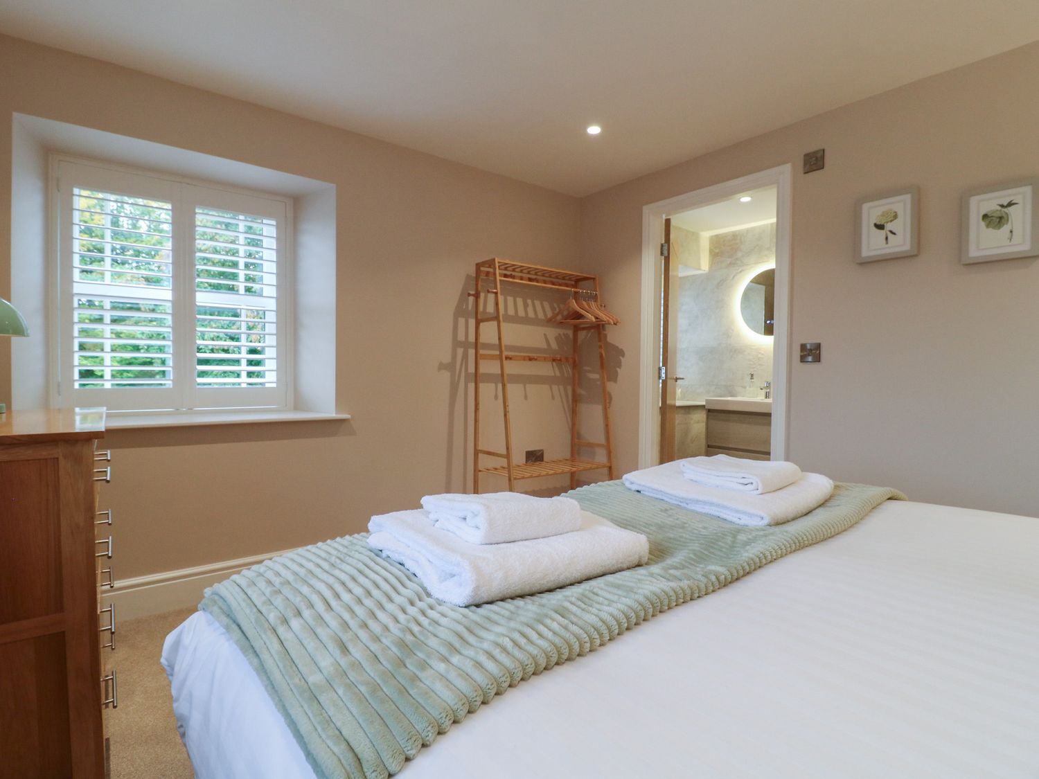 "Three bedrooms. Two bedrooms with king-size bed and en-suite with walk-in shower, basin, and WC. One family room with 1 single bed and 1 super-king bed (this is a zip/link which can be twin on request). En-suite bathroom with walk-in shower, bath with a handheld shower attachment, basin, and WC. Cloakroom with basin and WC. Kitchen/diner with TV. Utility. Sitting room with woodburning stove"