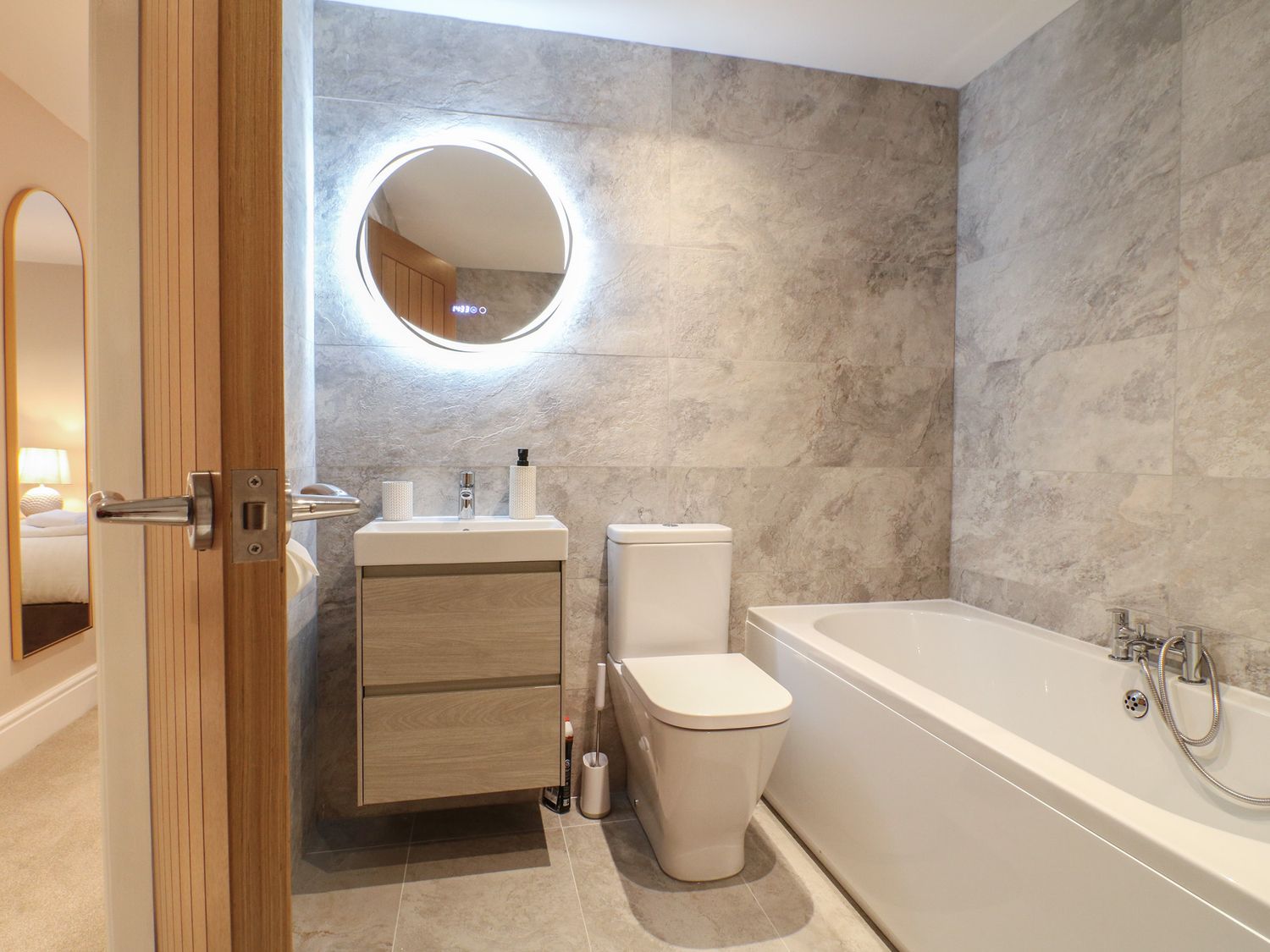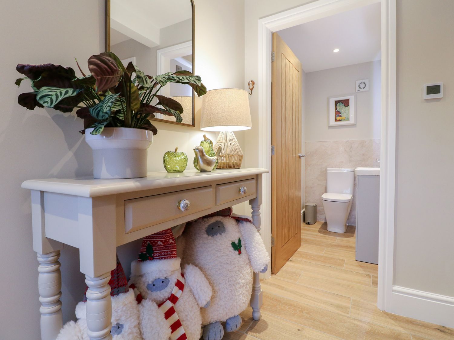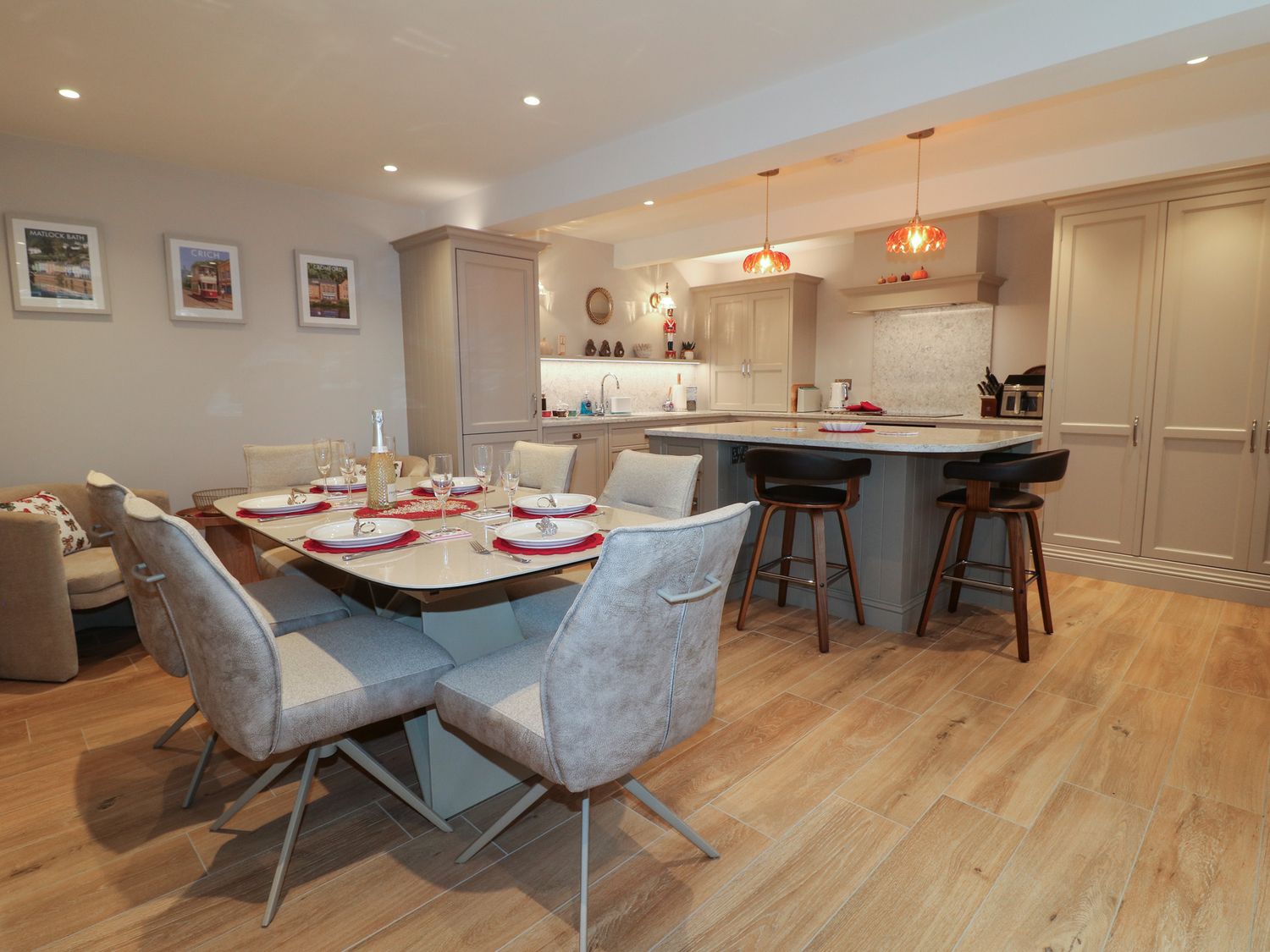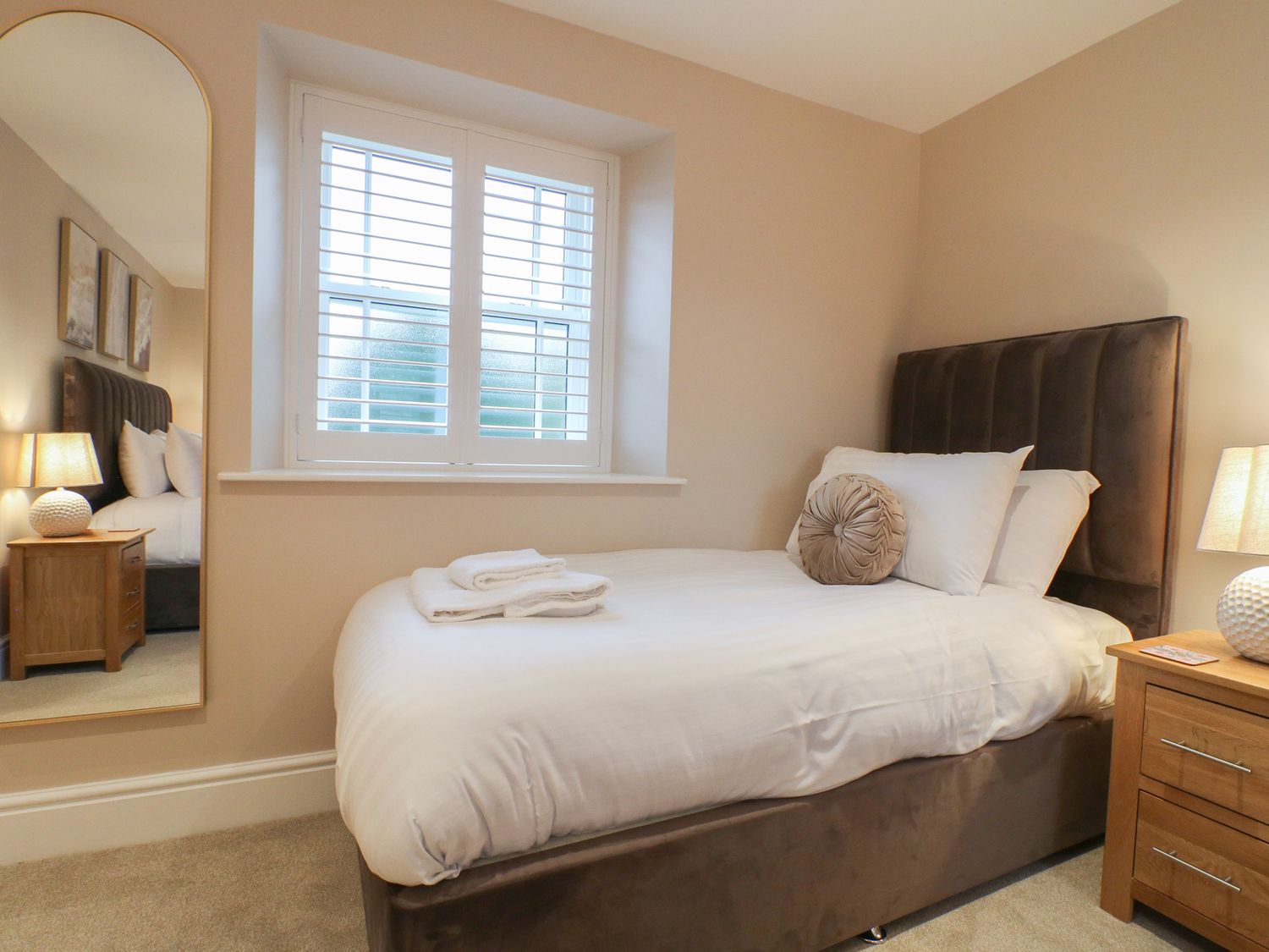 "Three bedrooms. Two bedrooms with king-size bed and en-suite with walk-in shower, basin, and WC. One family room with 1 single bed and 1 super-king bed (this is a zip/link which can be twin on request). En-suite bathroom with walk-in shower, bath with a handheld shower attachment, basin, and WC. Cloakroom with basin and WC. Kitchen/diner with TV. Utility. Sitting room with woodburning stove"